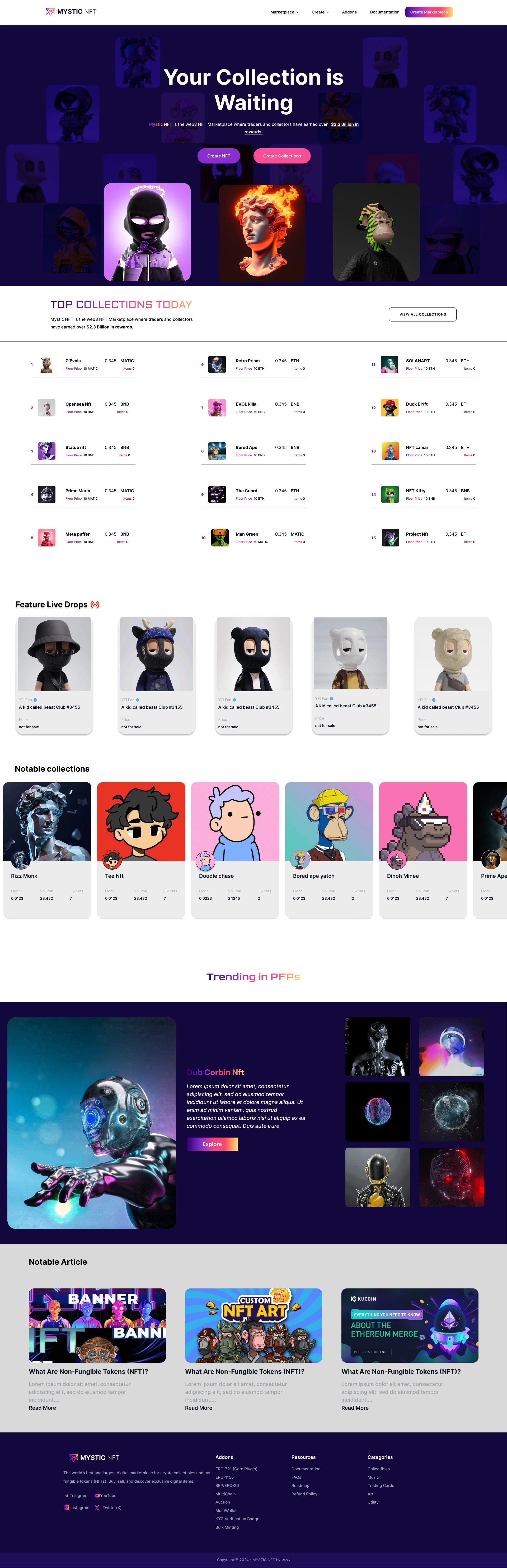 Mystic NFT is a next-generation Web3 platform that empowers creators, collectors, and investors to explore the world of digital art and blockchain assets.