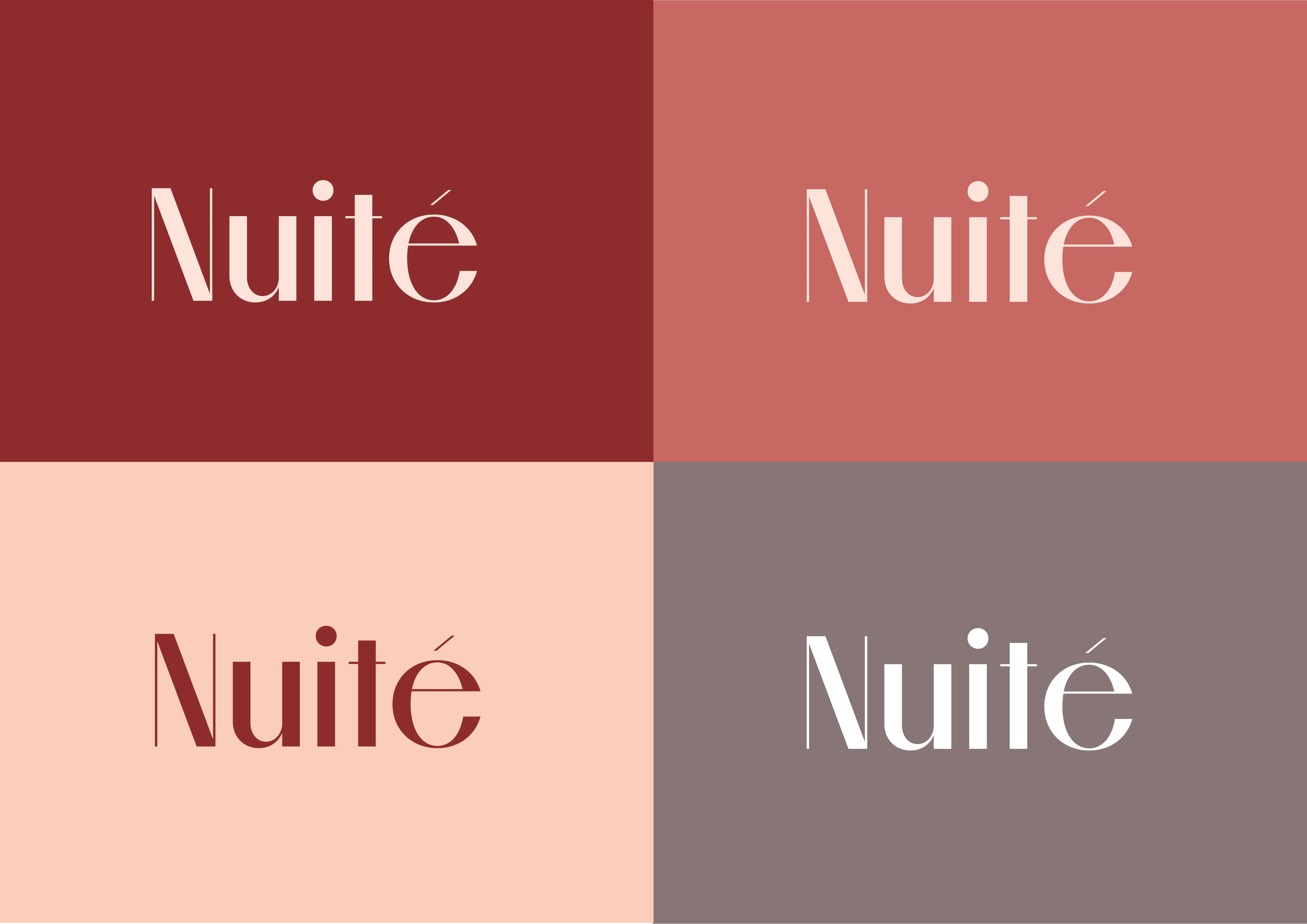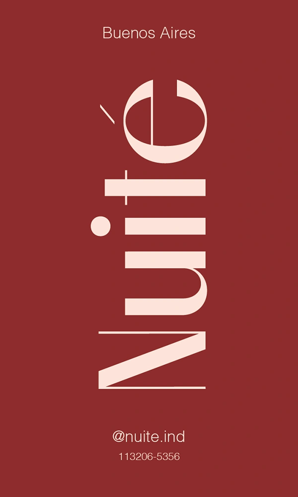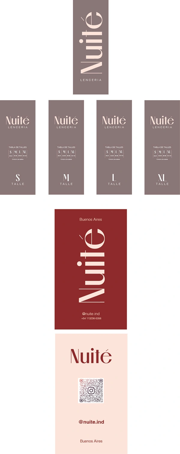 Trabajo realizado a partir de reuniones con el cliente, llegando a este resultado luego de entender qué es lo que quería trasmitir con su propia marca de lencería y piyamas. Luego de tener los conceptos claros a trasmitir creé así el nombre "Nuité", que significa noche en francés, y entendiendo que Nuité apuntaba a un estilo mas chic, delicado, pero al mismo tiempo con mucha pasión y feminidad, elegí así este estilo visual, el cual gustó mucho al cliente.