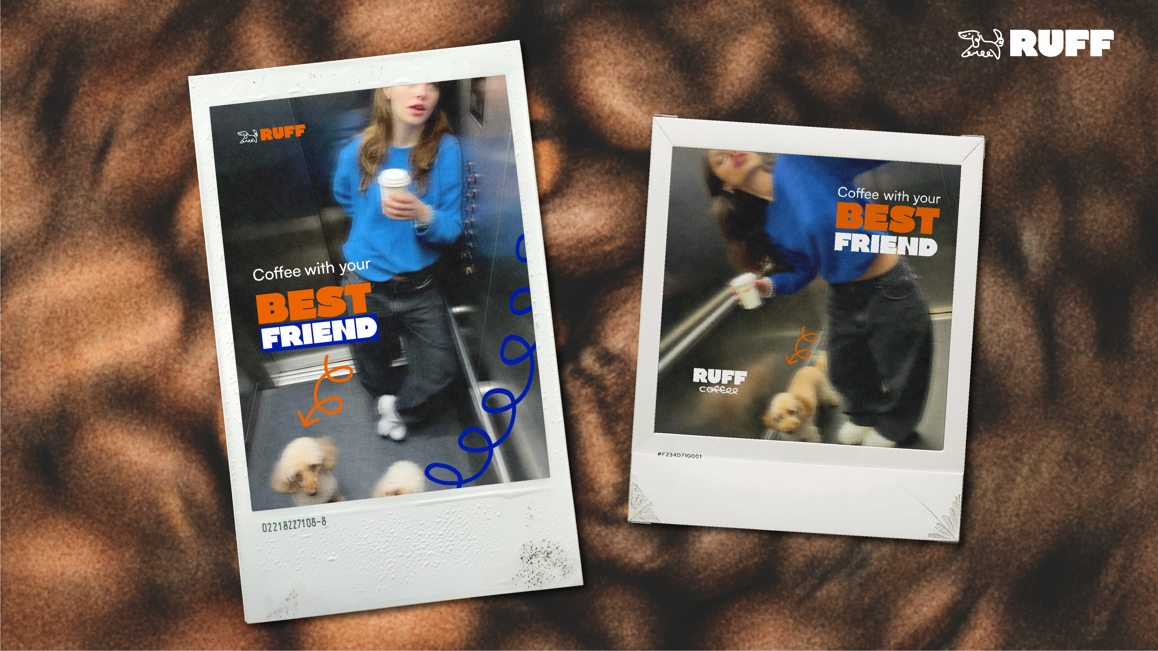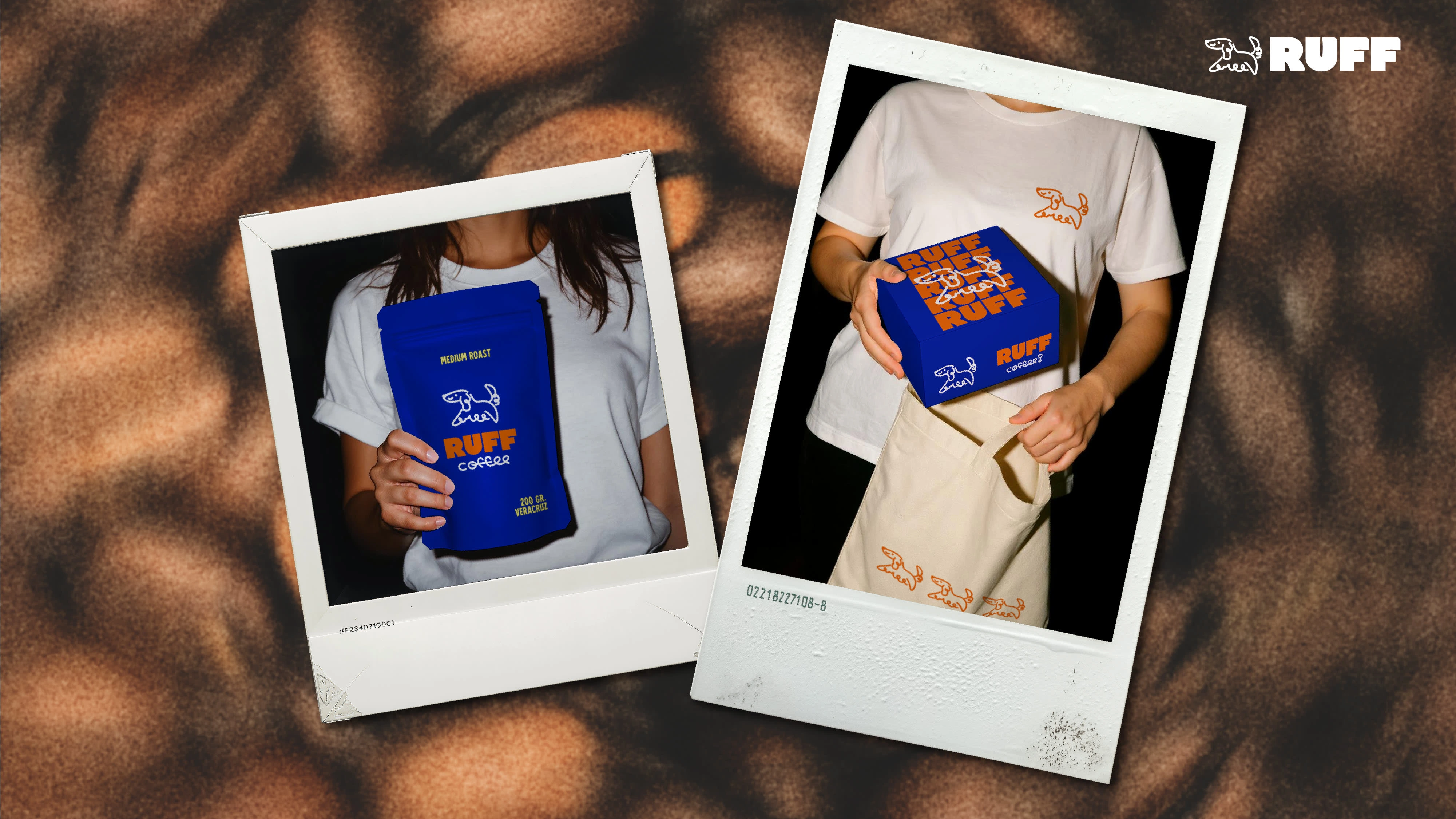 Visual identity for a pet-friendly cafe and roastery. The colors are those, because dogs can only see in blue, yellow, and shades of grey.