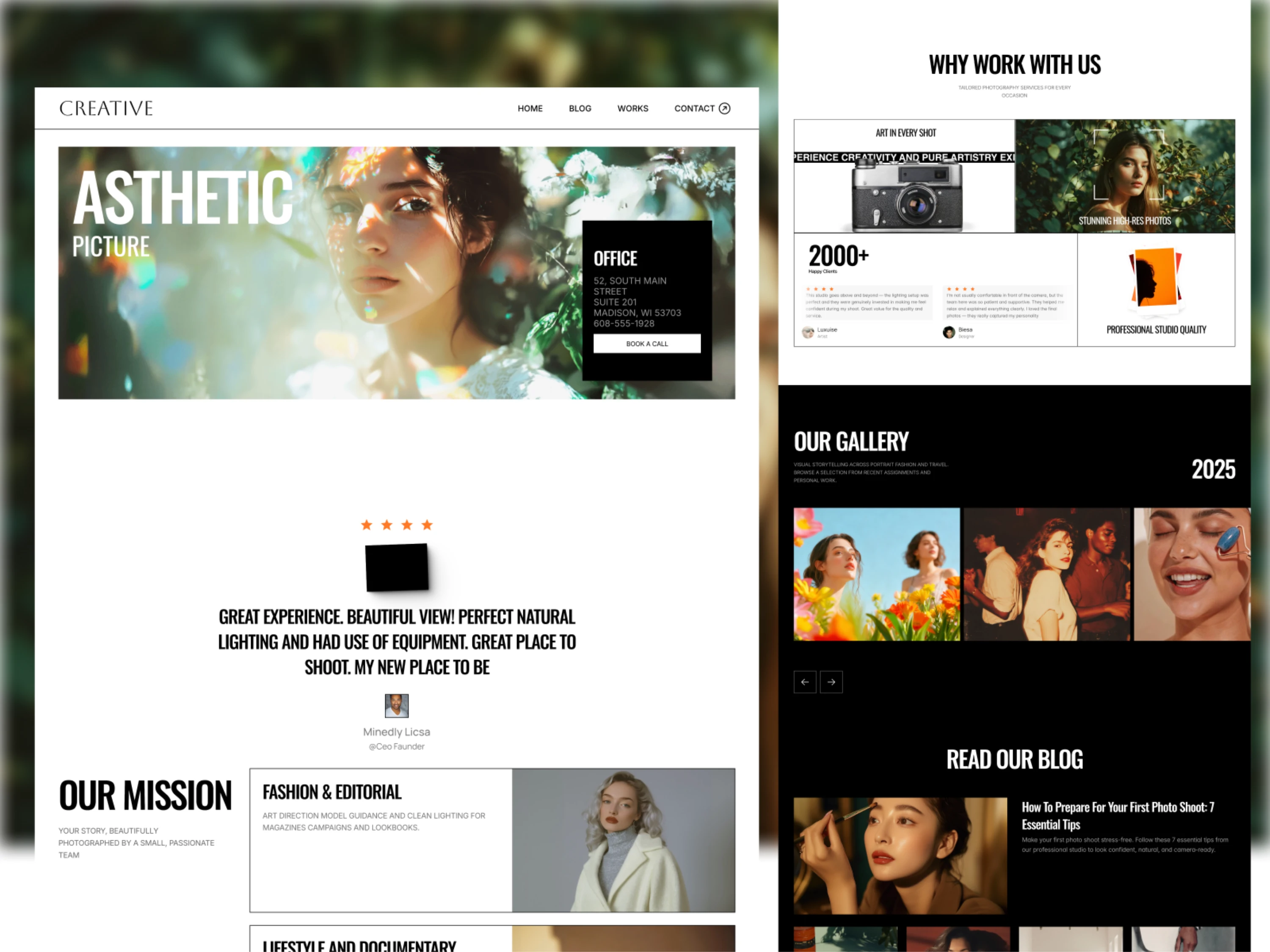 Designed and developed a modern, visually compelling website for Creative Picture Studio—a boutique photography agency in Madison, Wisconsin. The main goal was to elevate their digital presence, showcase their portfolio, and streamline client inquiries.