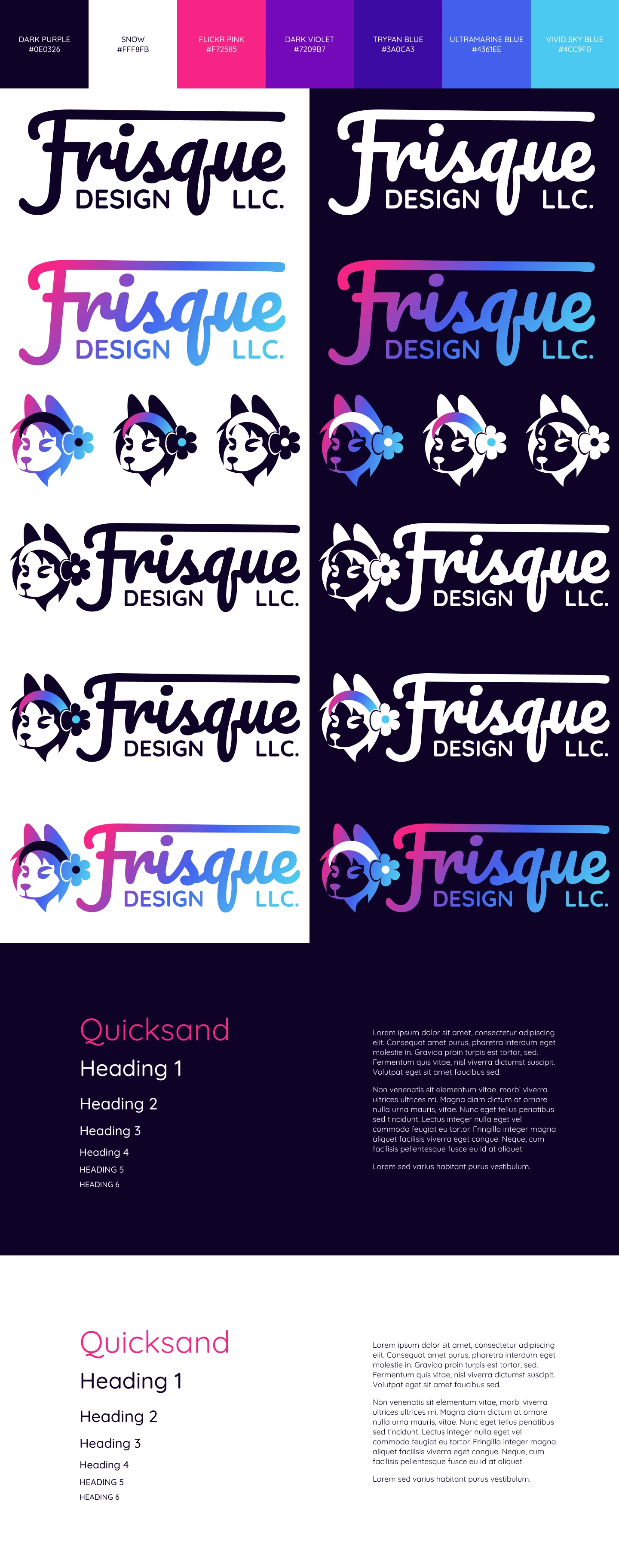 A midnight pastel cyberpunk-esque brand sheet designed for Frisque Design LLC to use for their new website.