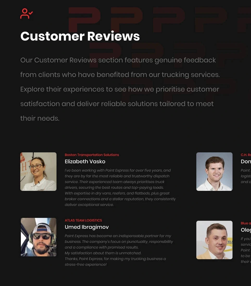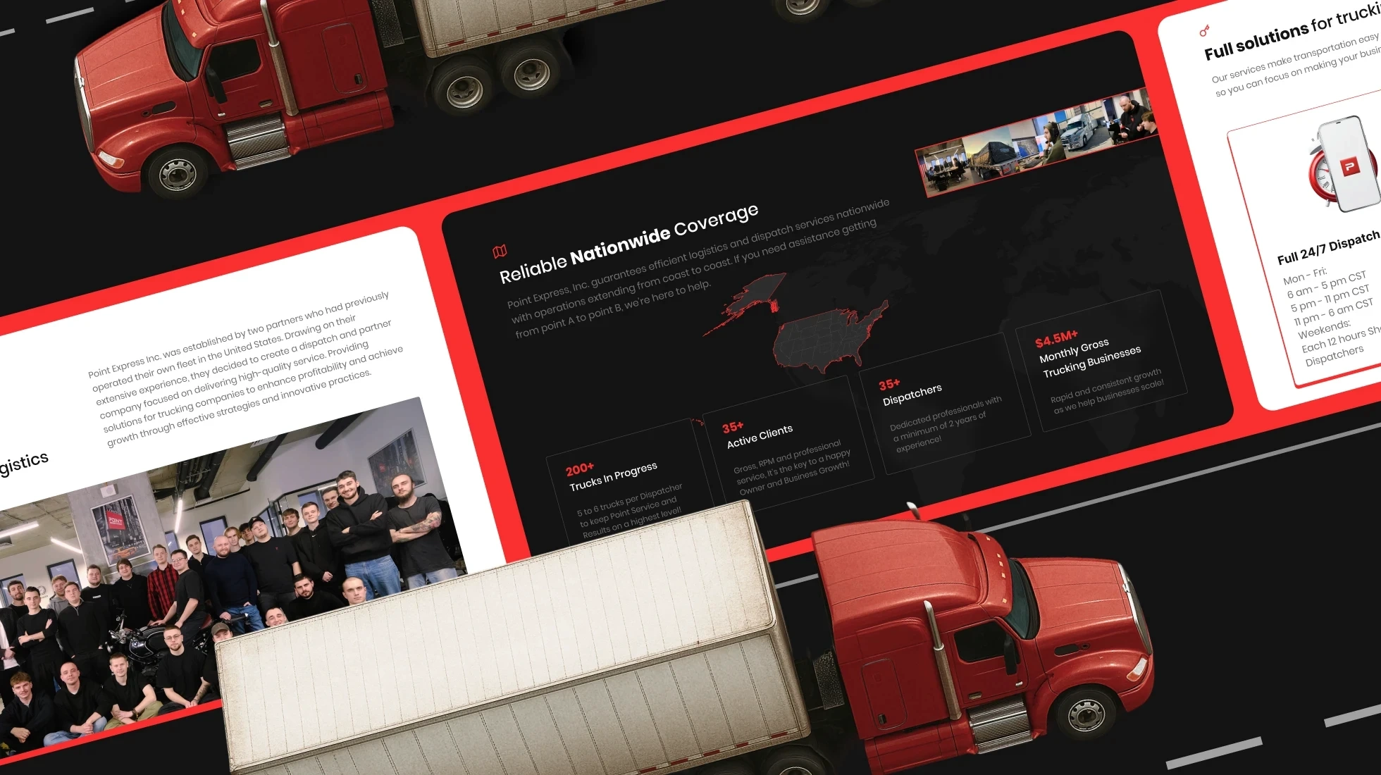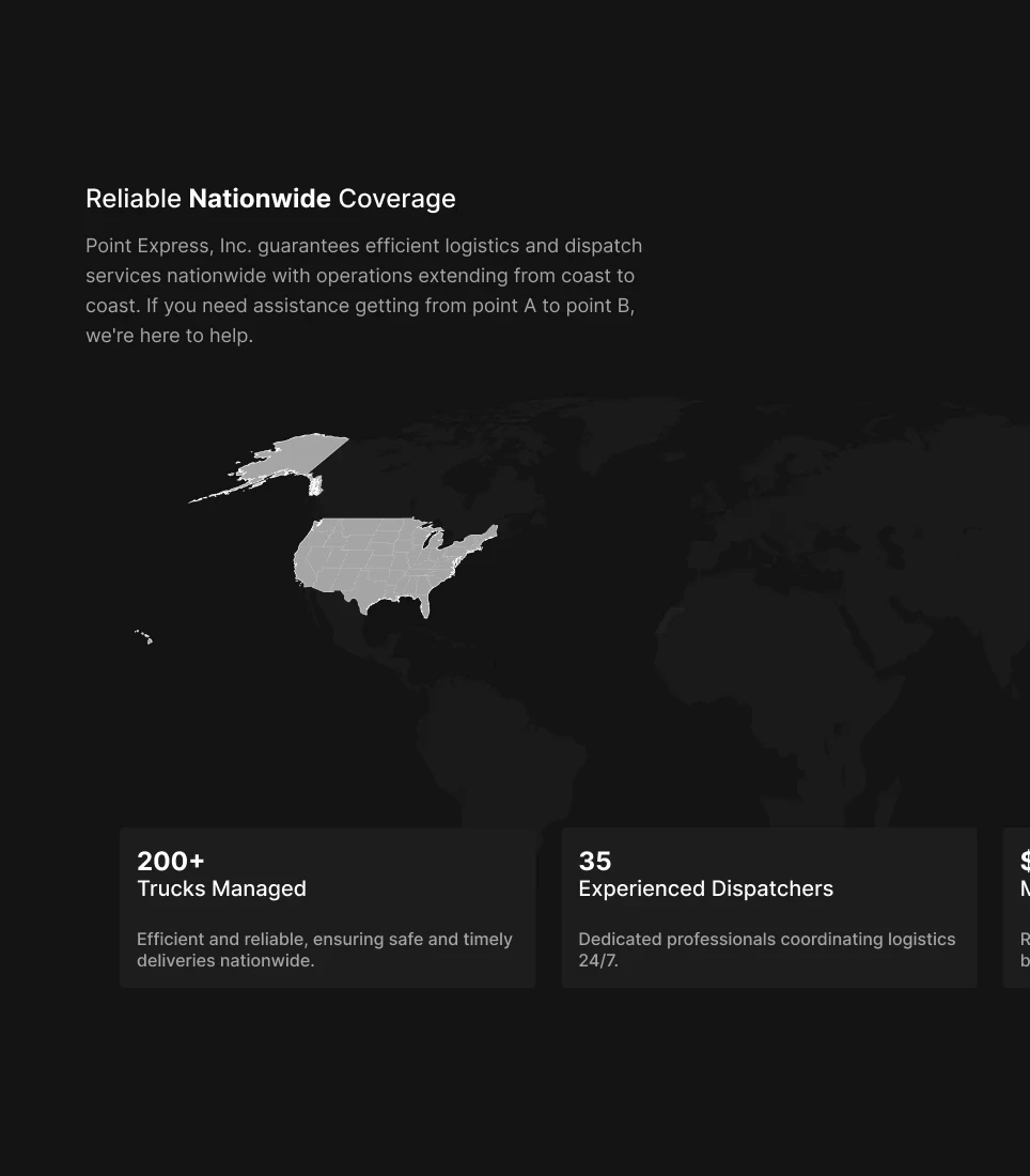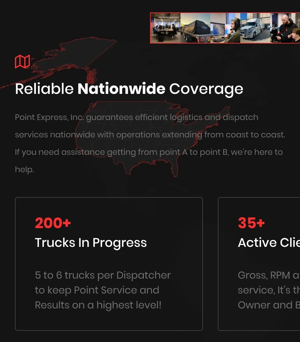 Point Express asked us to create a website that clearly presents their dispatch and logistics services, boosts customer engagement, and helps bring new dispatchers into the company.