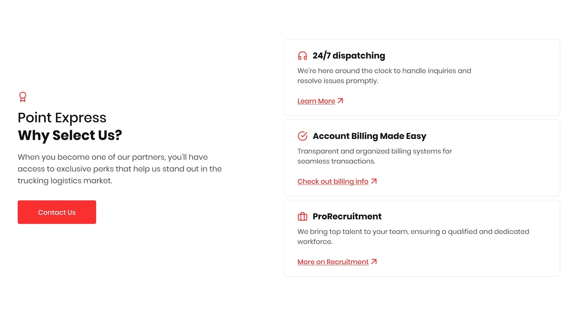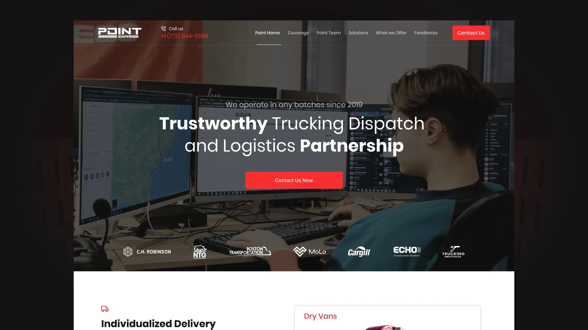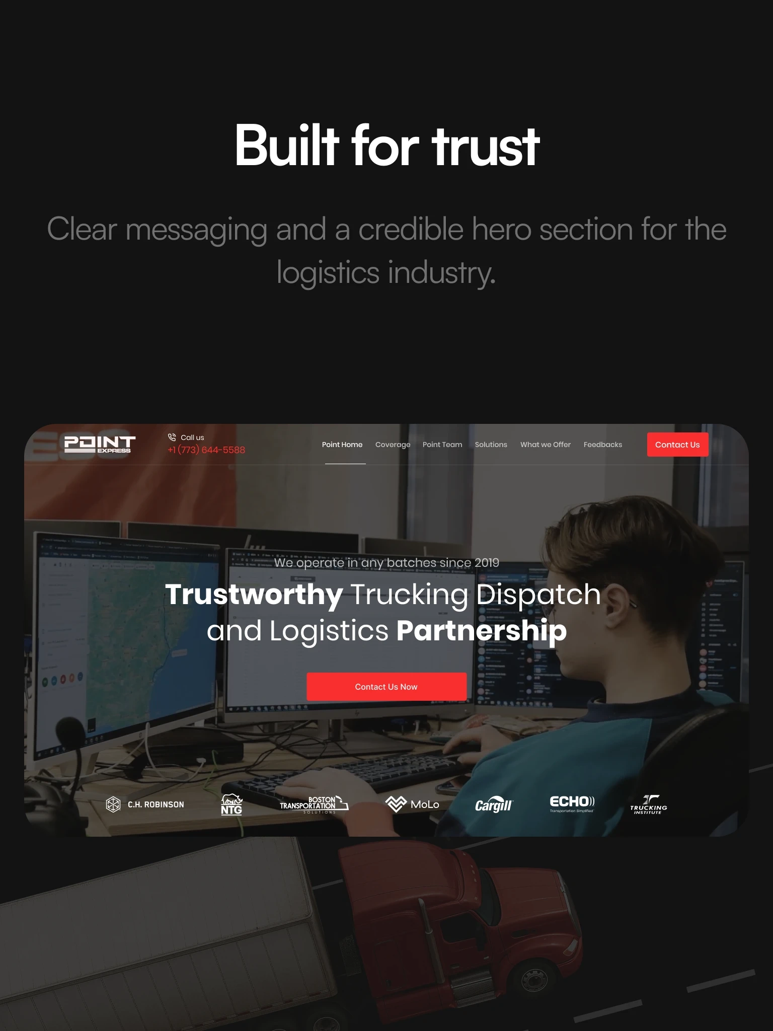 Point Express asked us to create a website that clearly presents their dispatch and logistics services, boosts customer engagement, and helps bring new dispatchers into the company.