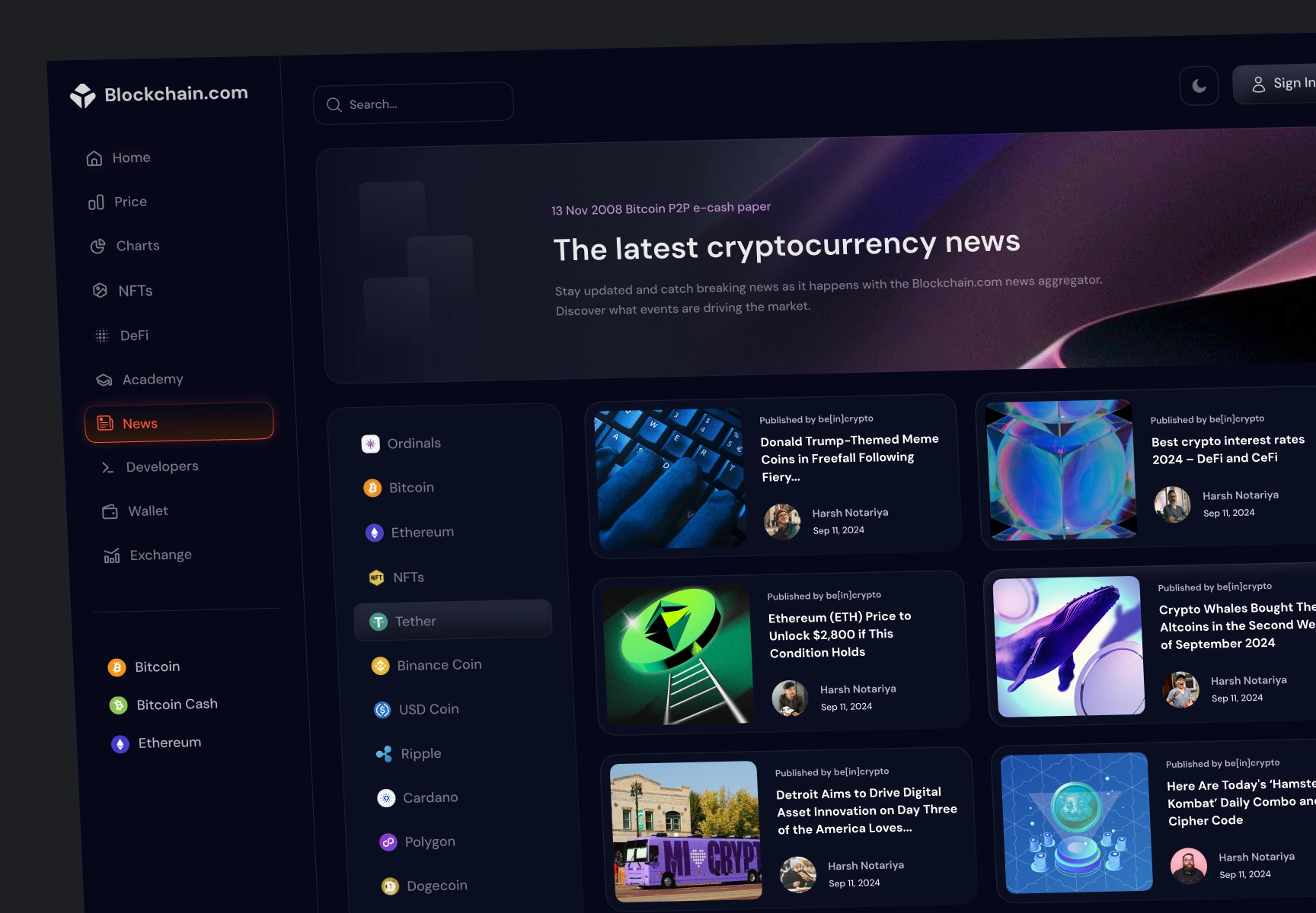 Track breaking headlines across Bitcoin, Ethereum, DeFi, and NFTs.