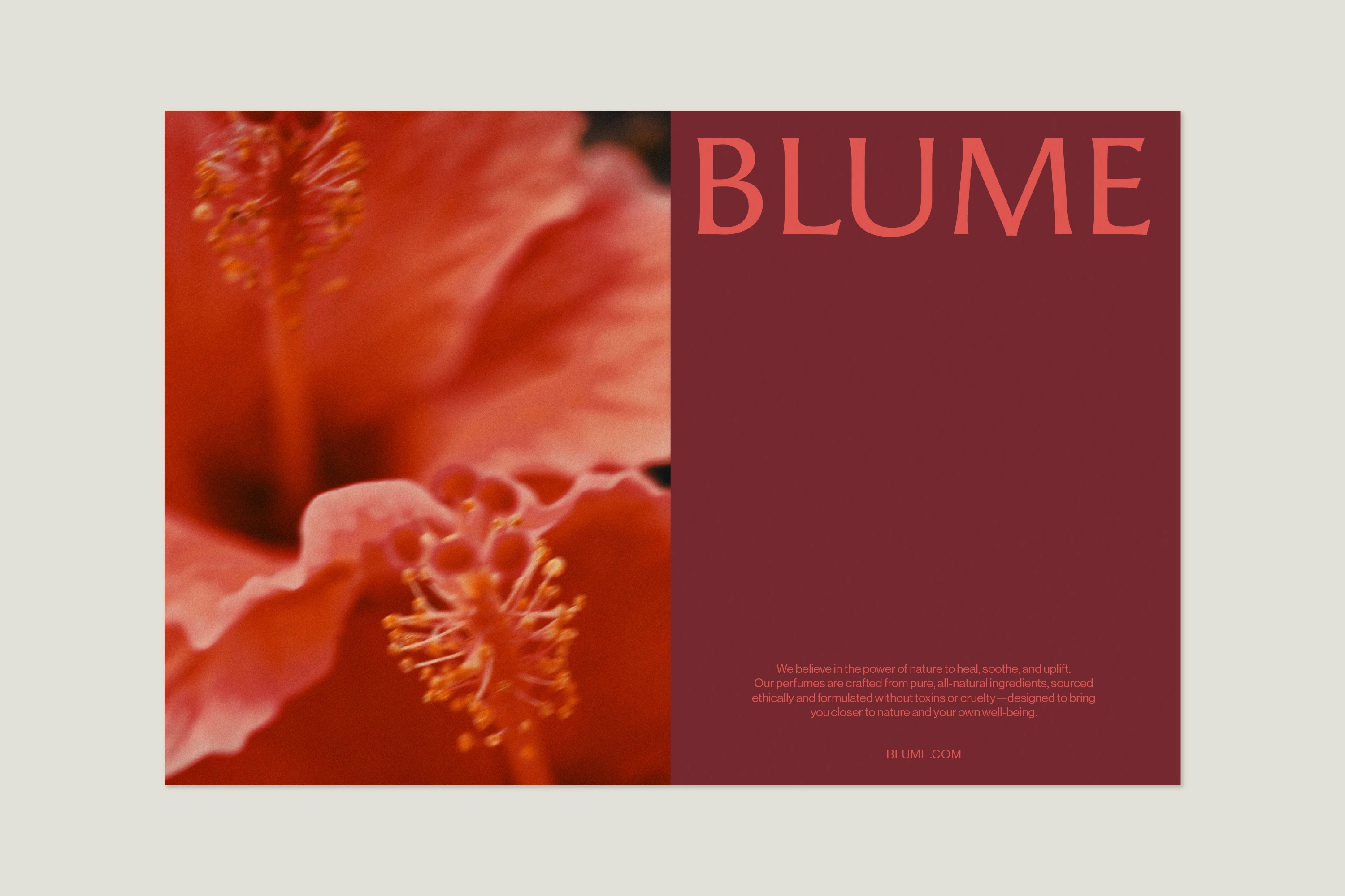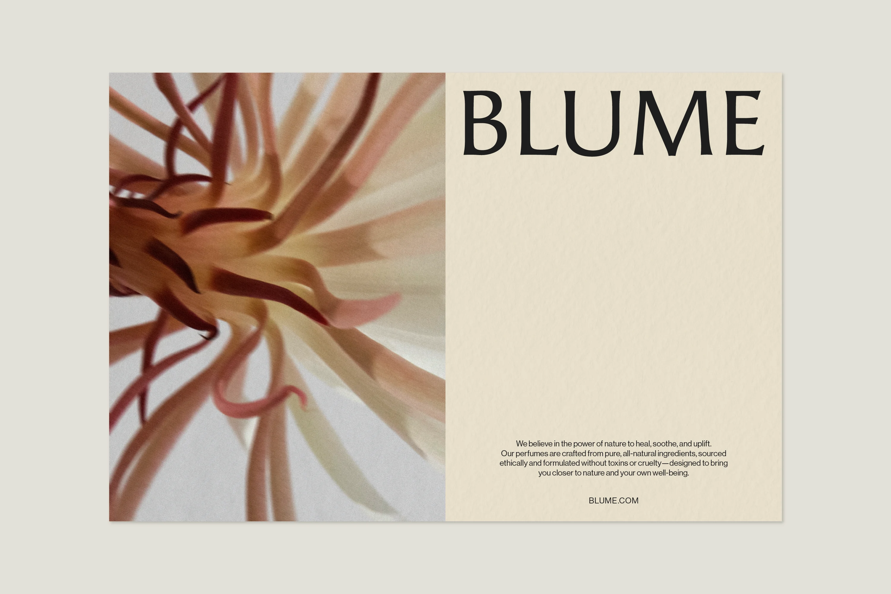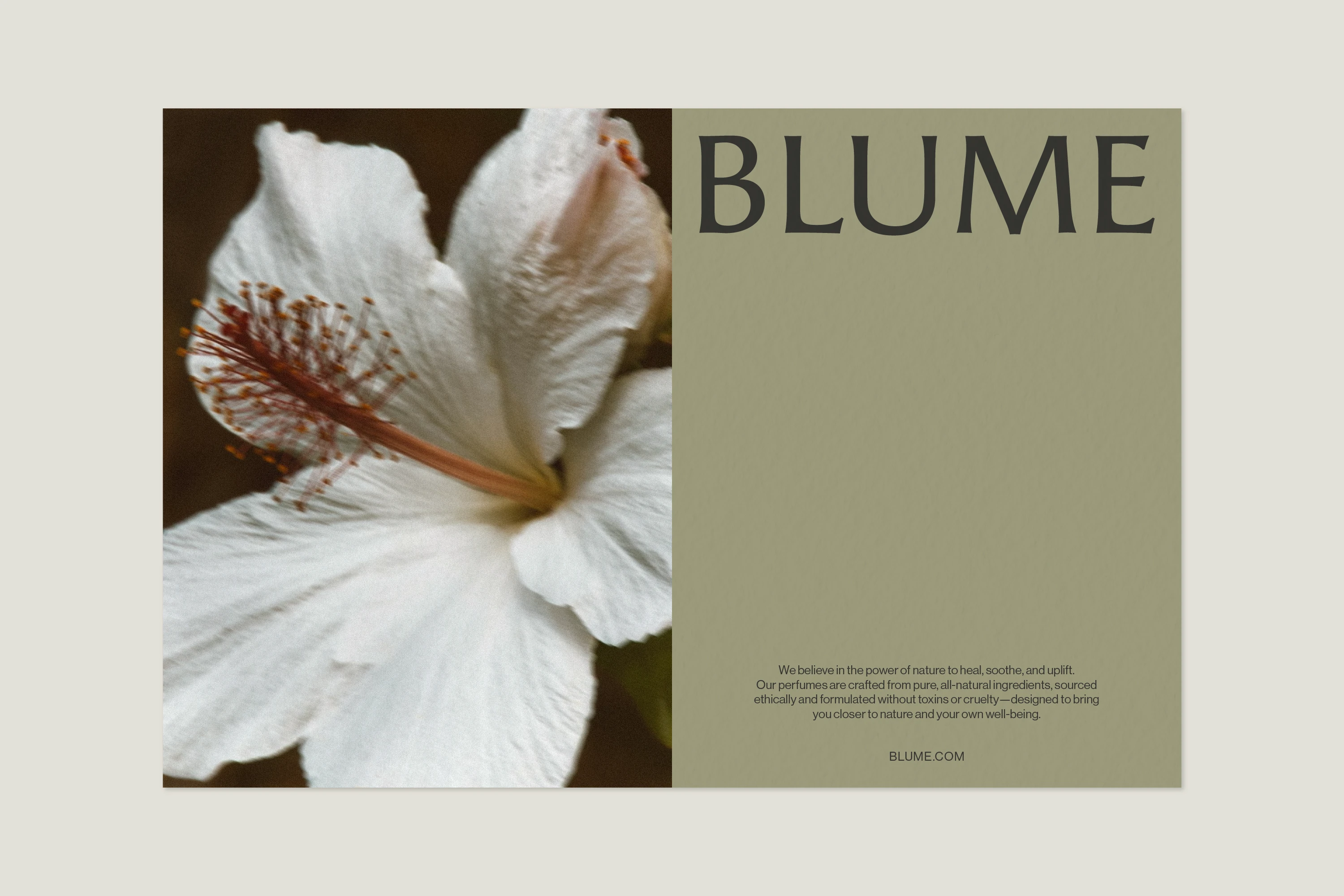 Blume Botanicals is a natural perfume and body care brand that captures the essence of tropical plants and flowers. It celebrates the raw, unfiltered beauty of nature. Blume Botanicals embodies holistic wellness through all-natural, cruelty-free fragrances crafted to evoke the magic of the tropics and the connection between scent and self-care. This concept idea came from my interest in wellness and natural self-care, as well as living among lush plants and vibrant flowers in the tropics for the past few years. I wanted to create a brand that offers scents and products that not only make you feel beautiful but are also good for your mind, body, and spirit. For this project, I created a brand identity, advertising posters, business cards, and website design. My goal was to create a brand that feels very grounding, natural, and elegant and to capture the essence of tropical plants that make the base of each product.
