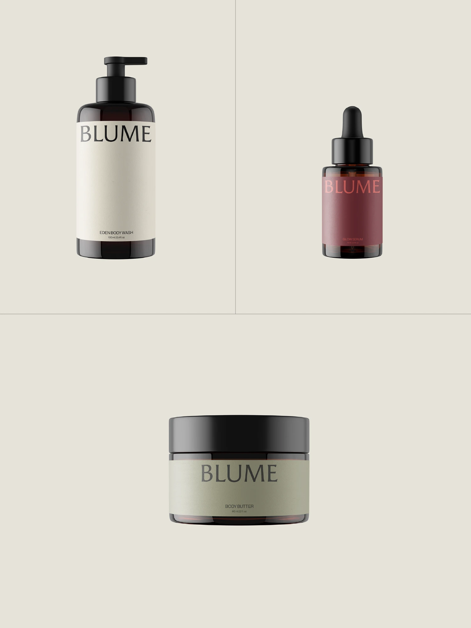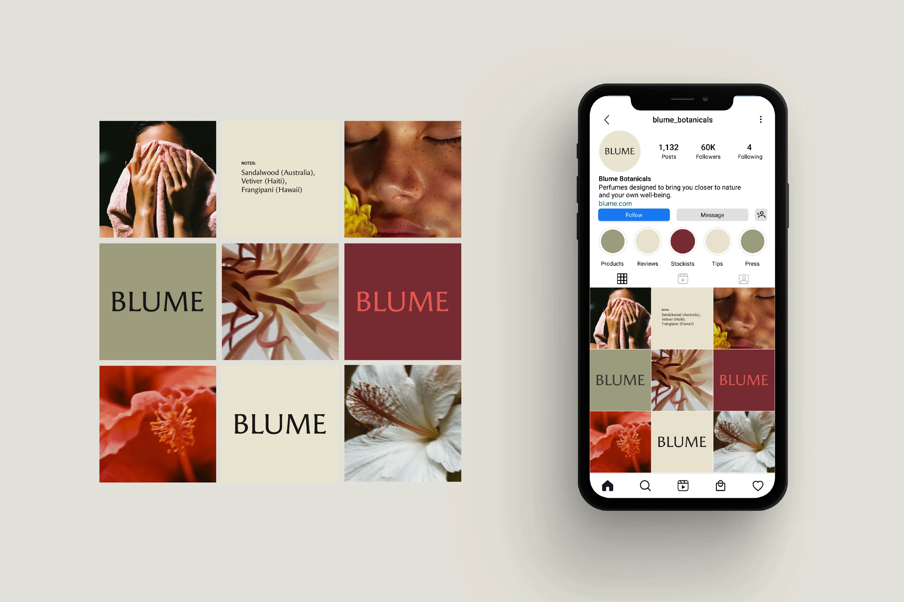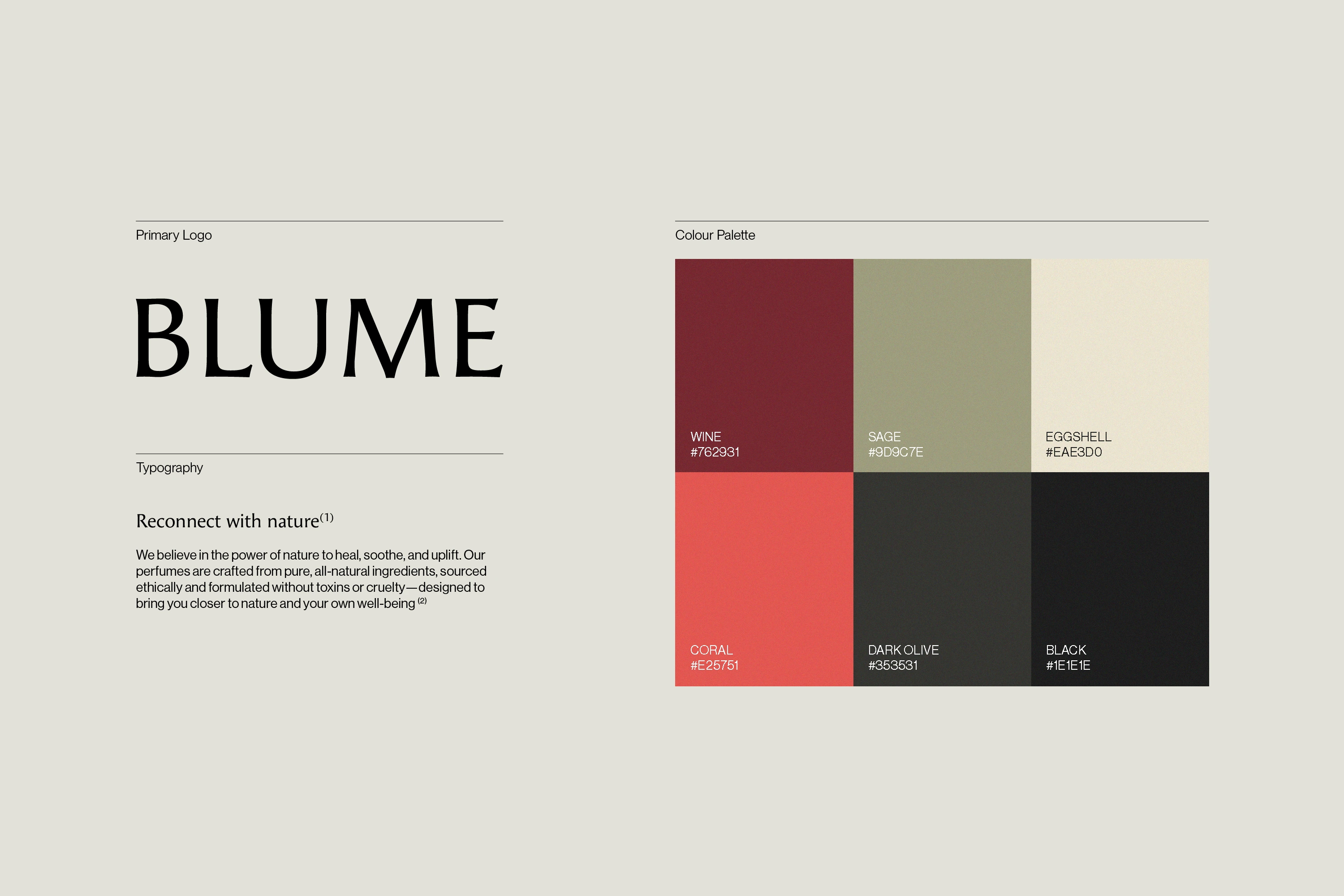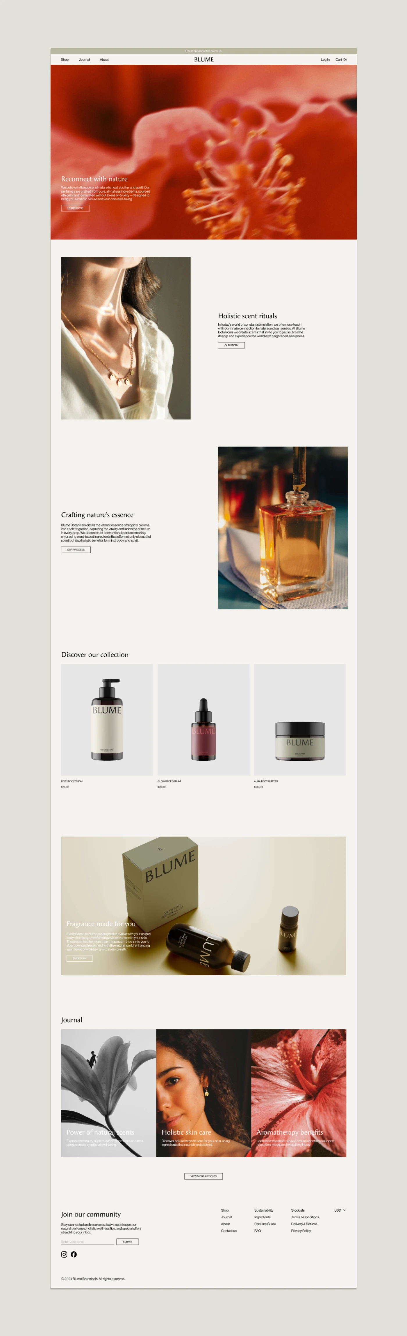 Blume Botanicals is a natural perfume and body care brand that captures the essence of tropical plants and flowers. It celebrates the raw, unfiltered beauty of nature. Blume Botanicals embodies holistic wellness through all-natural, cruelty-free fragrances crafted to evoke the magic of the tropics and the connection between scent and self-care. This concept idea came from my interest in wellness and natural self-care, as well as living among lush plants and vibrant flowers in the tropics for the past few years. I wanted to create a brand that offers scents and products that not only make you feel beautiful but are also good for your mind, body, and spirit. For this project, I created a brand identity, advertising posters, business cards, and website design. My goal was to create a brand that feels very grounding, natural, and elegant and to capture the essence of tropical plants that make the base of each product.