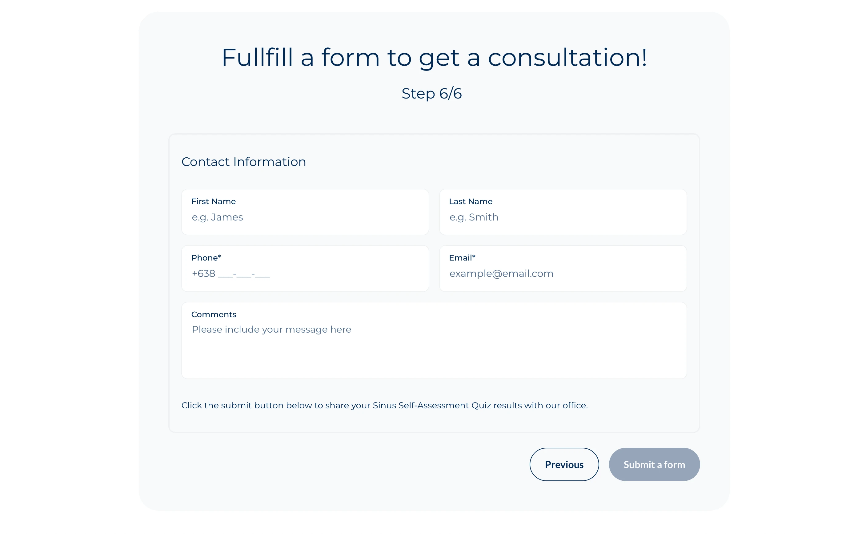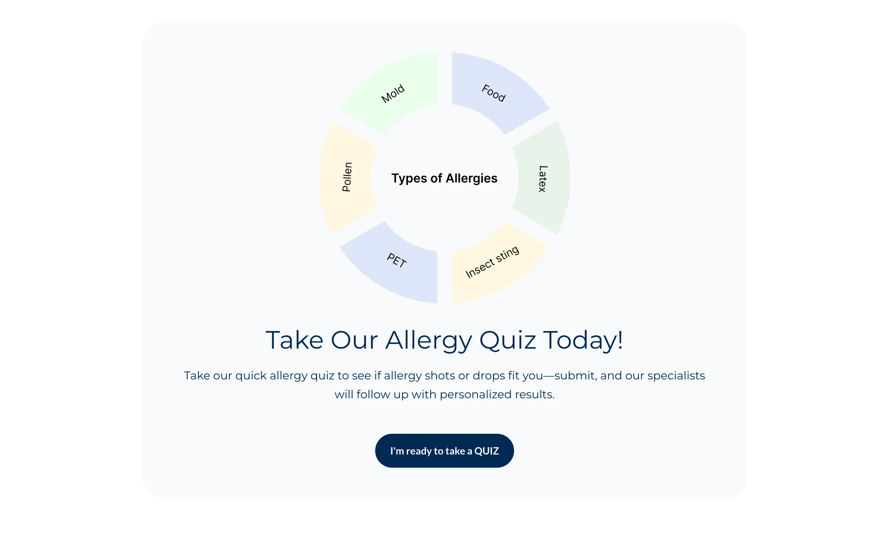 Developed an interactive allergy quiz page to help website visitors identify a likely allergy profile based on symptoms and leads them to a consultation request