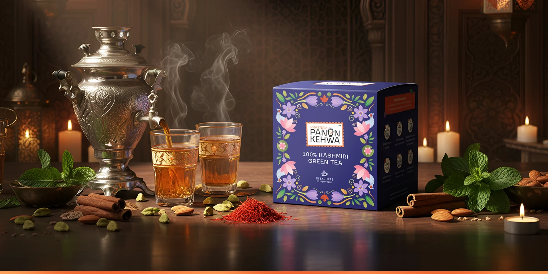 Panun Kehwa is a premium Kashmiri green tea brand rooted in tradition and elevated for modern retail.The project included logo design, sachet packaging, and ma…