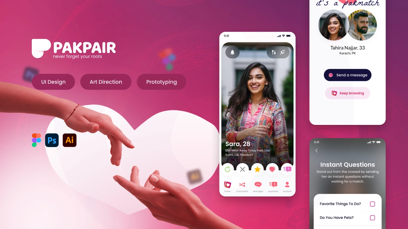I designed the UI/UX for PakPair, a modern matrimonial platform built to simplify the matchmaking process. My focus was on creating a clean and user-friendly interface where users can easily browse profiles, connect, and communicate with potential matches. The design emphasizes trust, accessibility, and smooth navigation, ensuring a seamless experience across devices while reflecting the cultural and professional tone of the brand.