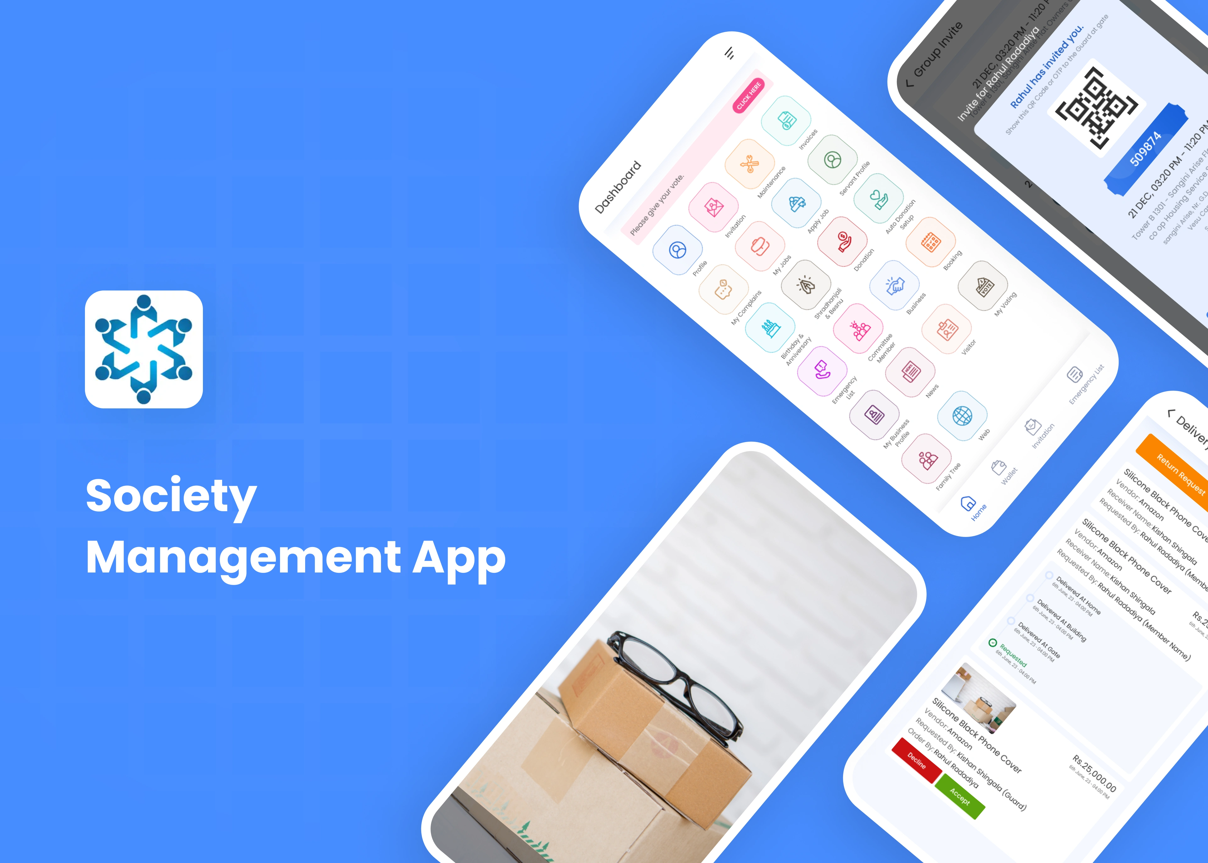 Society Management will help society or organization to be more socialize by sharing information like news, photos and news efficiently. This app help users to send online complains and booking of properties of organization. Society owner can also send notification to all members instantly. This application is idea for Societies, Social Organization and Club House