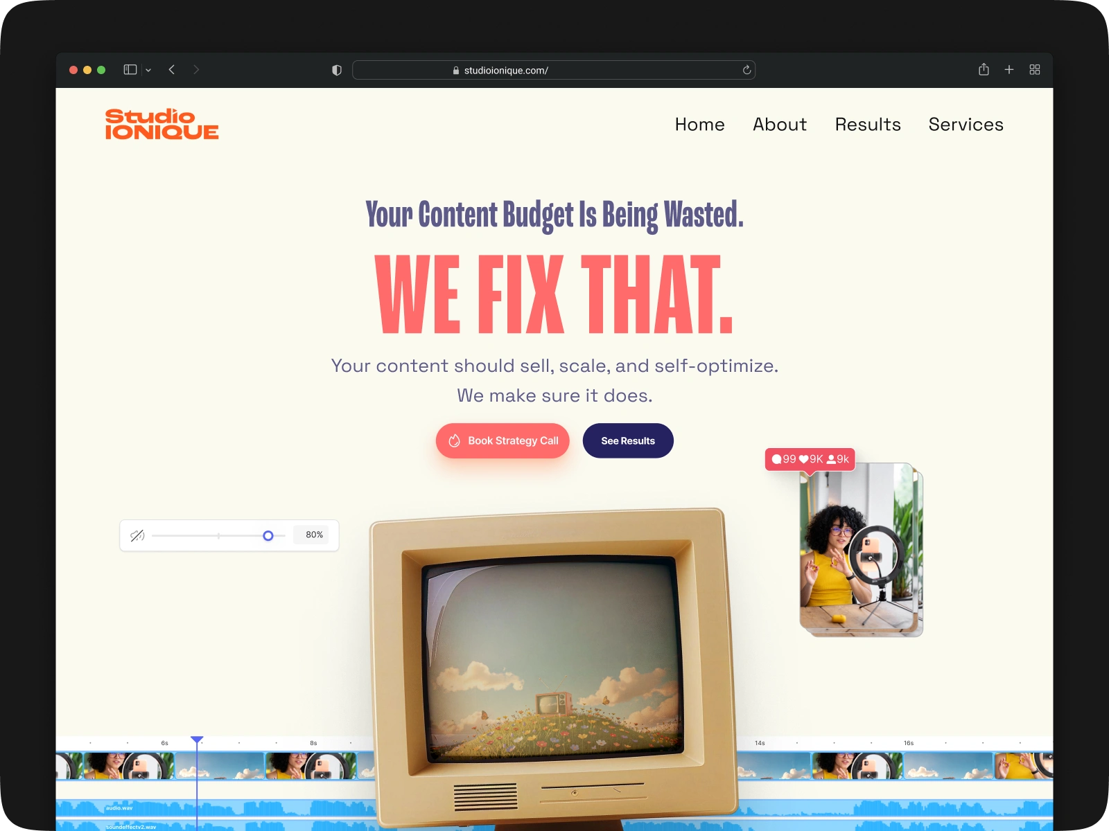 We designed a clean and compelling narrative that walks visitors through ROI driven content services covering growth strategy, scripting, production, thumbnails, SEO, publishing, and analytics.