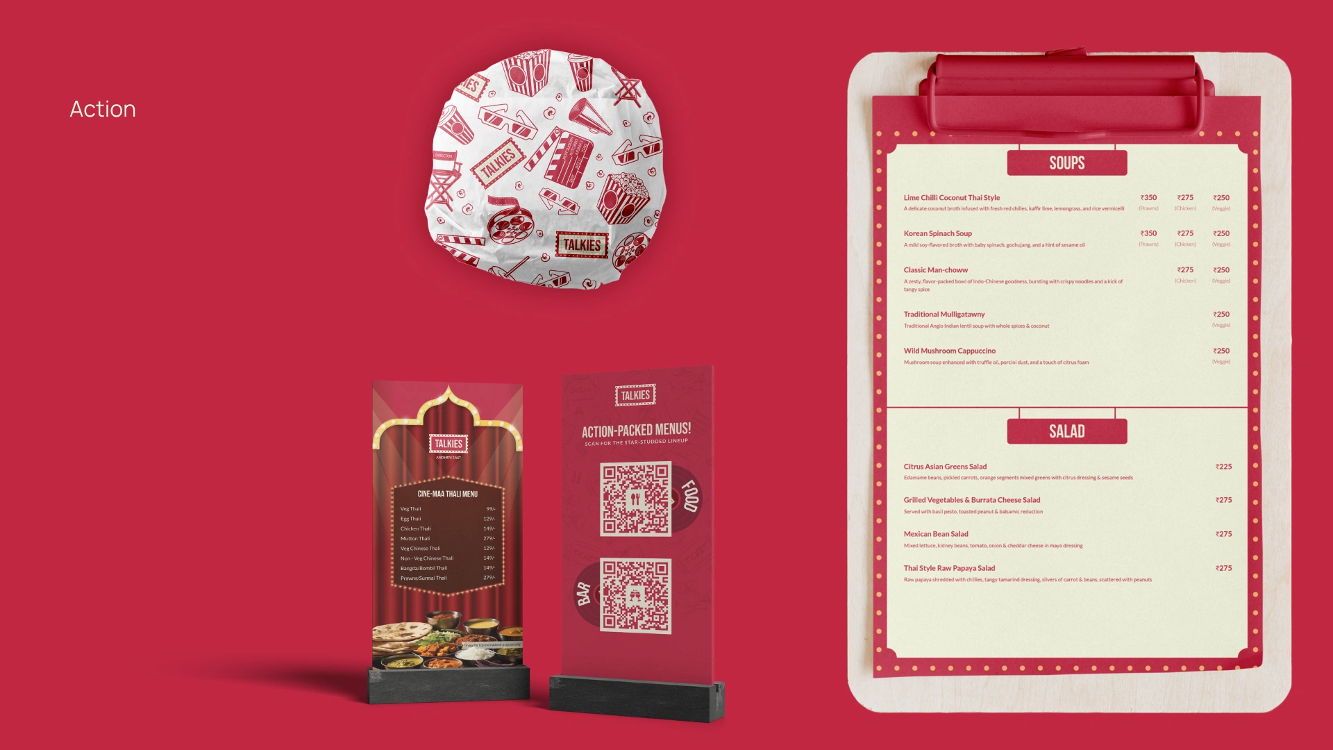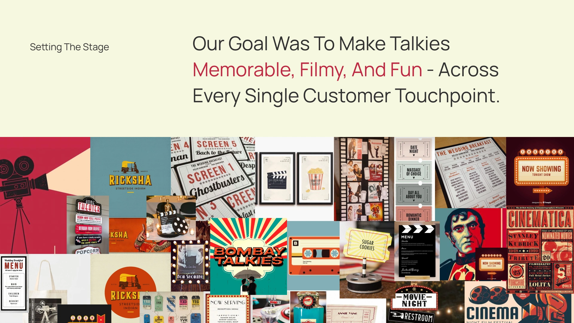 Branded a retro cinema themed resto-bar with a marquee inspired logo, bold visuals & cinematic voice, loved across touch points, online & offline.