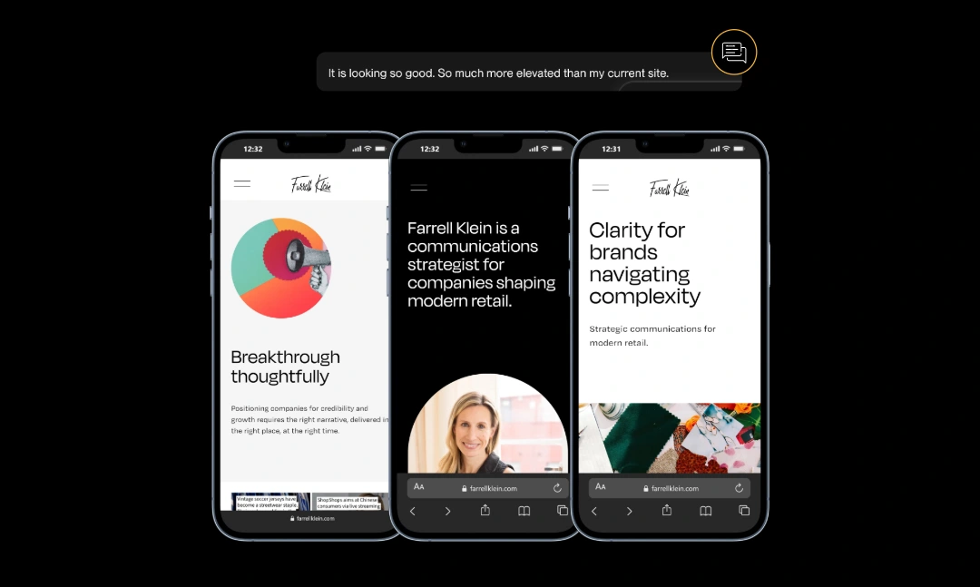 The core goal: Make the website feel elevated enough to attract larger clients in brand strategy, PR, and communications.