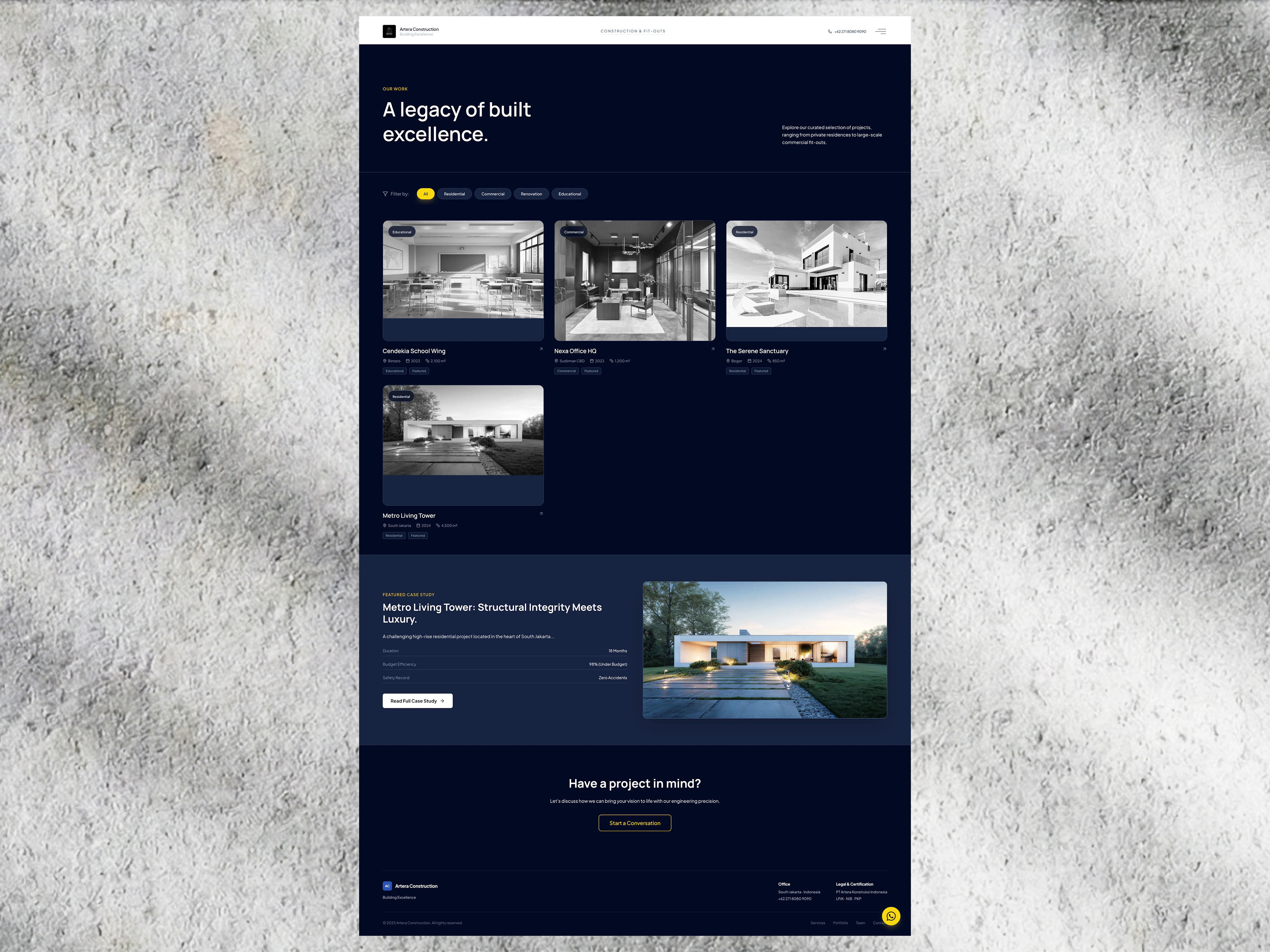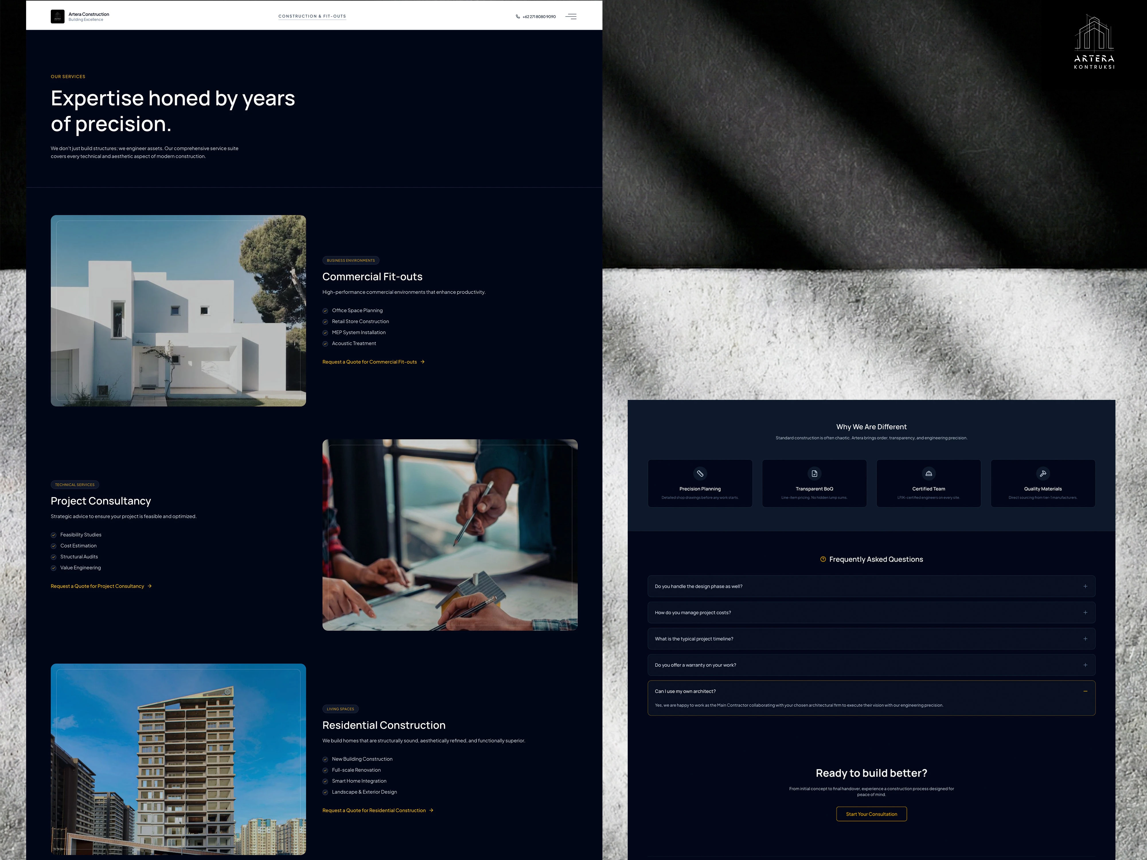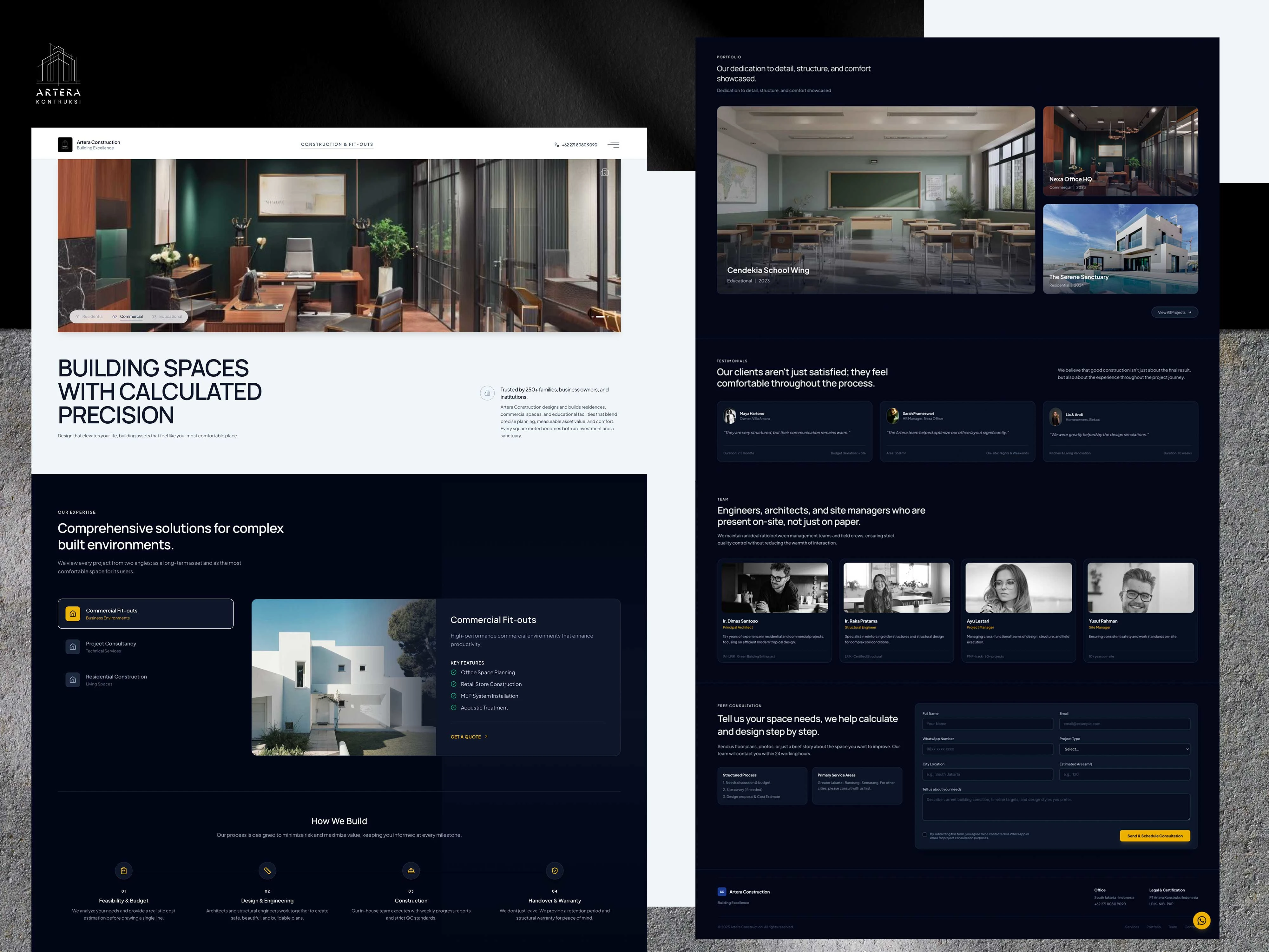 Artera Construction needed a digital presence that balanced two opposing concepts: technical precision (engineering, safety, structure) and human comfort (warmth, sanctuary, design). In the high-stakes construction industry, the main challenge was to design a website that immediately lowered "client anxiety" and established Artera not just as contractors, but as strategic partners for families and businesses investing in long-term assets.