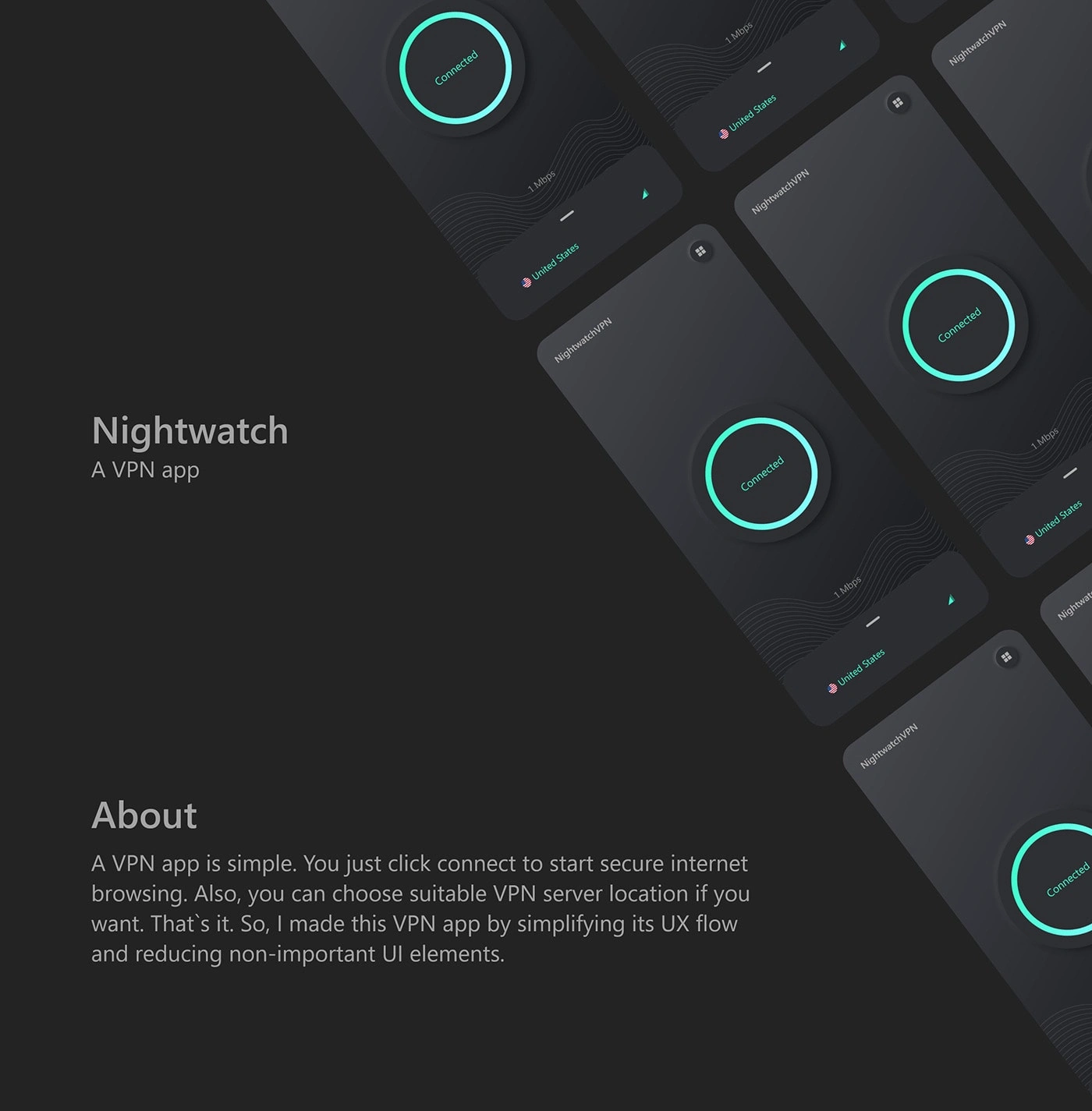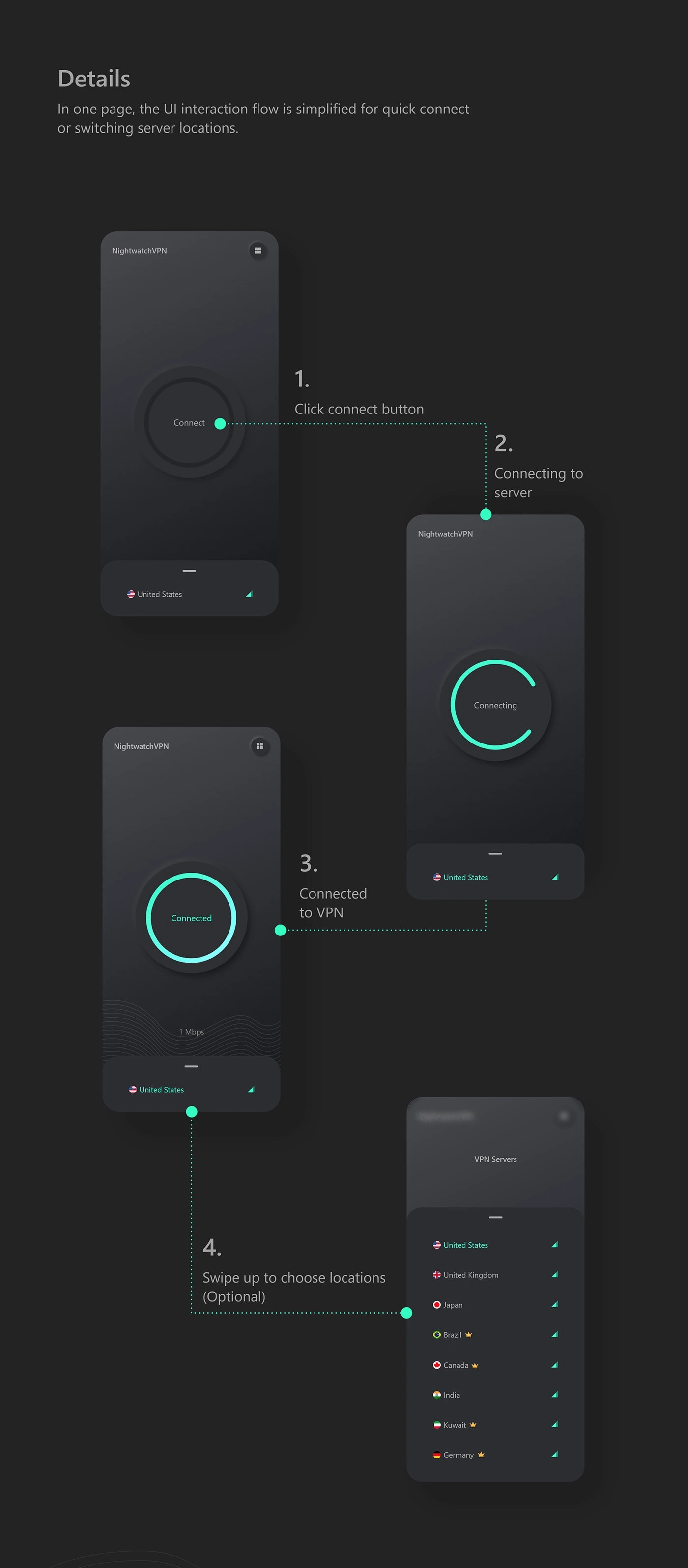 A simple VPN app design with a bit of neumorphic-style UI and easy-to-use interaction flows