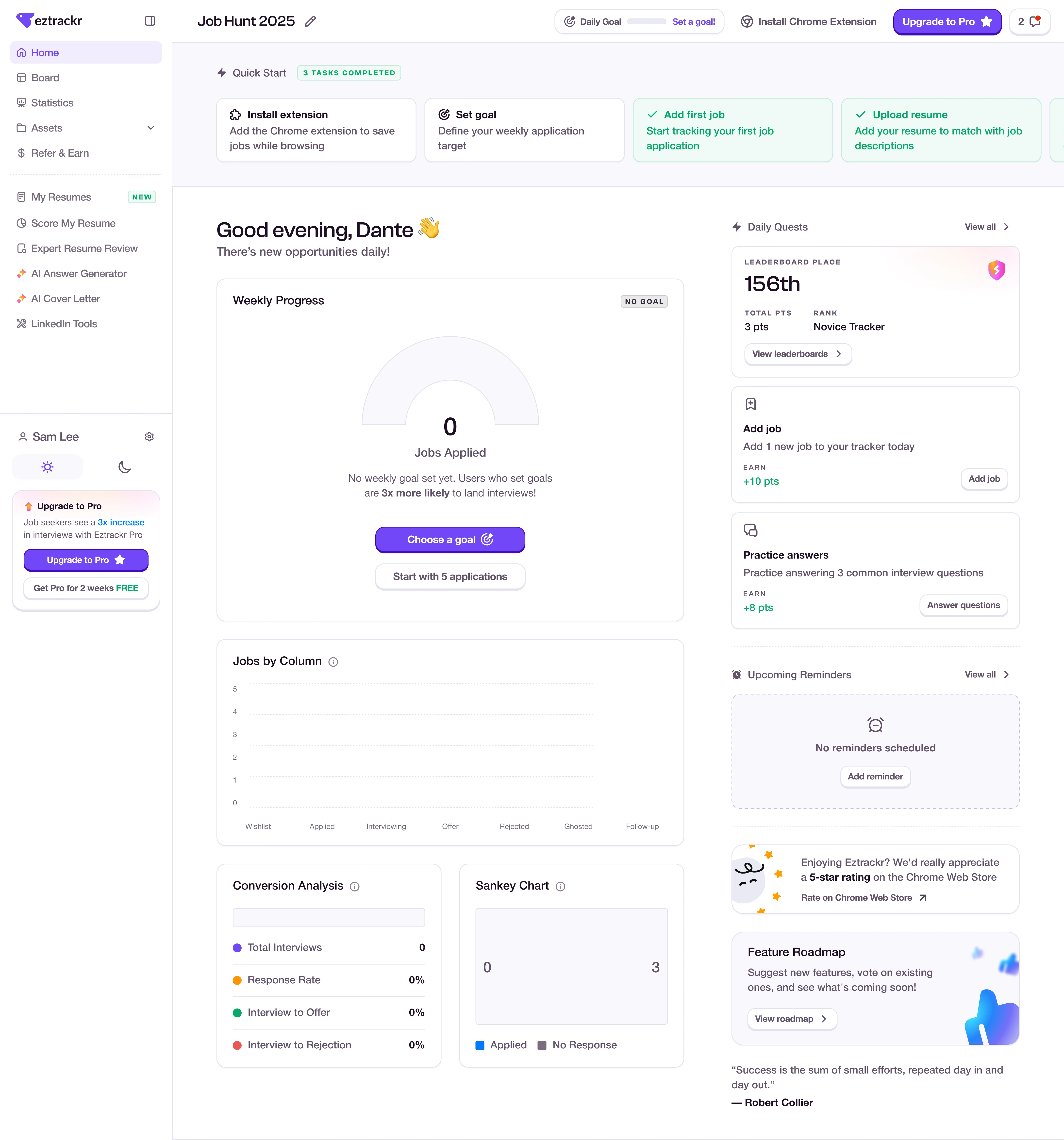 Eztrackr is a job tracking platform that uses ai to help job seekers manage applications and improve how they present themselves. It includes tools for resume building, resume grading, linkedin profile optimization, and automatic job tracking.