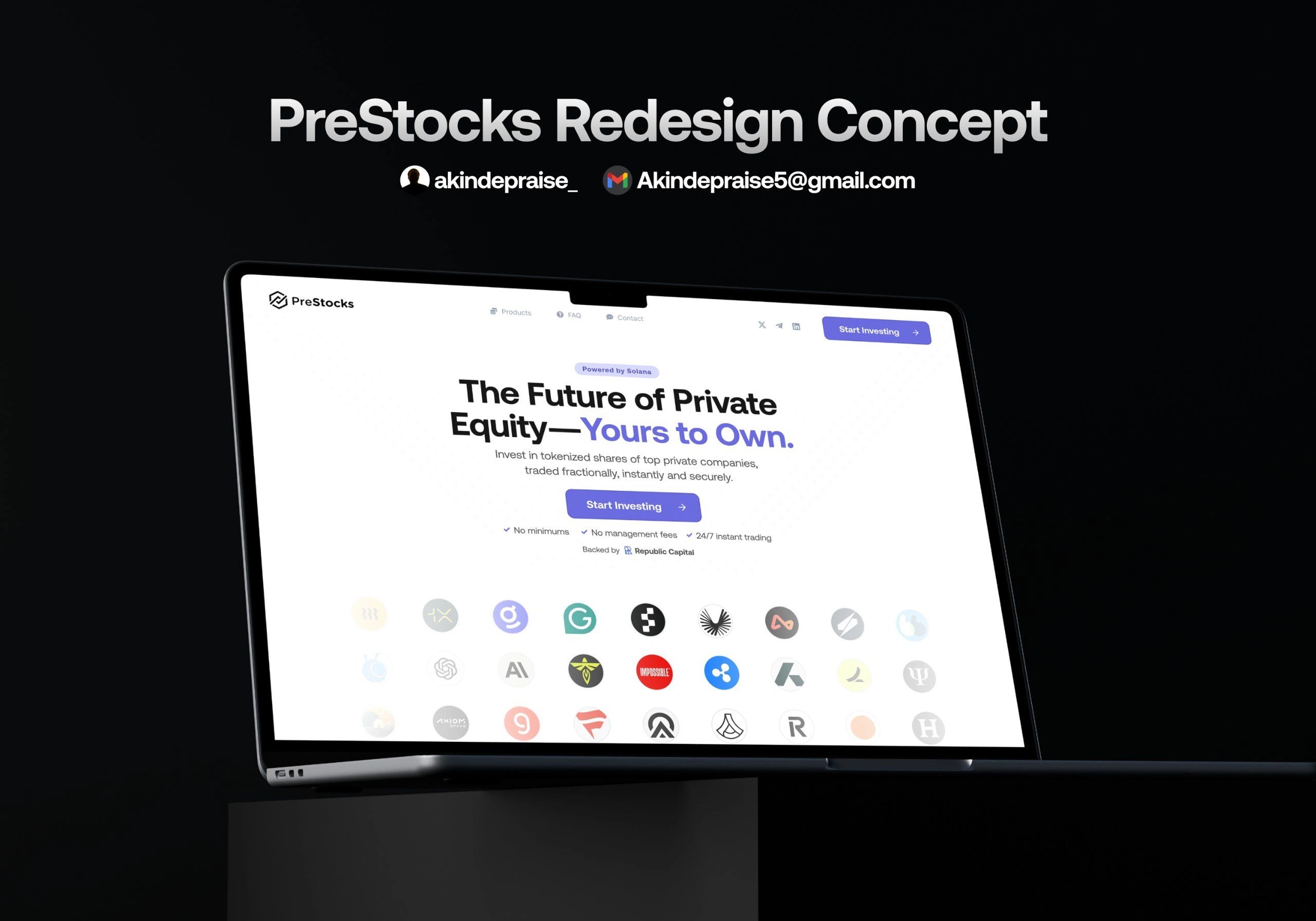 I upgraded the hero with a bold headline, replaced cluttered scrolling logos with a clean investor showcase, introduced dark and light modes, and refreshed the overall UI. The result is a clearer, more credible Web3 interface that improves engagement and positions Prestock as a category leader.
