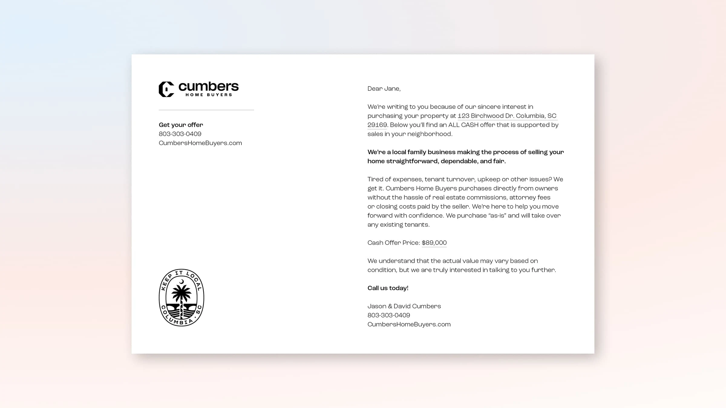 In the cash home buying world, homeowners often face a daunting gap—caught between impersonal national buyers and local options that lack clarity or trust. Cumbers Home Buyers wanted to be different: a bridge over that uncertainty, offering a fast, fair, and supportive way to sell. Starting from scratch, they needed a standout identity that screamed local reliability and genuine connection in a crowded, confusing market.