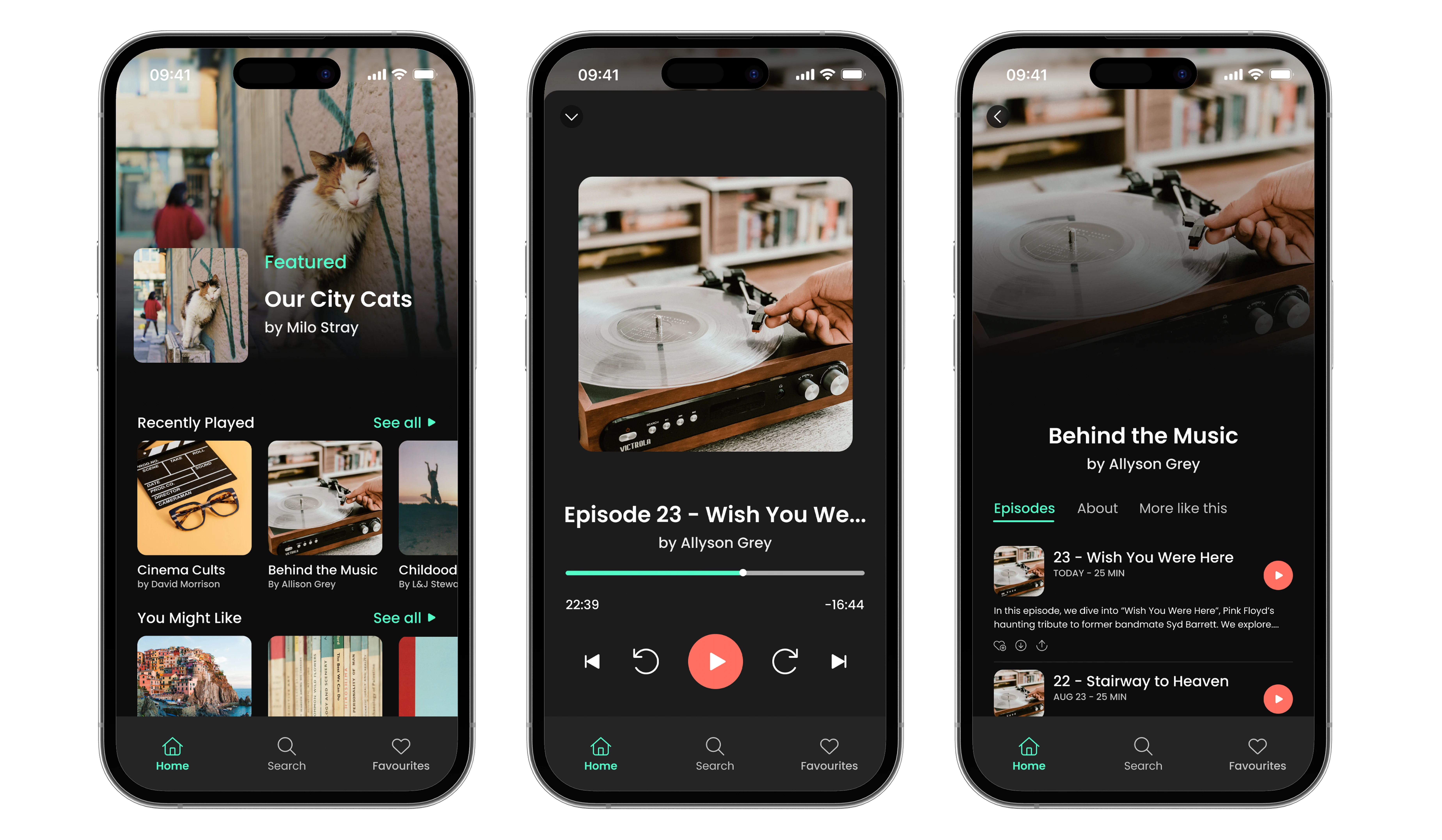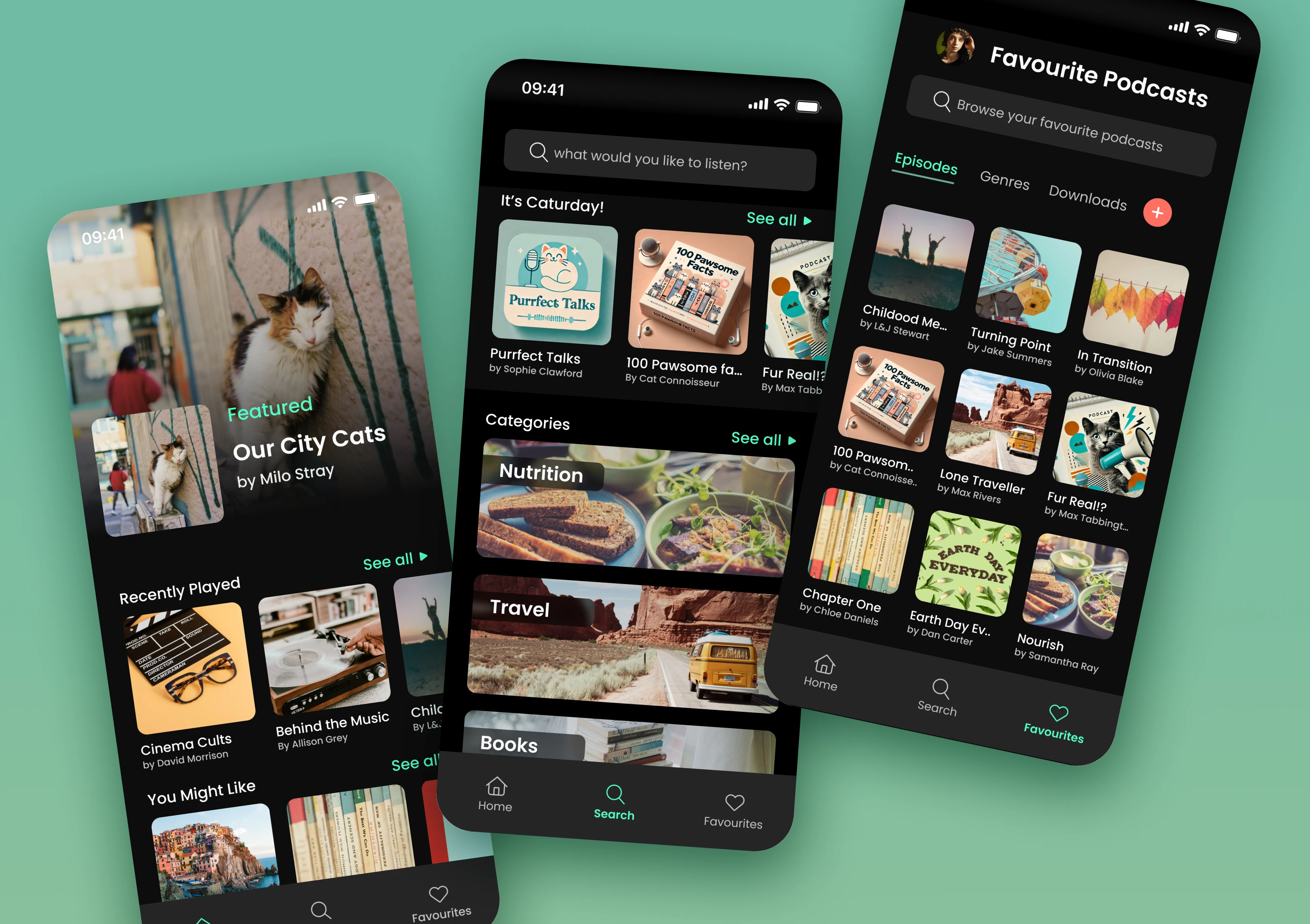 A Podcast App UI challenge focused on designing an easy and enjoyable listening experience, from discovery to playback. It includes a personalized home feed, smart search with curated picks, and a clean space to save your favorite episodes.
