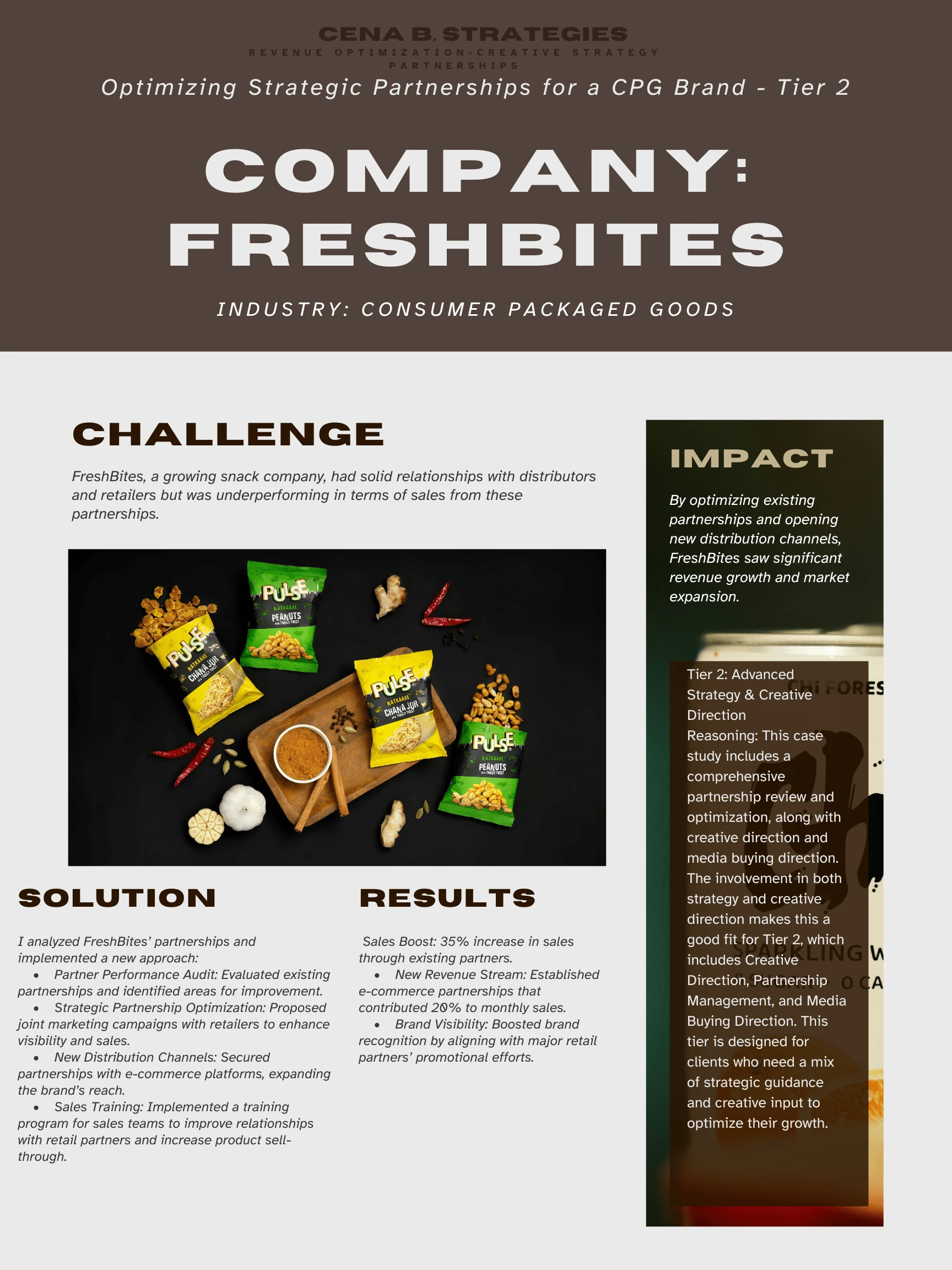 FreshBites boosted sales by 35% and gained 20% from new e-commerce channels, with increased brand visibility through optimized retail partnerships.