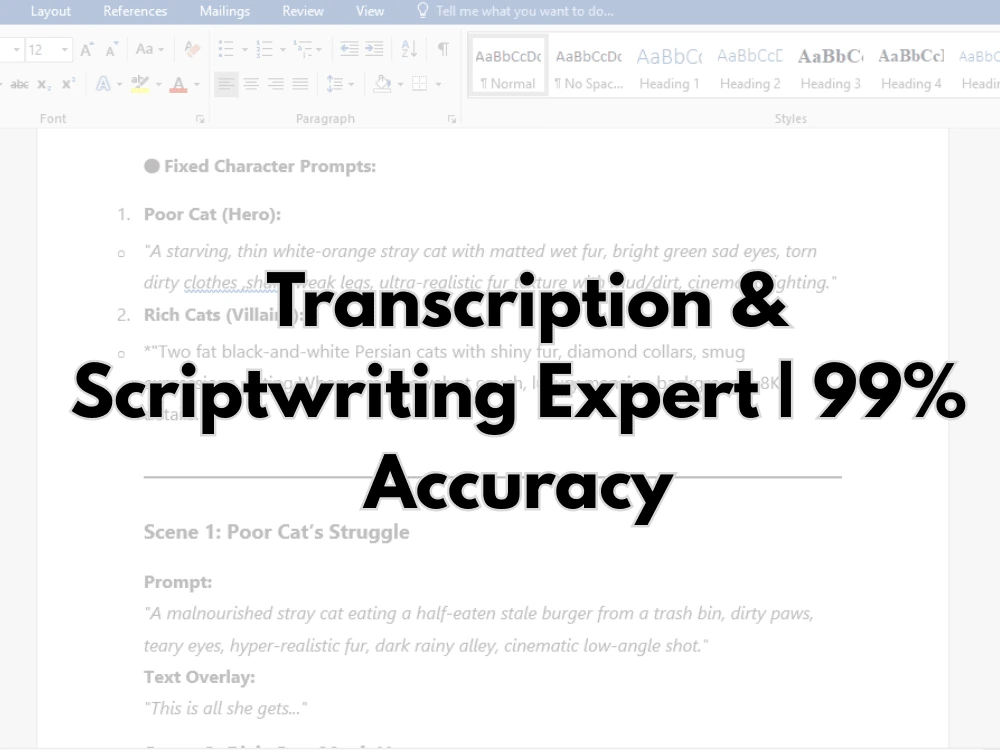 Transcribed audio/video , words files with 99%+ accuracy and wrote clear, impactful scripts for businesses, podcasts, and YouTube content.