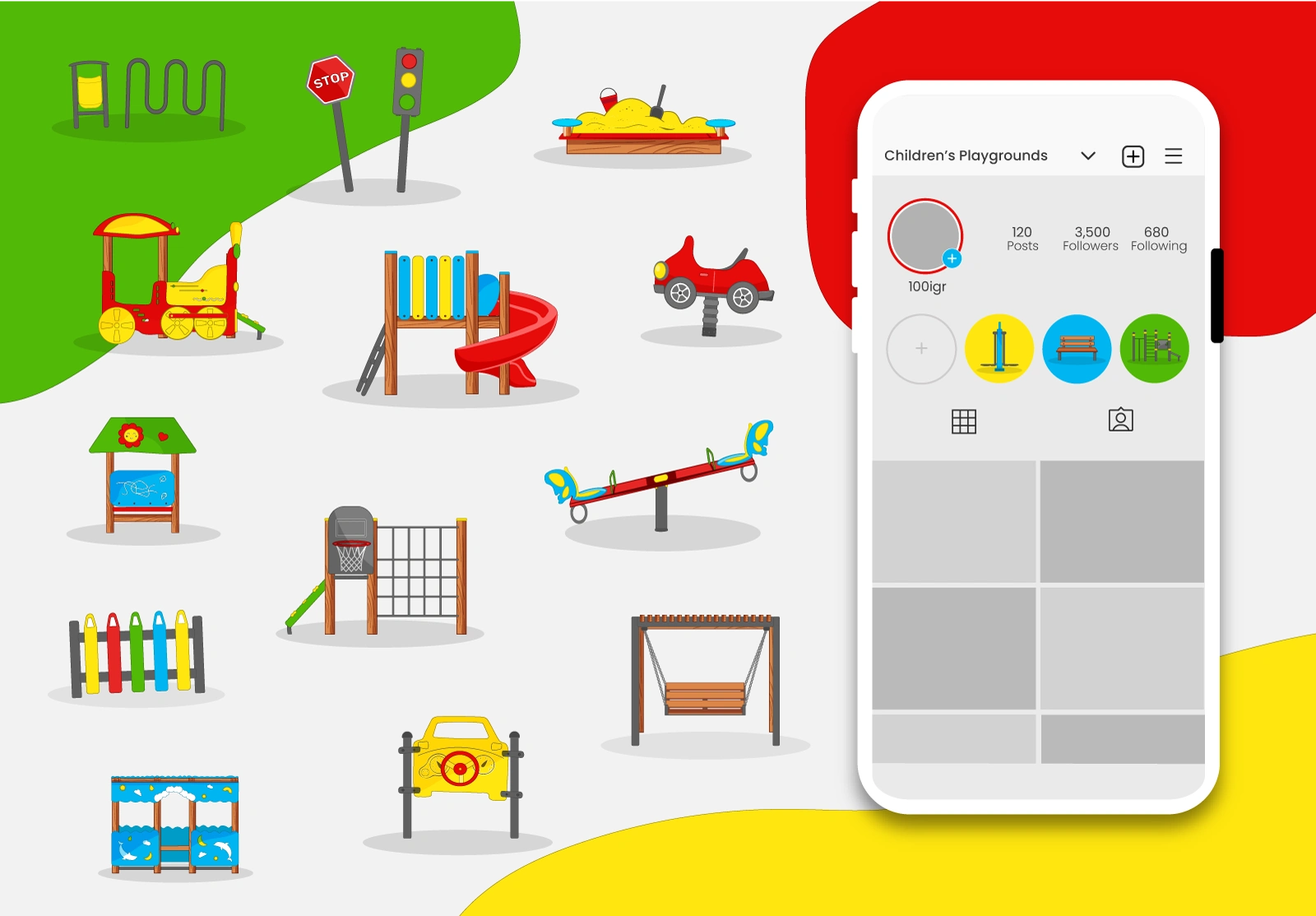 B2B icon system for an international playground equipment manufacturer. Designed for use in websites, catalogs, and digital product interfaces.