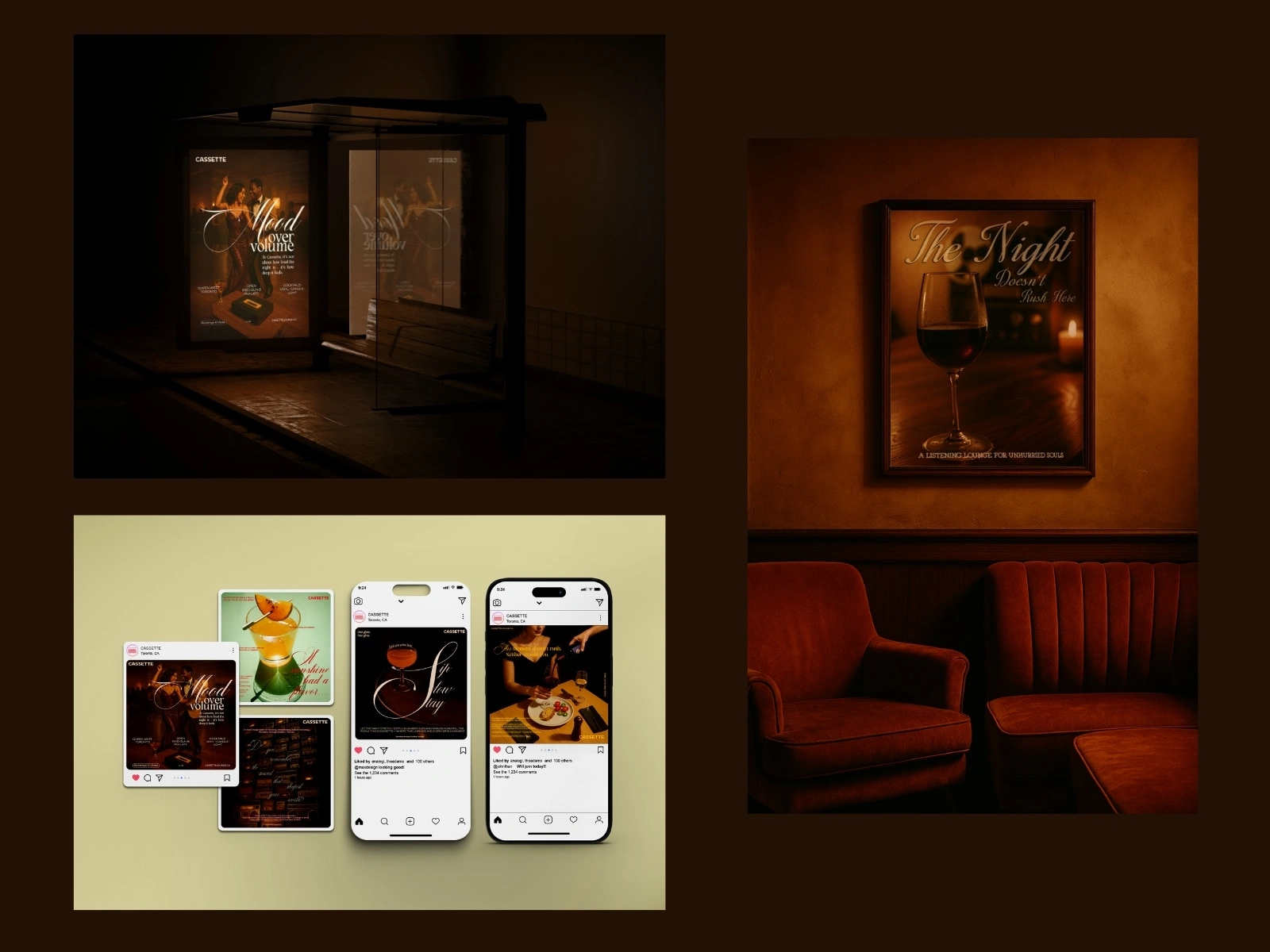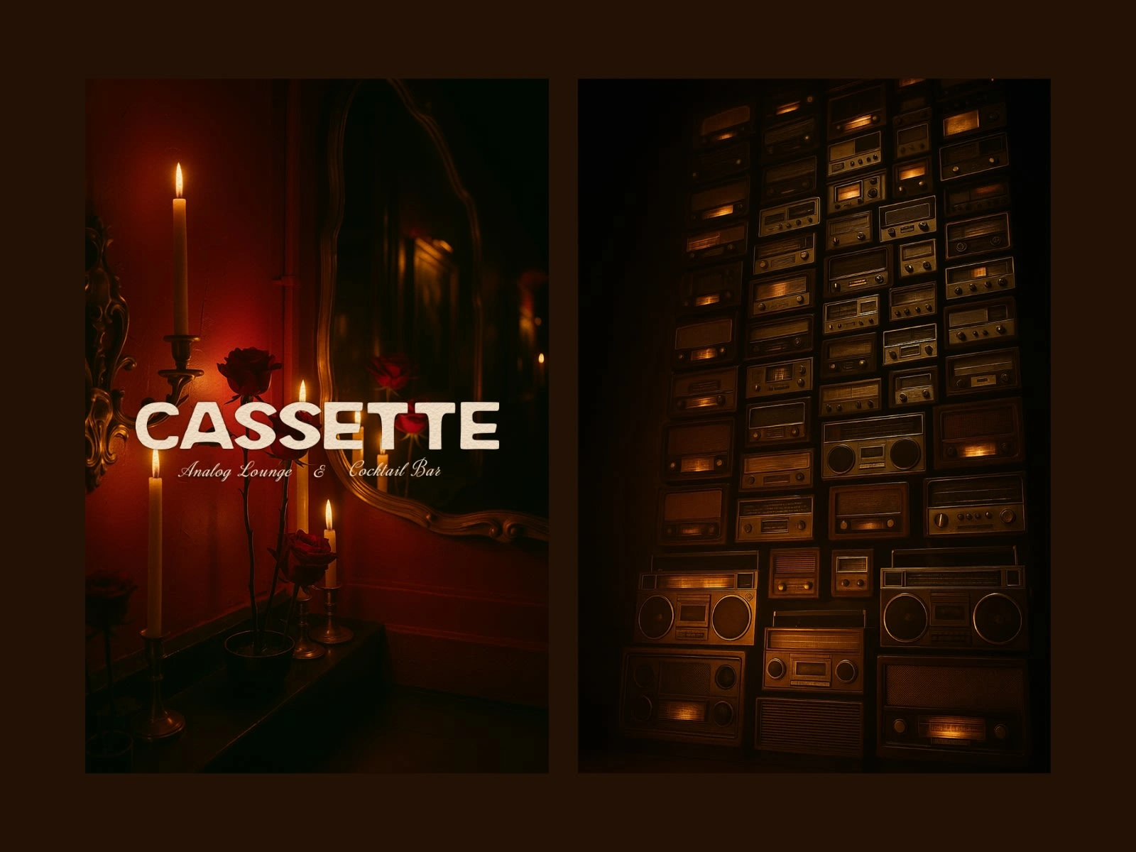 Cassette is a slow-living sound lounge and nostalgic cocktail bar based in Toronto, designed to bring back the romance of analog sound, dimly lit interiors, and meaningful conversation. Rooted in 60s–80s listening culture, Cassette offers a cinematic escape where time slows, music crackles, and memory becomes mood.