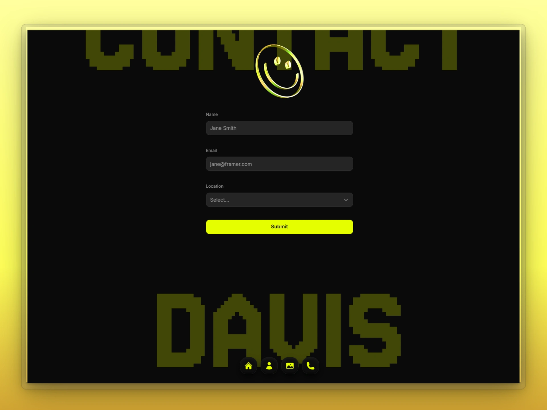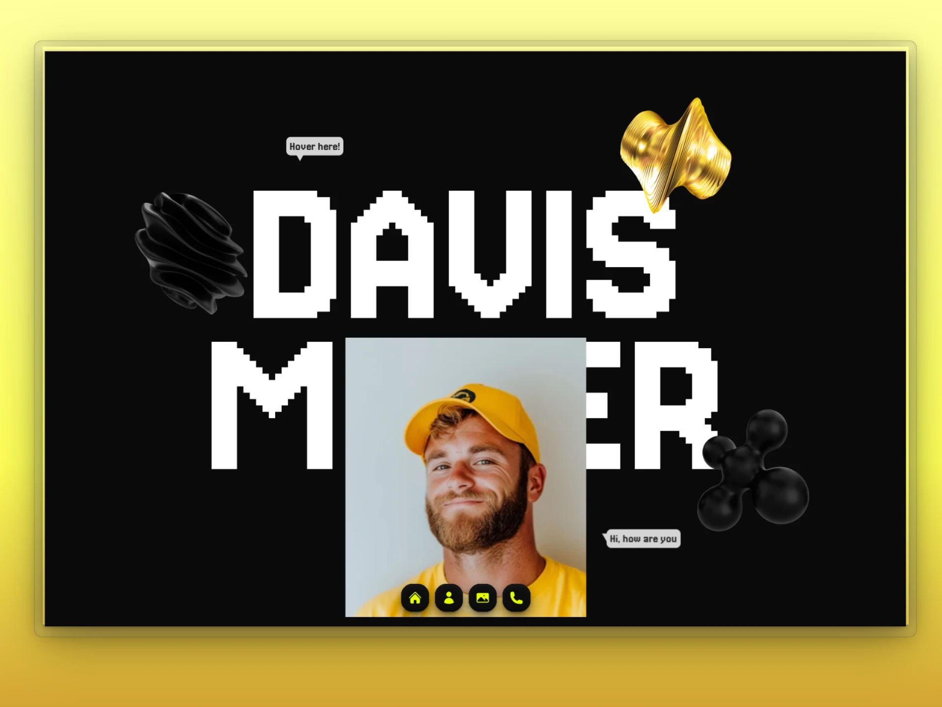Davis is a personal portfolio built to make a bold first impression. The goal was to showcase personality and skill in a way that feels confident, clean, and easy to navigate.
