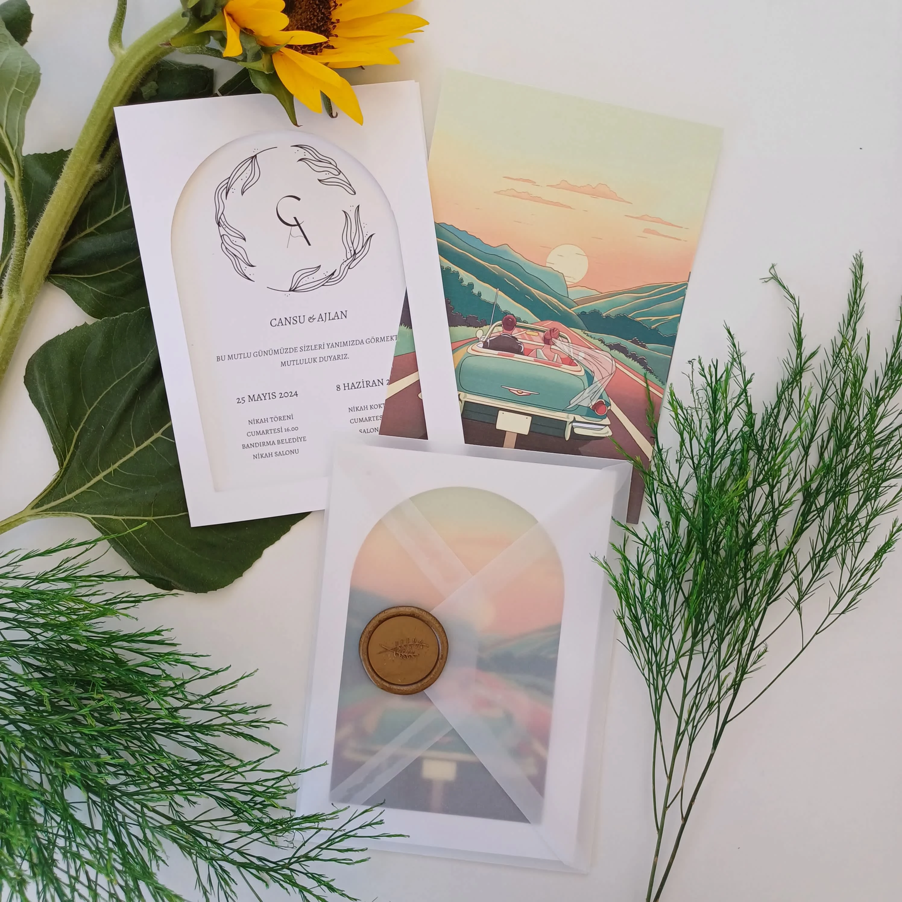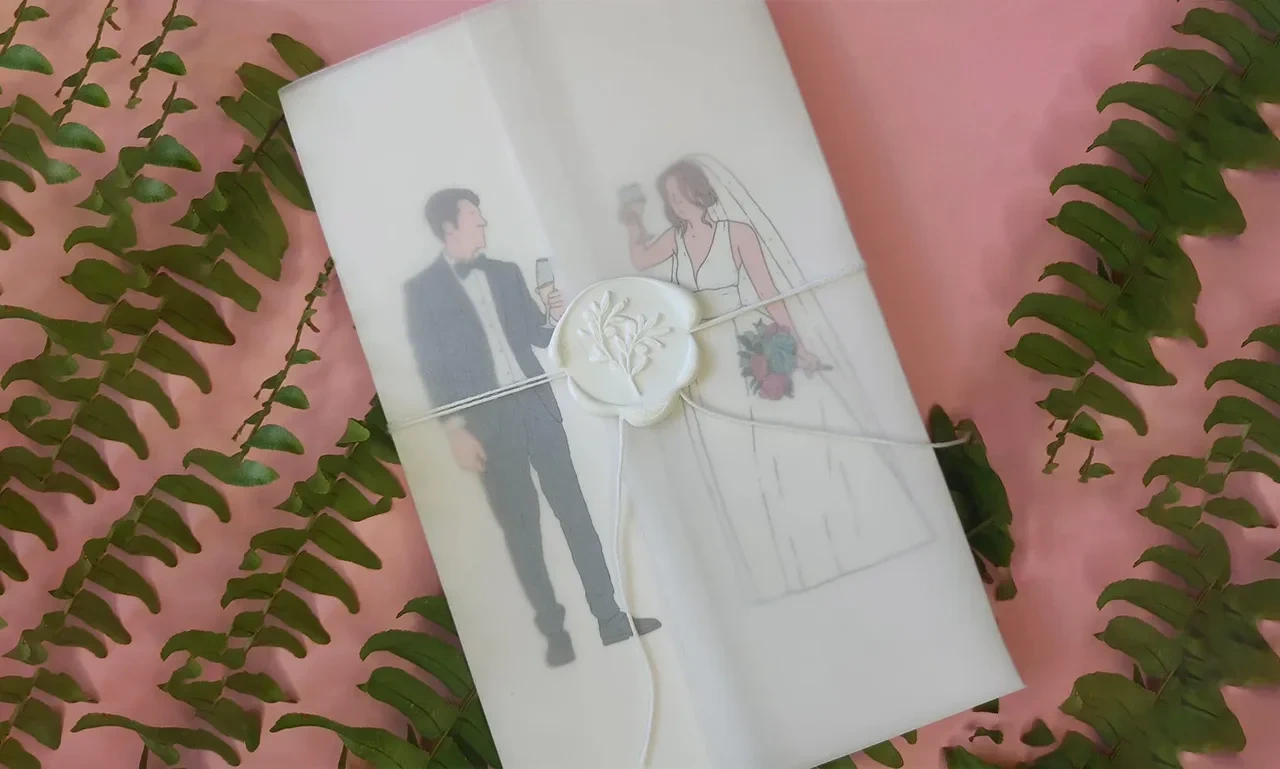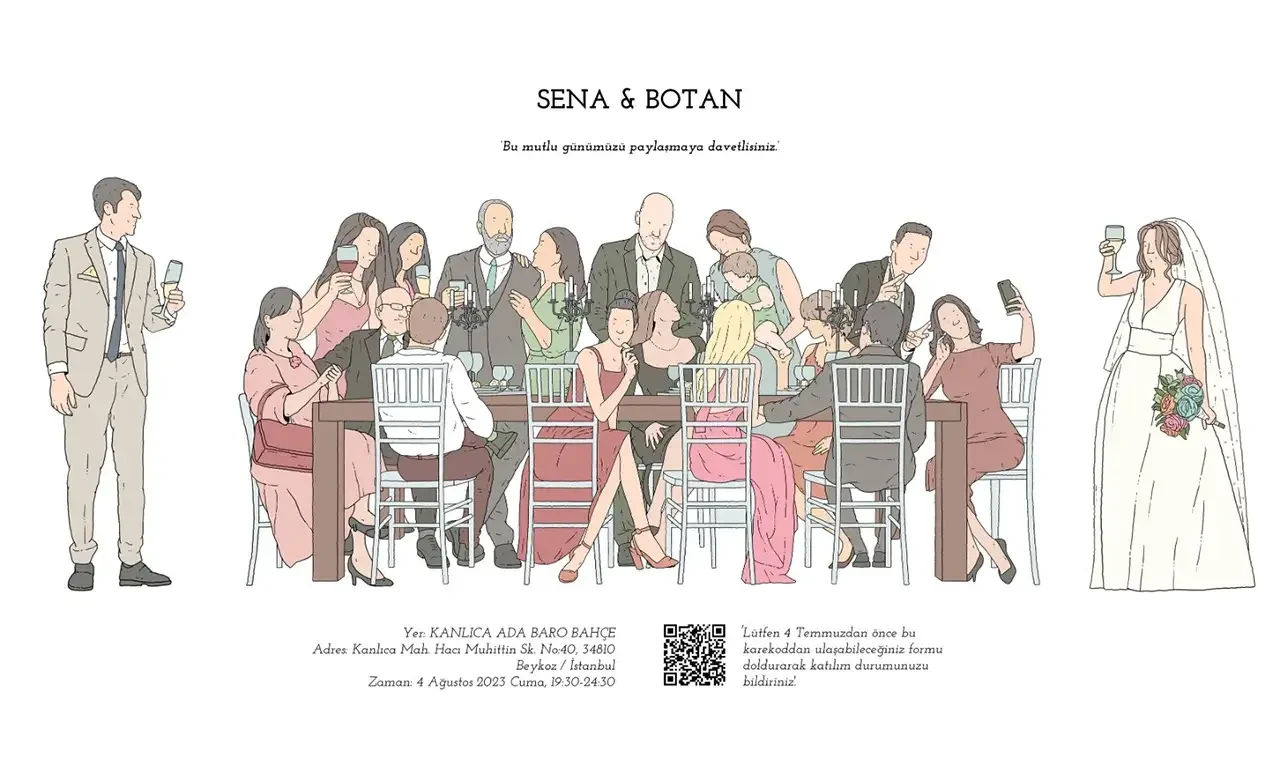 Dream invitation; it could be your illustration as a couple, your favorite place, your meeting memory, or anything you want!
