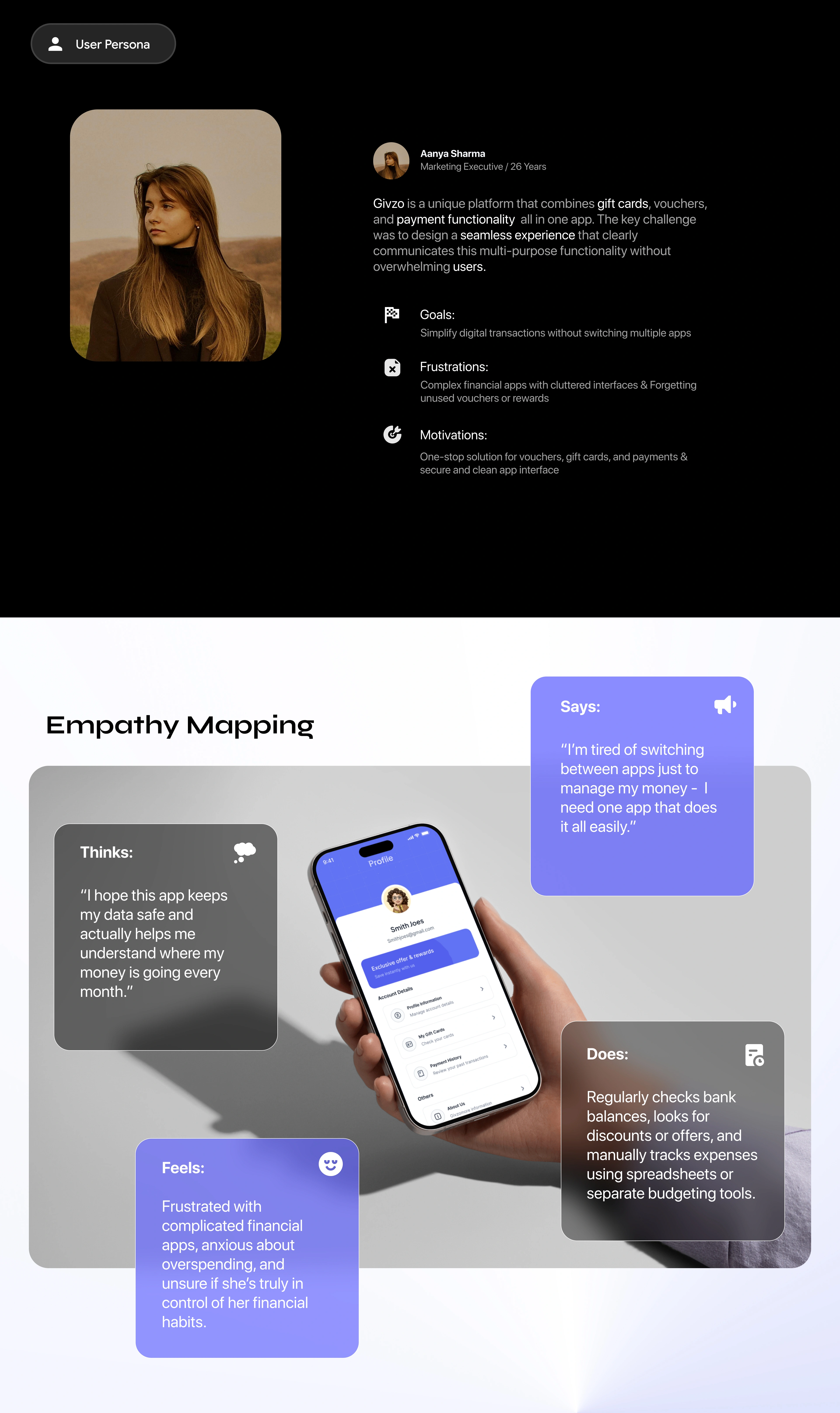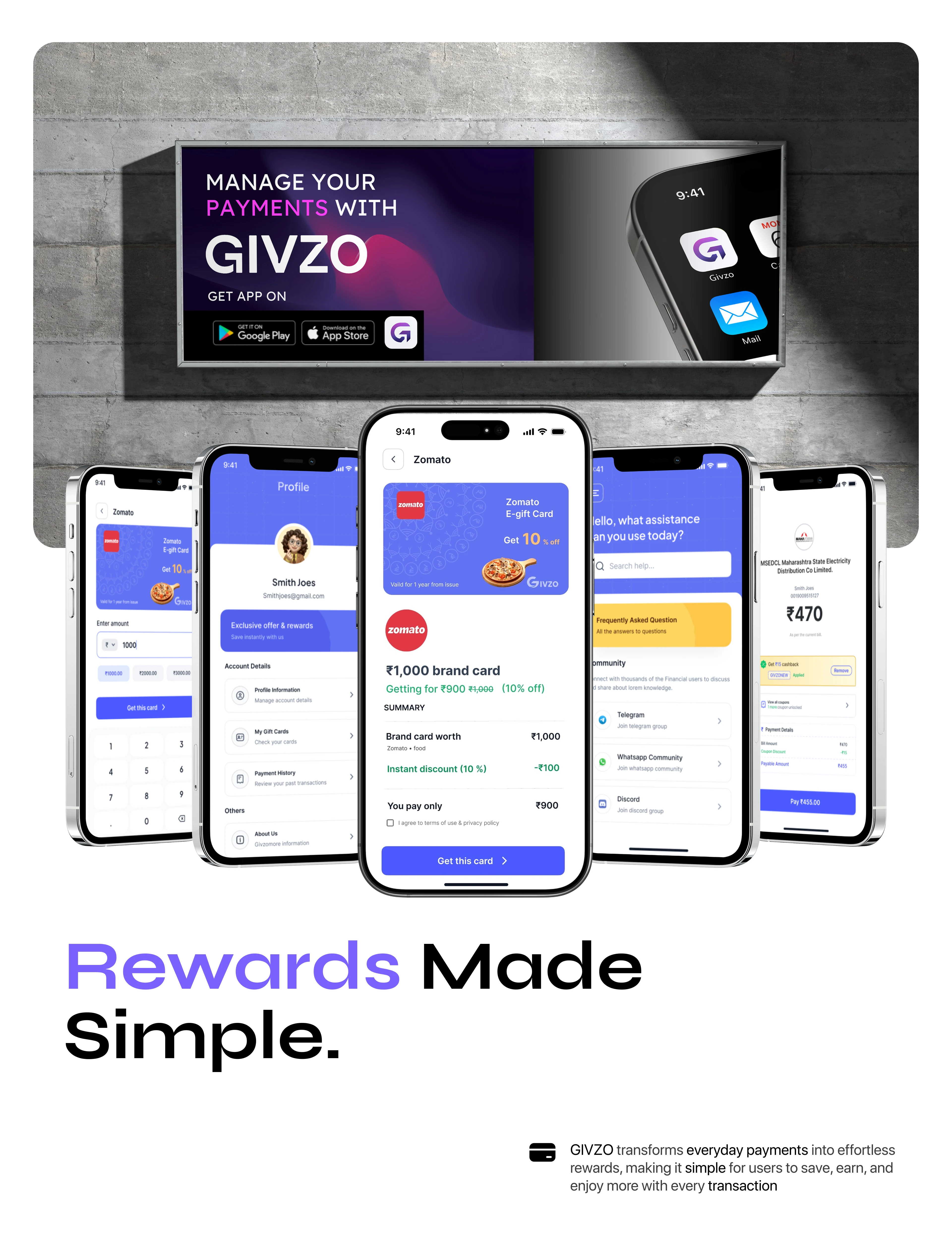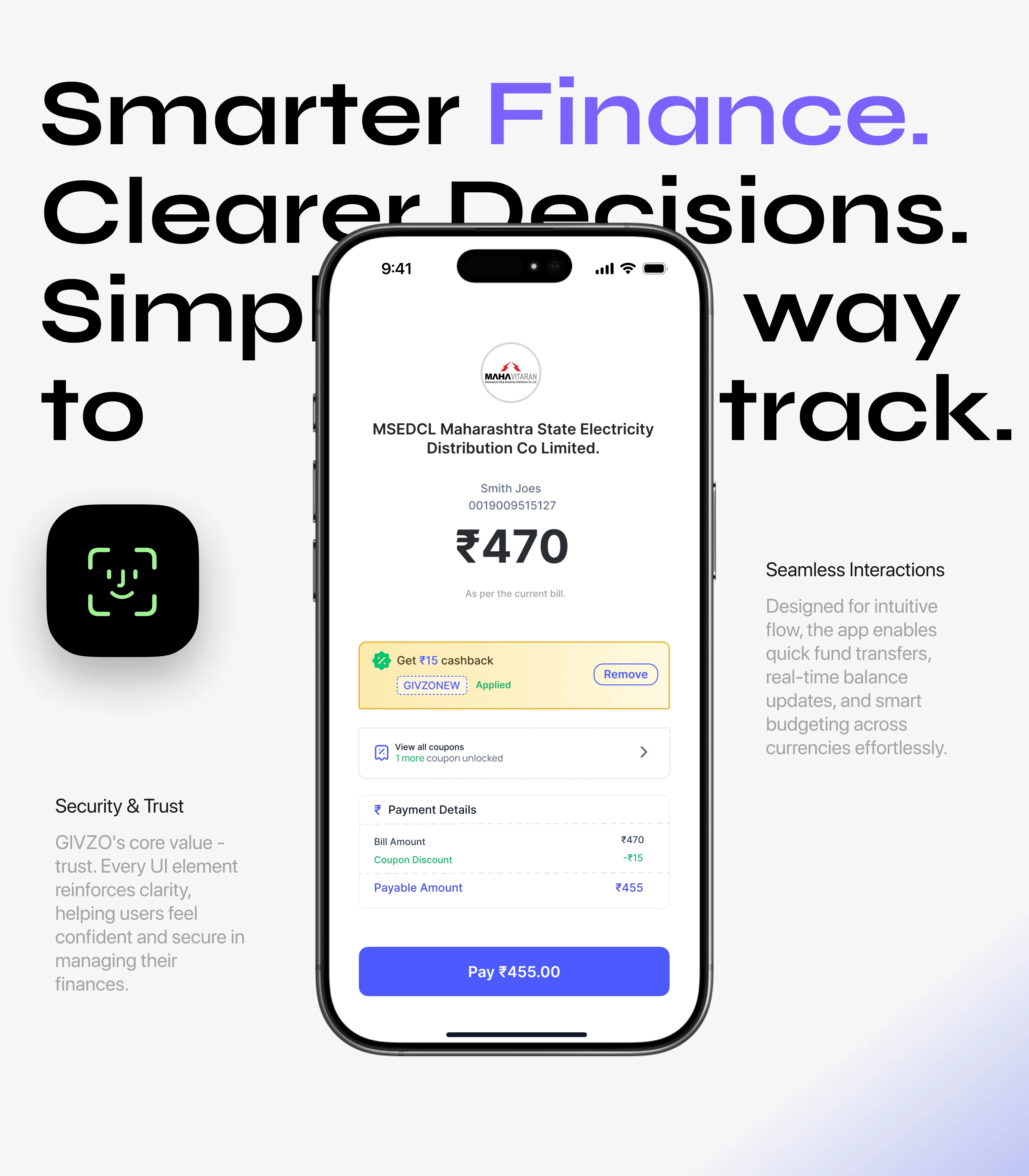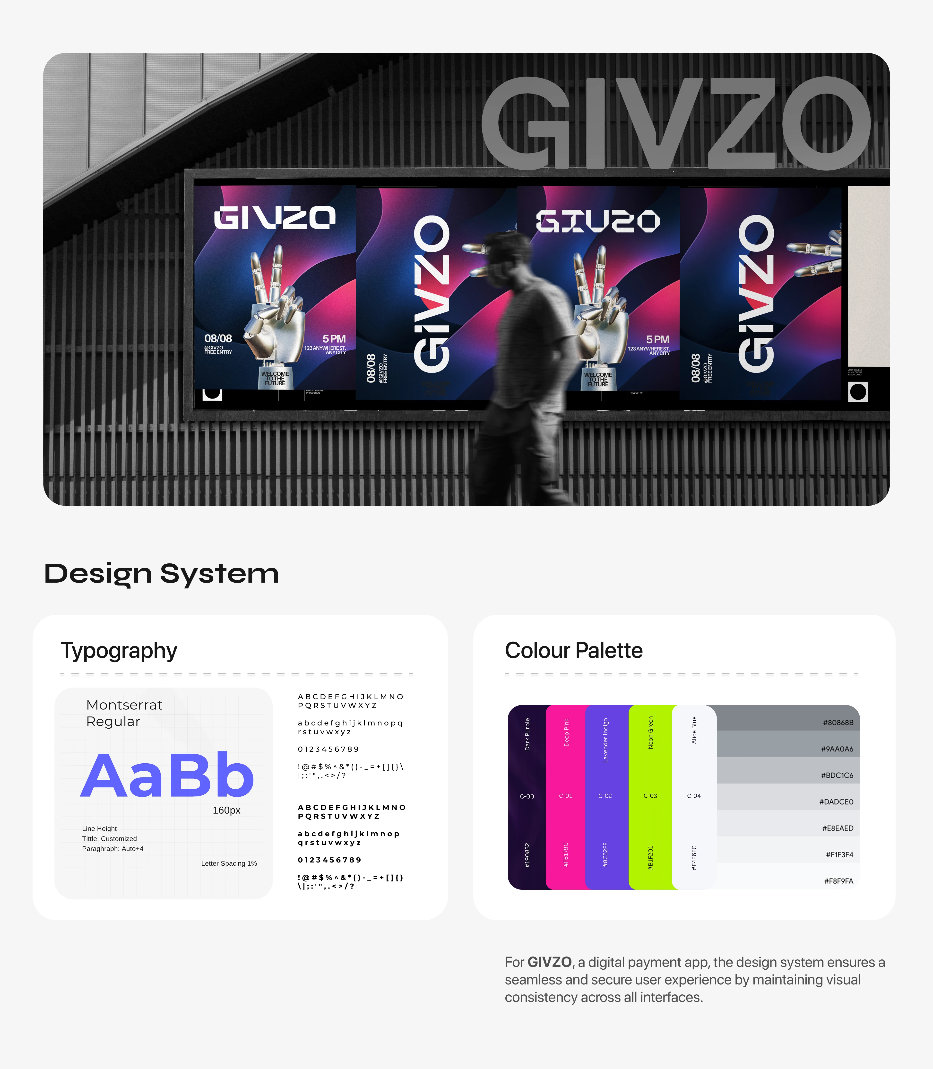 GIVZO is a modern fintech app that combines payments into one seamless experience. The complete UI/UX design, logo creation, and brand identity system.