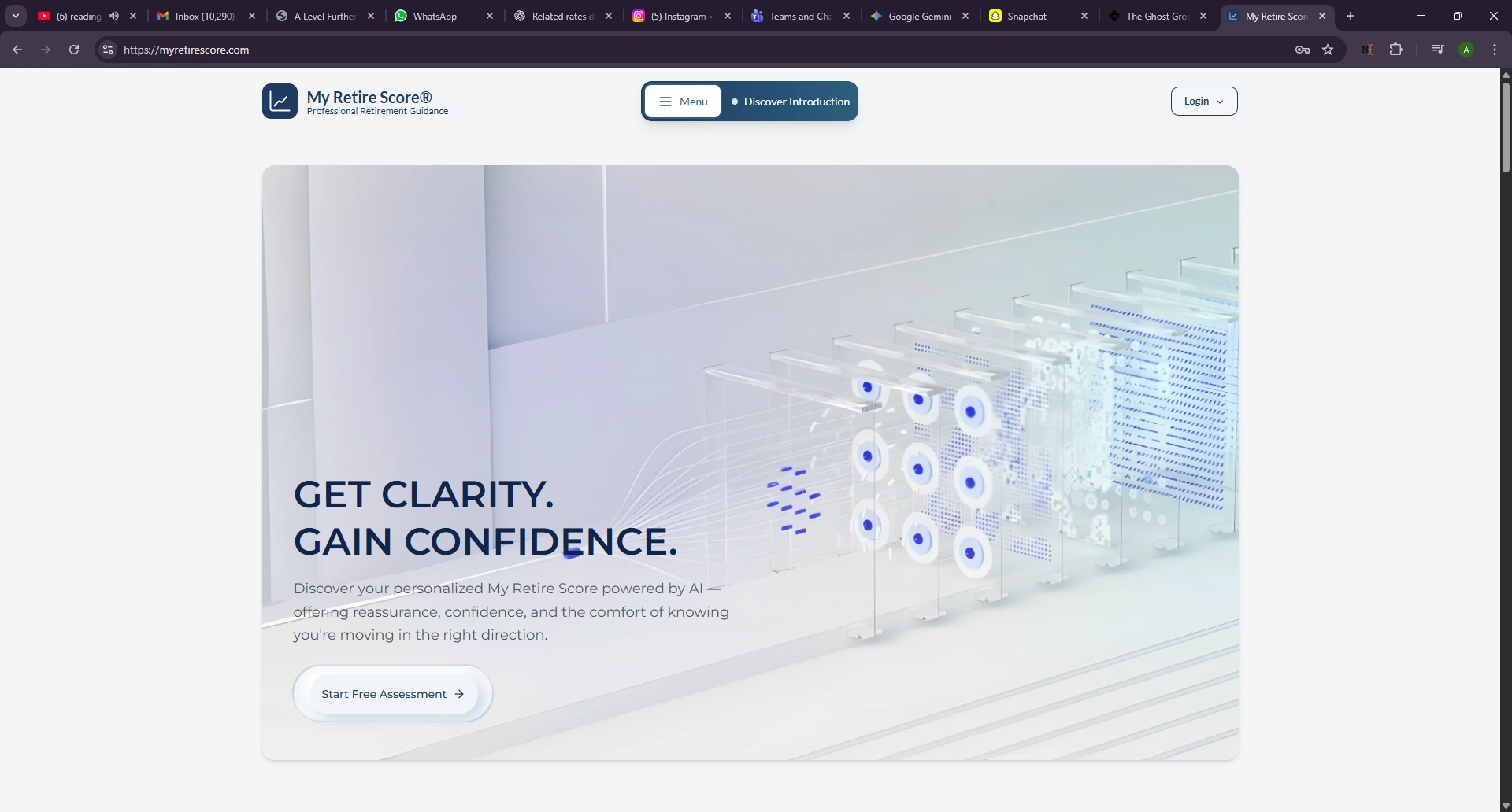 My Retire Score™ is an AI-powered retirement platform using conversational AI and 10,000 Monte Carlo simulations to deliver a clear retirement readiness score.