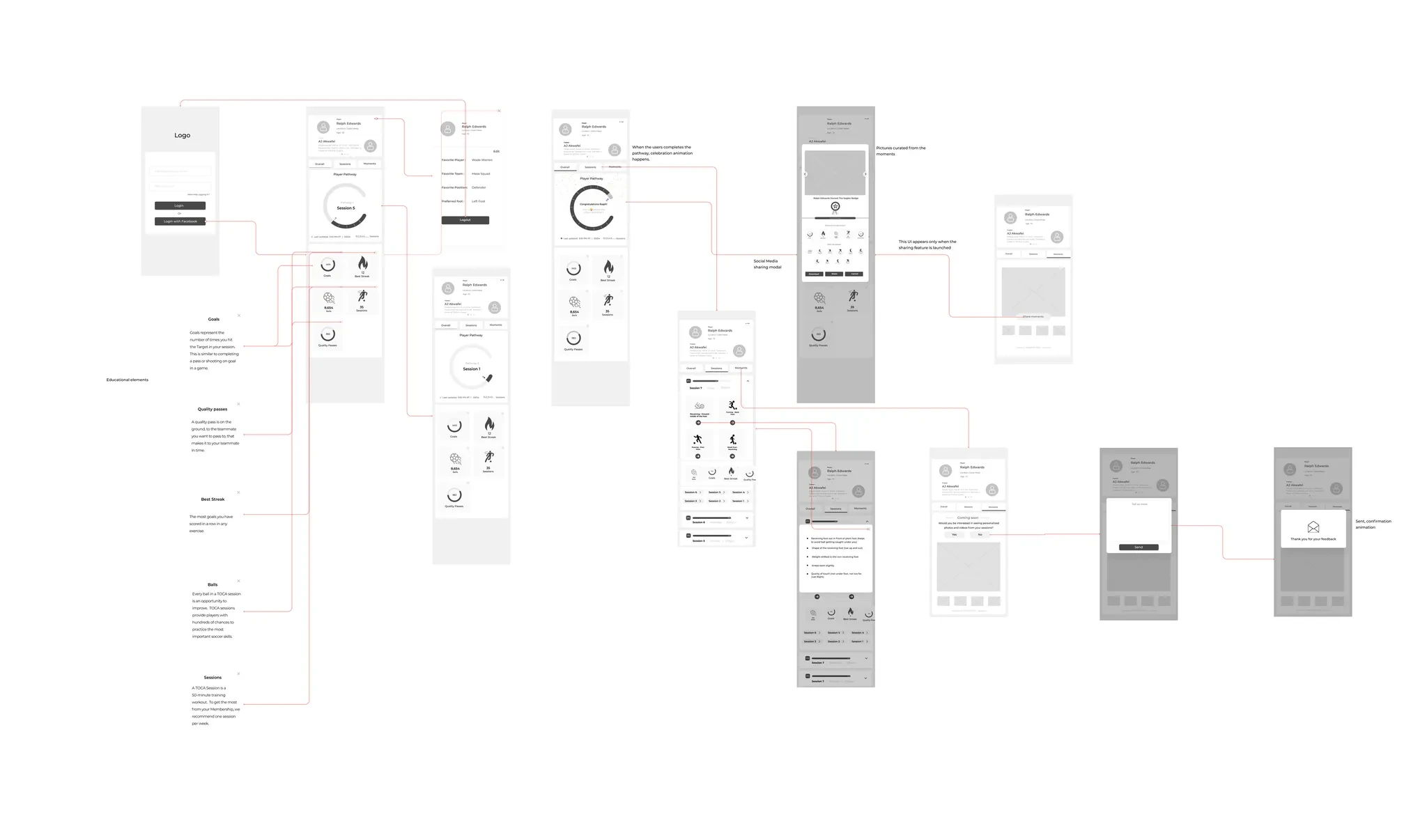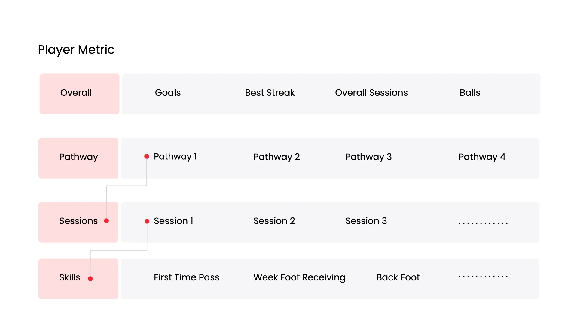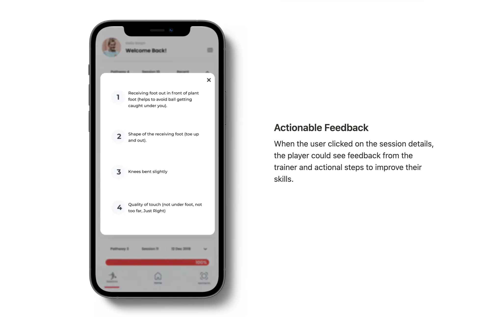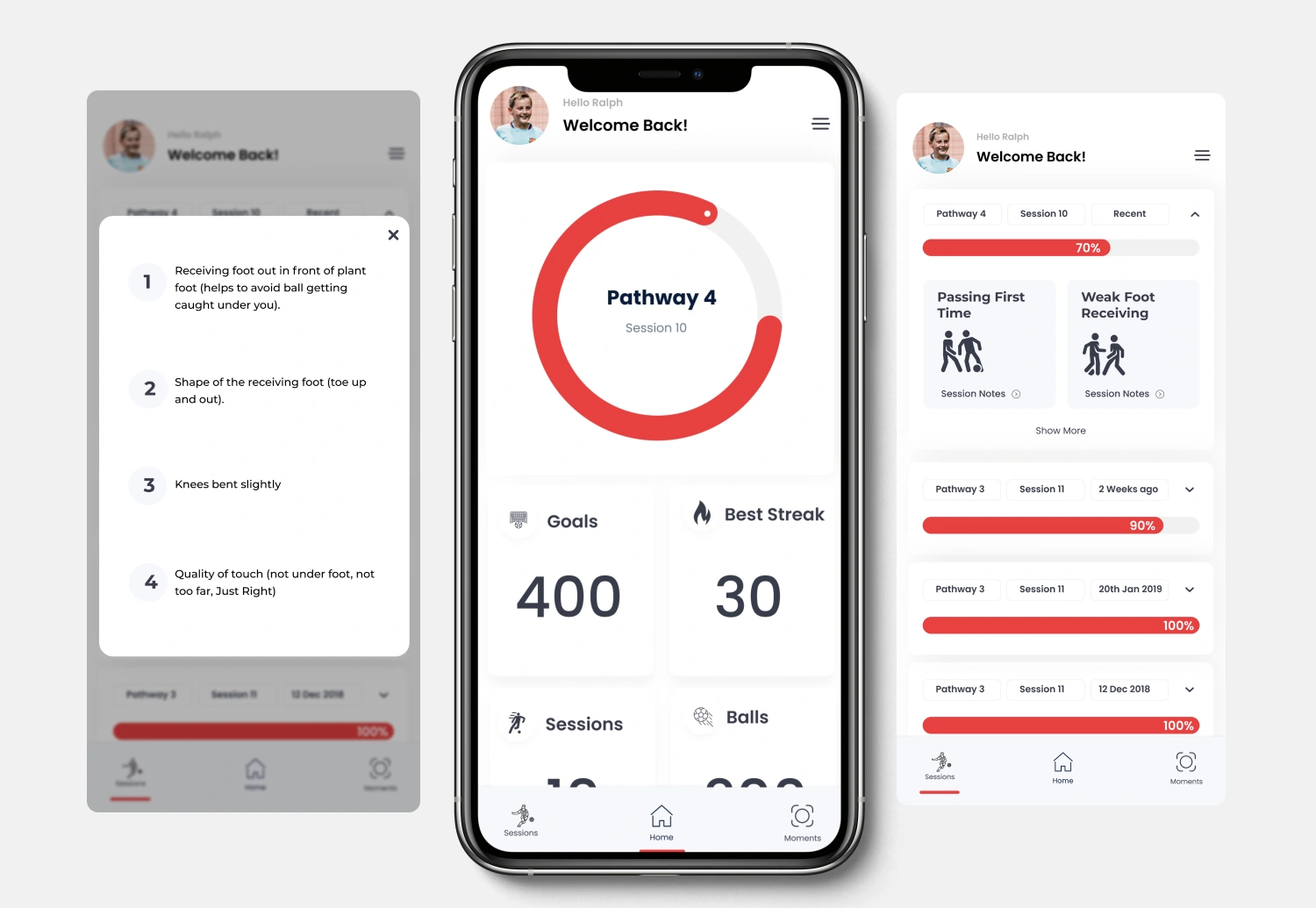 The product prototype showed users the pathway and sessions they are on. It also showed users the key training metrics like Goals, best streak, balls, and session details.