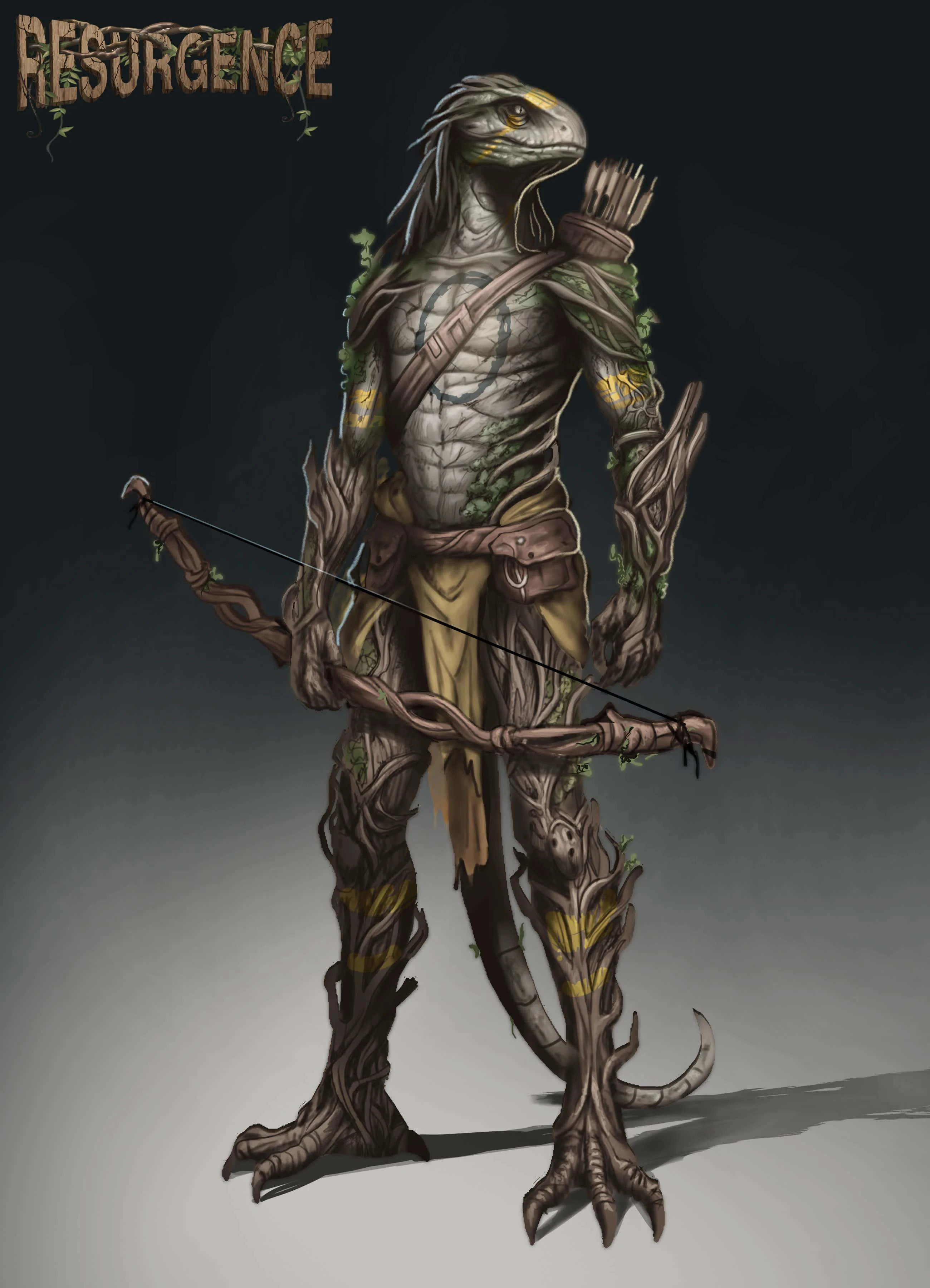 Description: A fierce and loyal guardian, the reptilian warrior is a formidable presence in the jungle. Its appearance should convey strength, agility, and a deep bond with the jungle’s ancient forces. He acts as a protector and enforcer of the witch’s will.