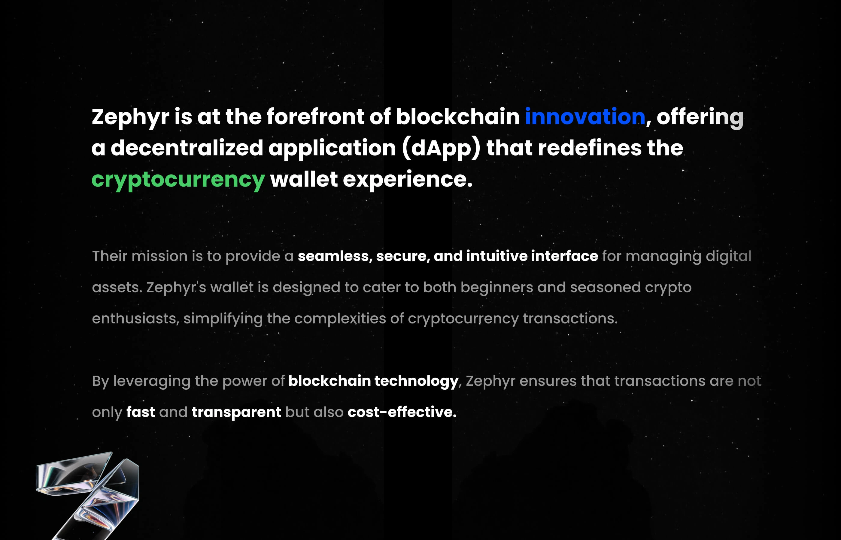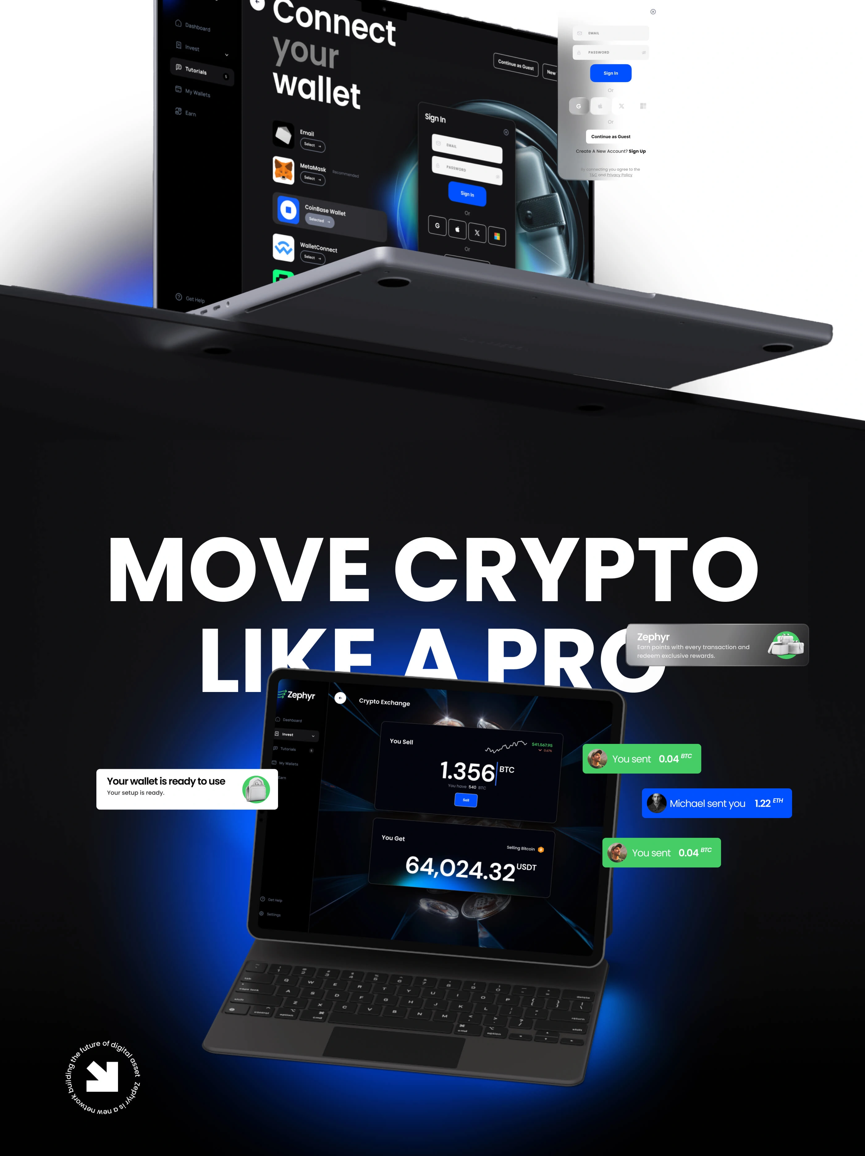 Zephyr, a cryptocurrency wallet app, simplifies digital asset management with a user-friendly design and robust security.