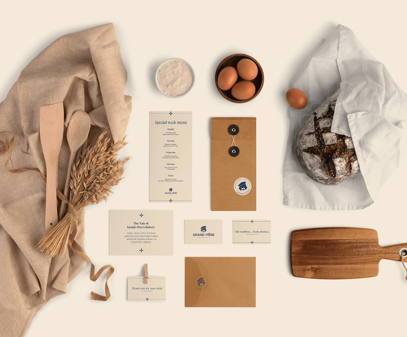 The visual identity should capture the essence of Grand-Père French Bakery, conveying French authenticity, warmth, and artisanal quality.
