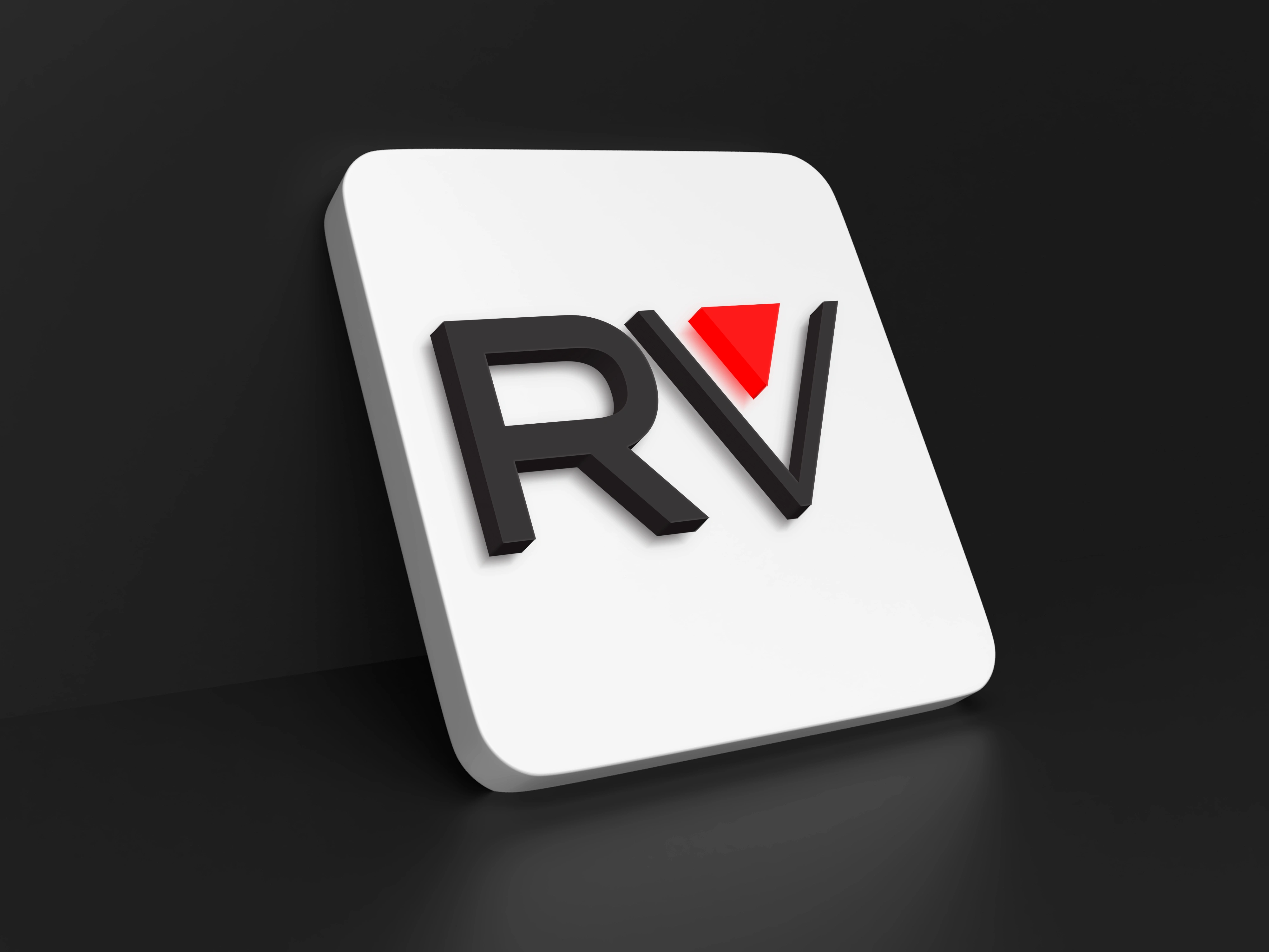 The Logomark: I developed a custom "RV" monogram where the "V" is represented by a bold, red geometric triangle. This serves as a "directional arrow," symbolizing growth, precision, and upward trajectory.