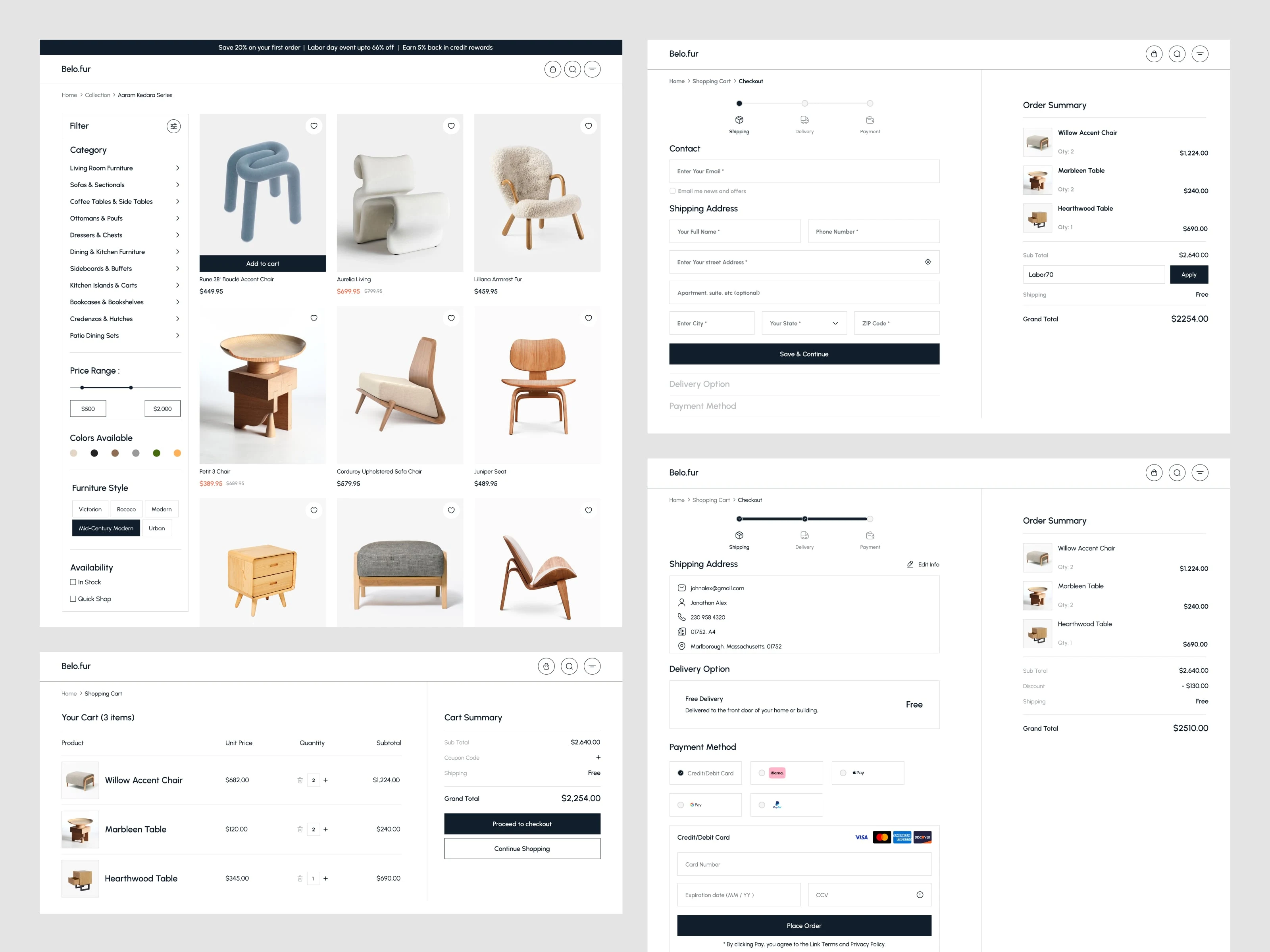 I recently designed Belo-fur, a sleek furniture eCommerce website tailored for an engaging online shopping experience.