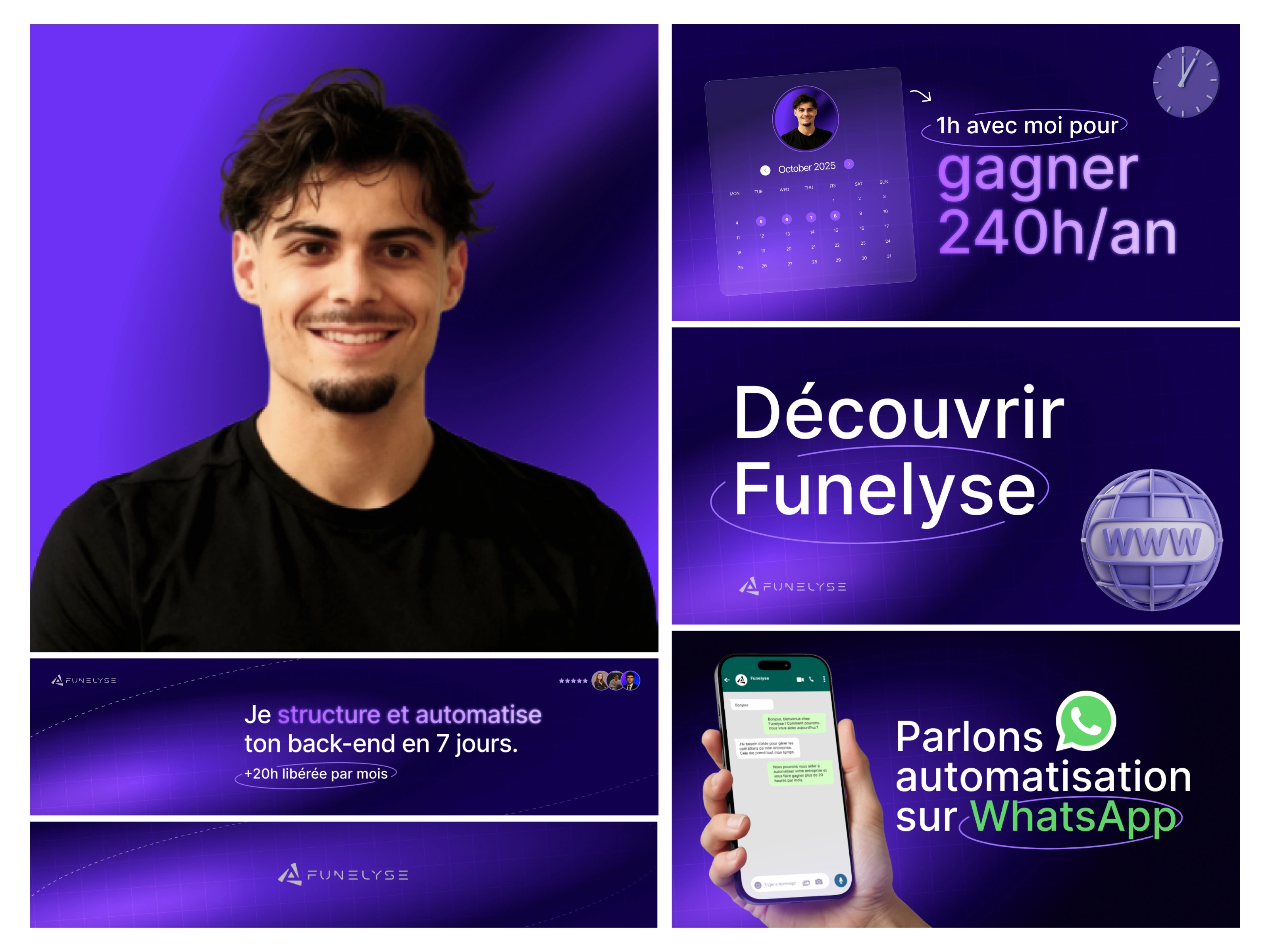 Discover Funelyse: A branded cover that introduces his automation system. The styling is sleek, minimal, and intentional, giving his personal brand a strong visual foundation.