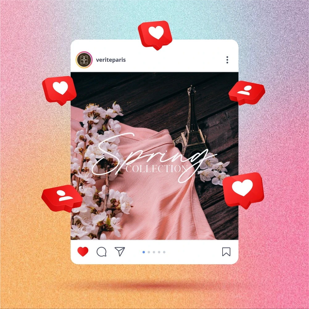 A 12-post Instagram campaign for sustainable luxury fashion brand Vérité Paris to promote their Spring Collection Sale with pastel tones and Parisian elegance.