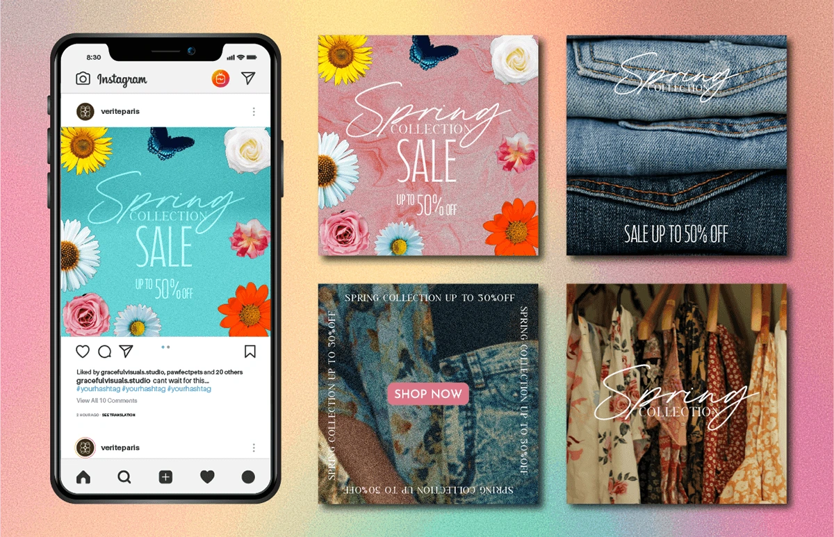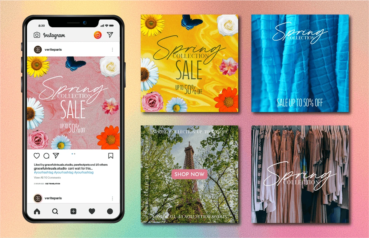 Vérité Paris, a sustainable luxury fashion brand, approached me to create a visually cohesive Instagram campaign to promote their Spring Collection Sale – "Up to 50% Off". The objective was to raise awareness of the seasonal discount, drive traffic to the website, and reinforce their brand identity on social media.