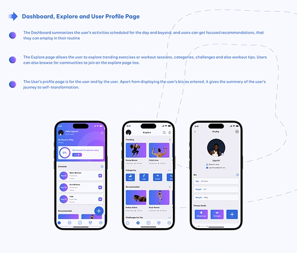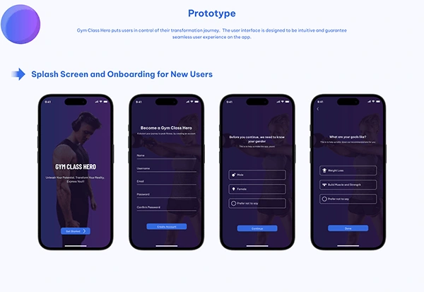 A mobile app UI for the heroes of the gym, with stereos for hearts. It allows users to set up personalized goals, track their progress, & grow as a community
