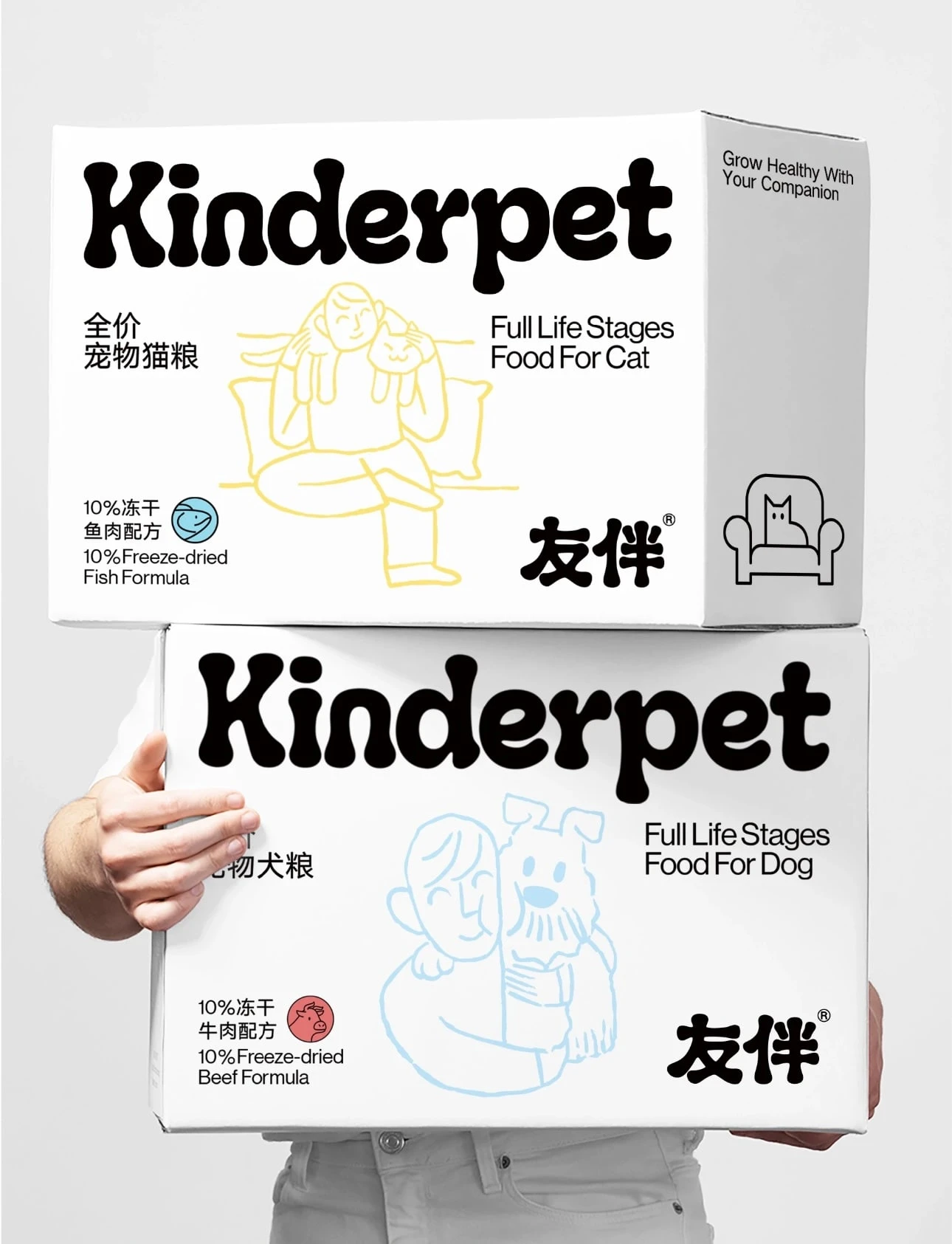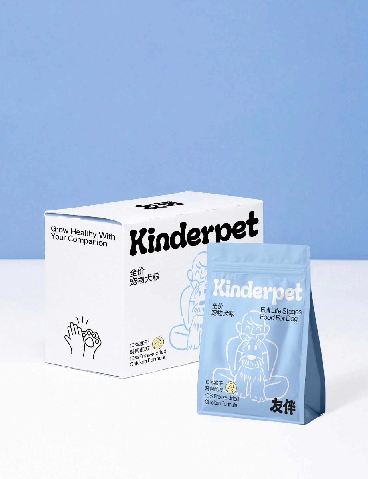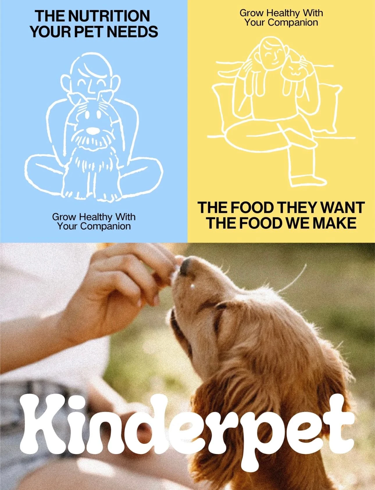 In a pet’s entire life, their human is their lifelong partner. And for humans, pets are a source of comfort, loyalty, and emotional support. Kinderpet’s brand identity expresses this bond through visual storytelling, soft colors, and human–pet illustrations.