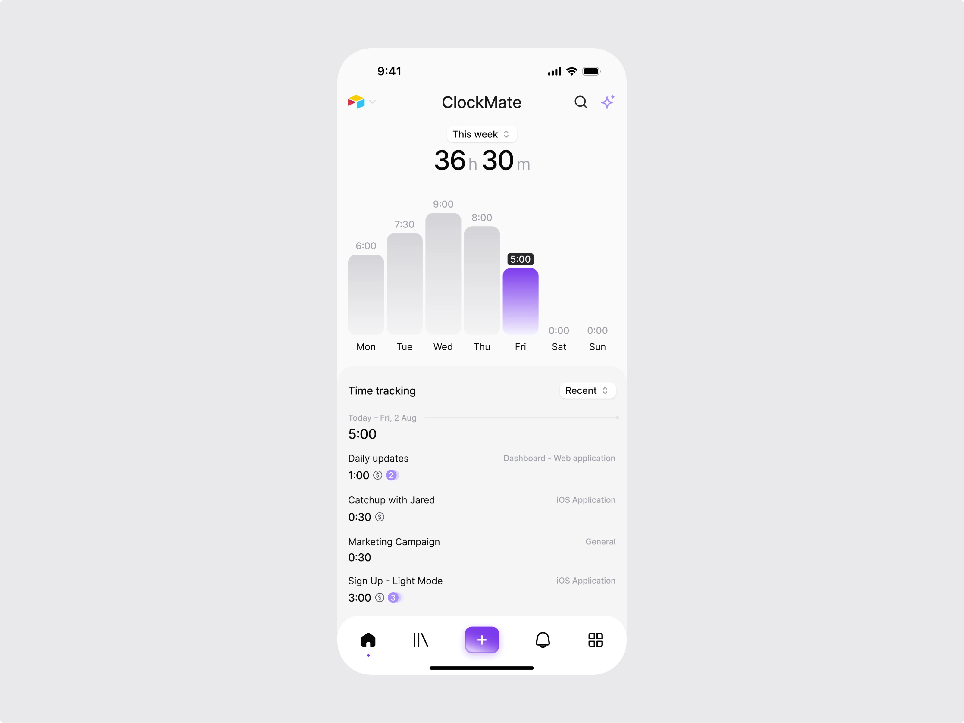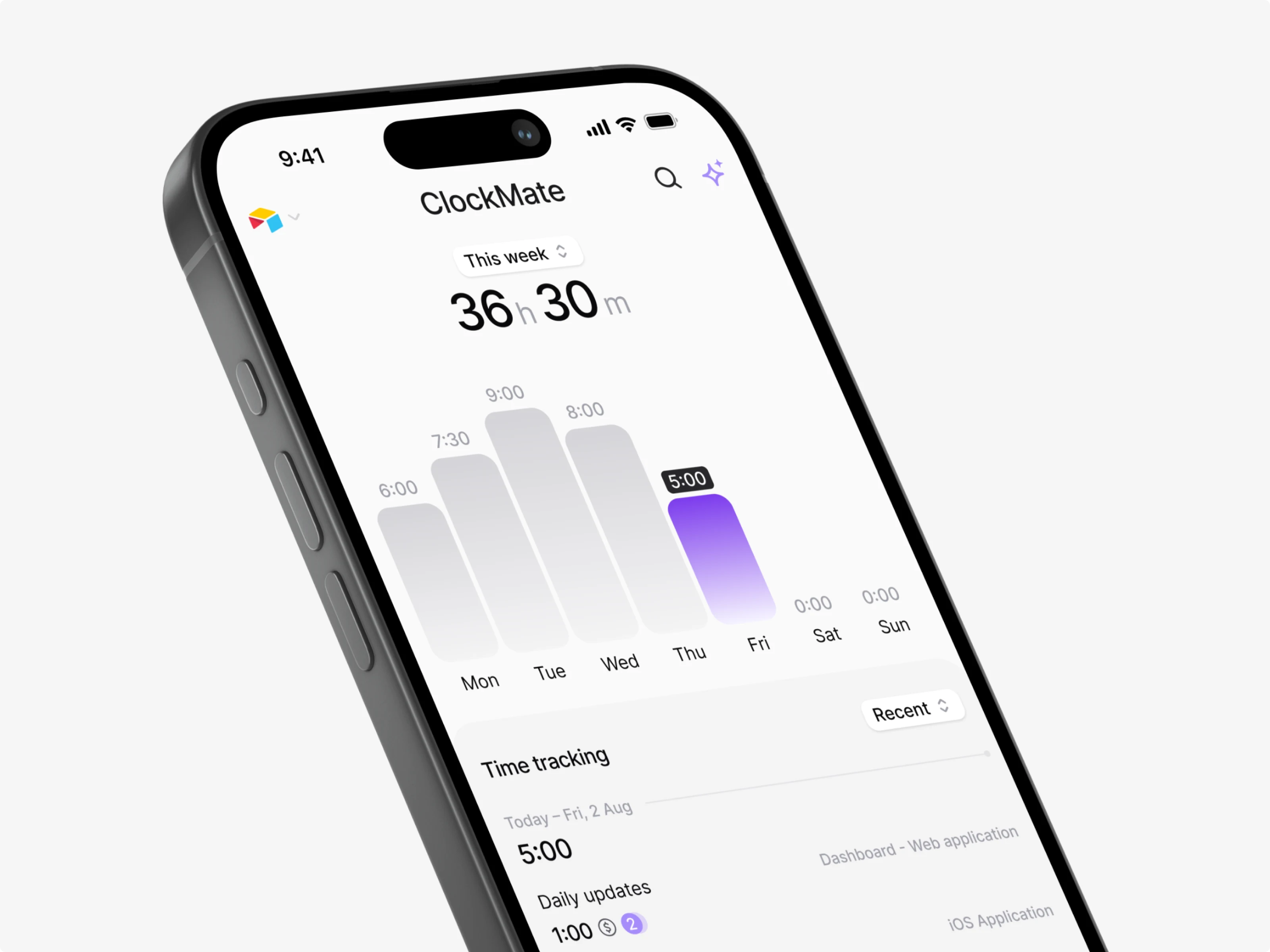 iOS mobile app design / Clockmate - time tracking saas