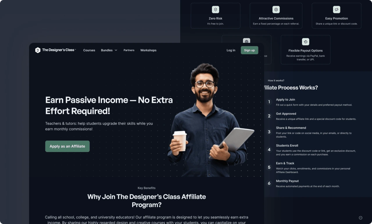 Built a smart and simple affiliate program for an online education platform to turn educators into promoters.
