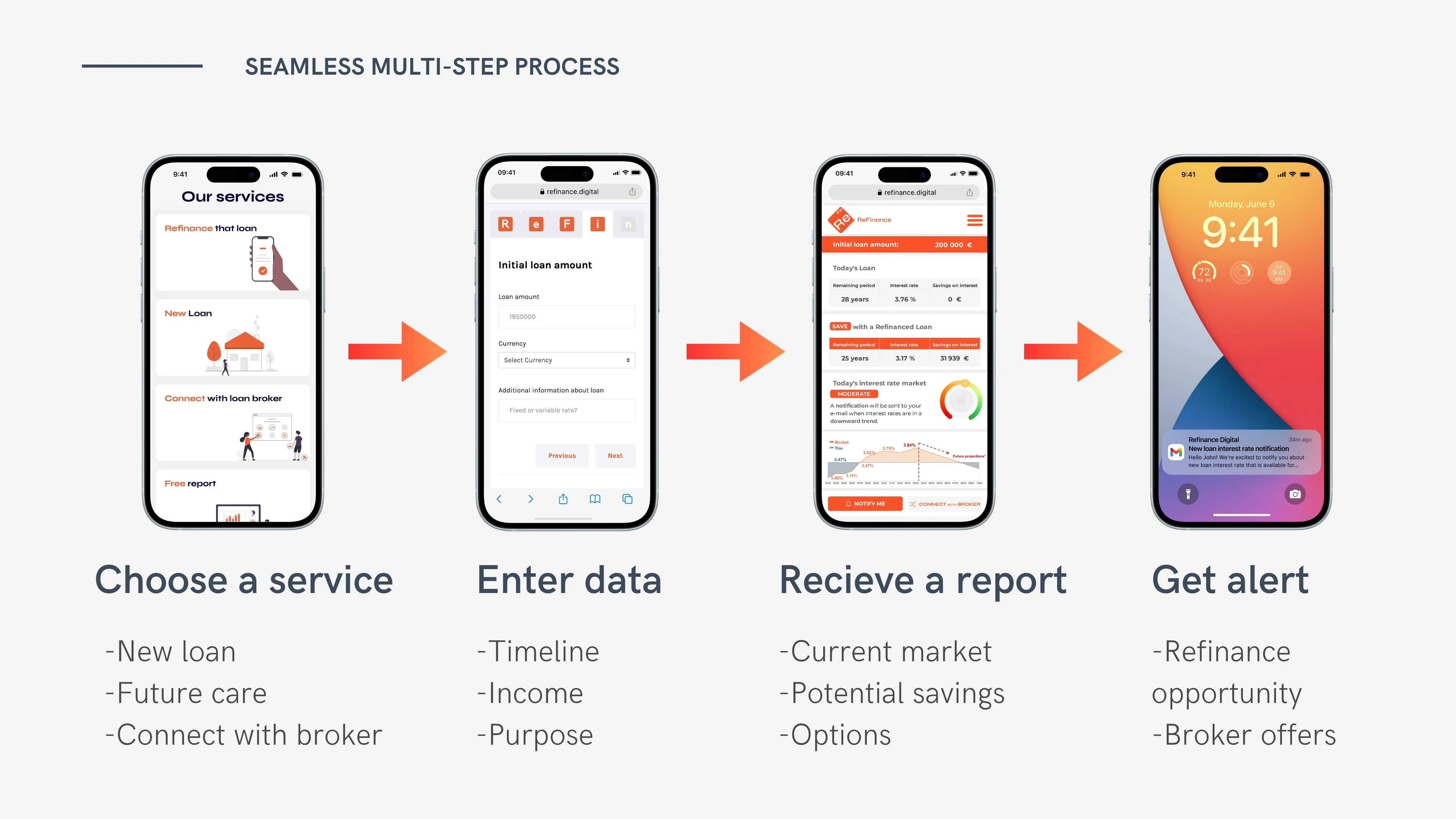 Refinance Digital is a platform built to help people save money on their mortgages by tracking interest rates and notifying users when refinancing becomes beneficial. We connect users with loan brokers at the right moment, making the process simple and transparent.