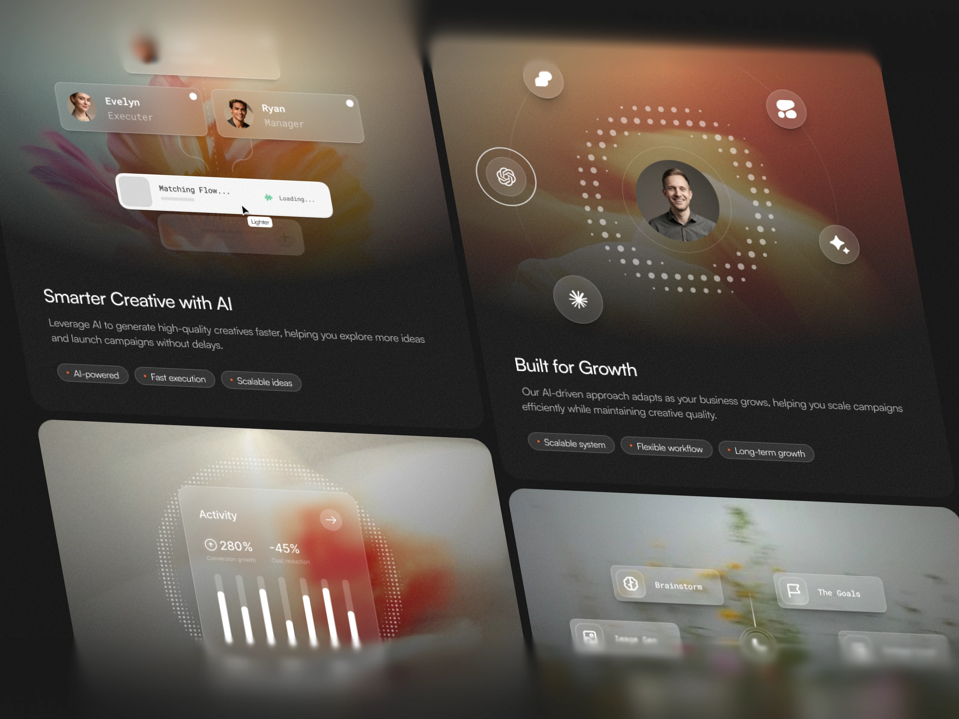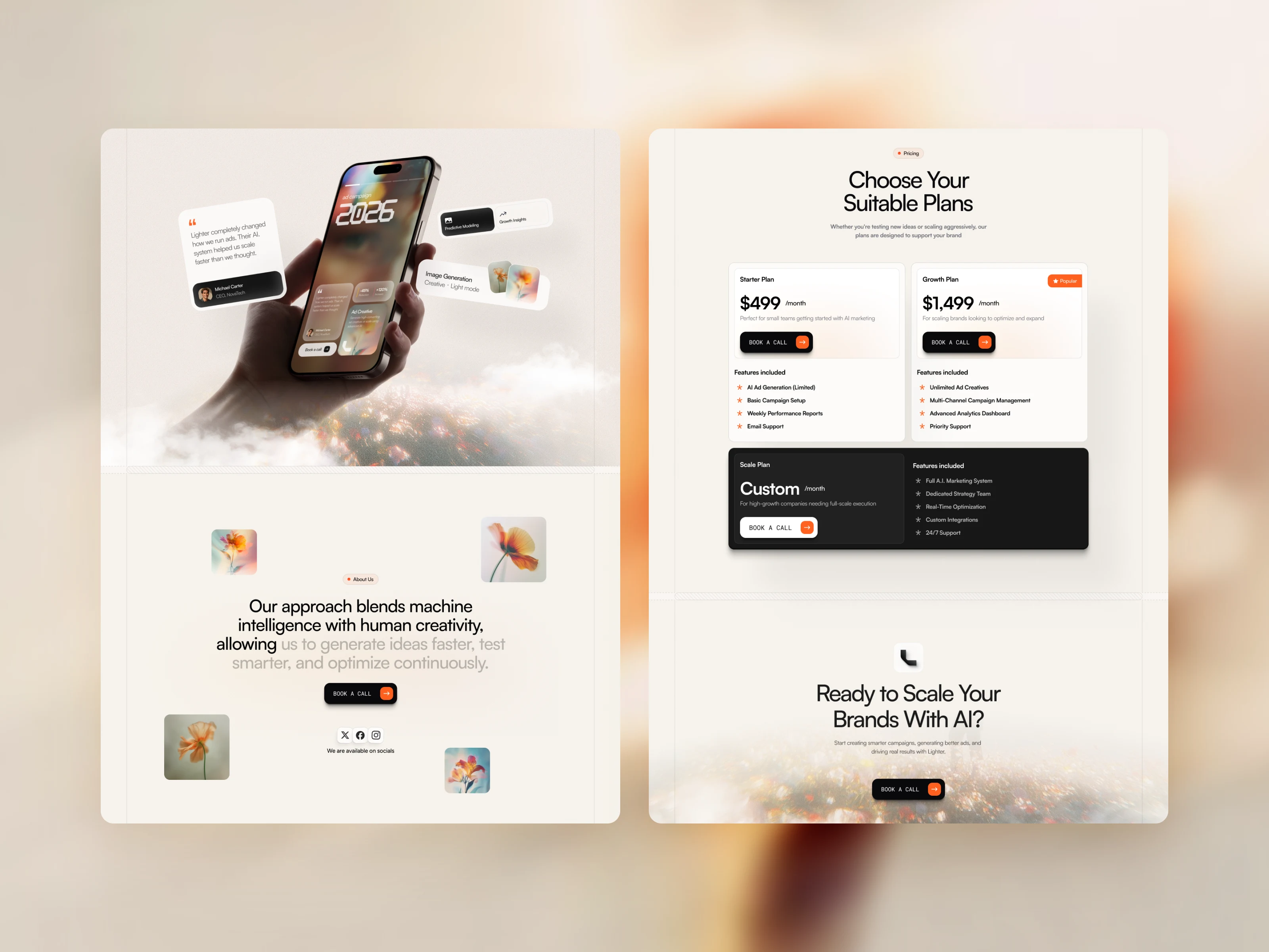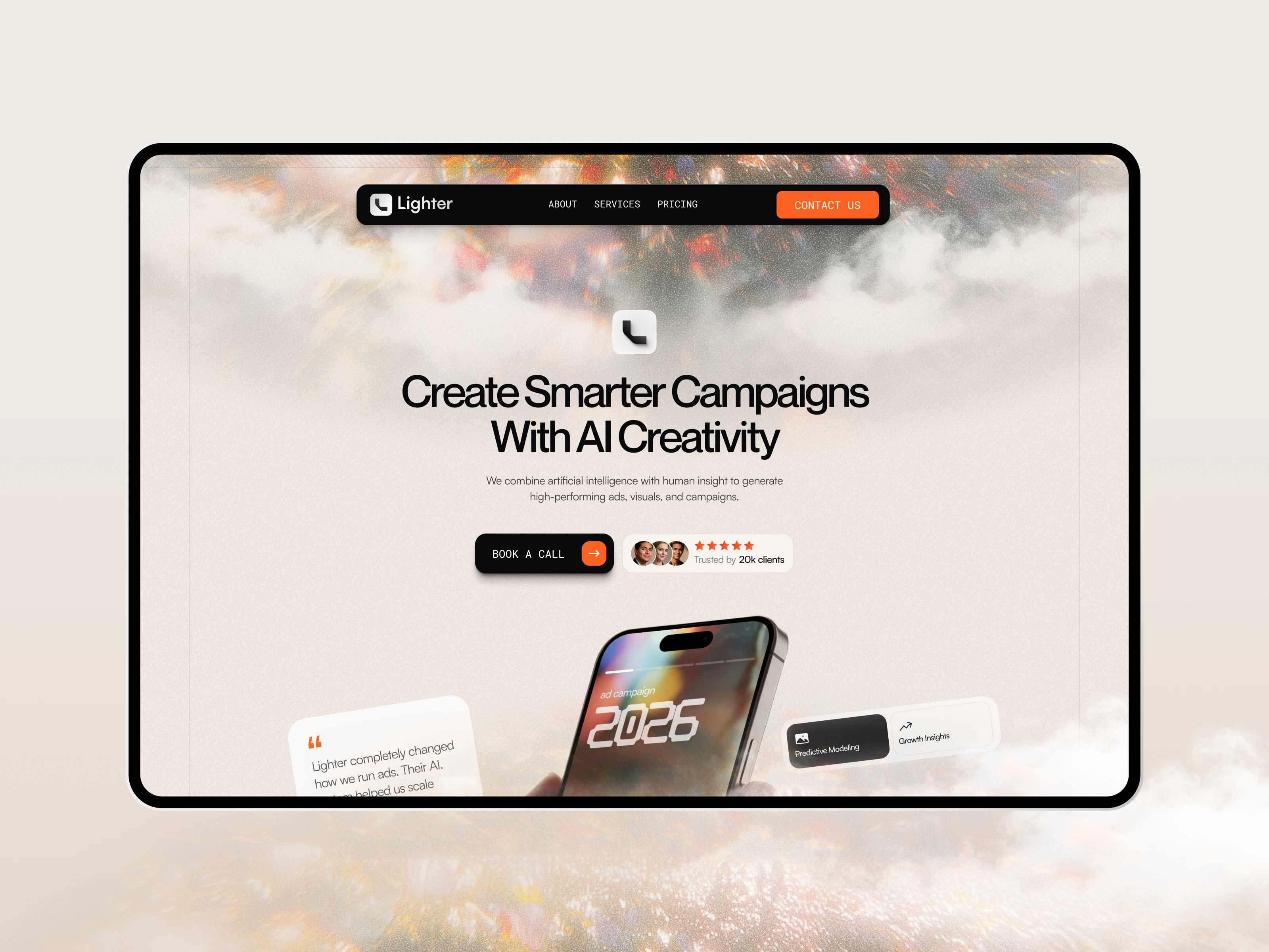Lighter is a premium WordPress theme designed for modern creative agencies. For this specific demo, the goal was to create a visual identity for an AI Creative Agency that blends machine intelligence with human artistic intuition. The result is a bold, minimalist, and high-converting interface that seamlessly integrates sophisticated glassmorphism with organic aesthetics to prioritize both brand storytelling and user action.