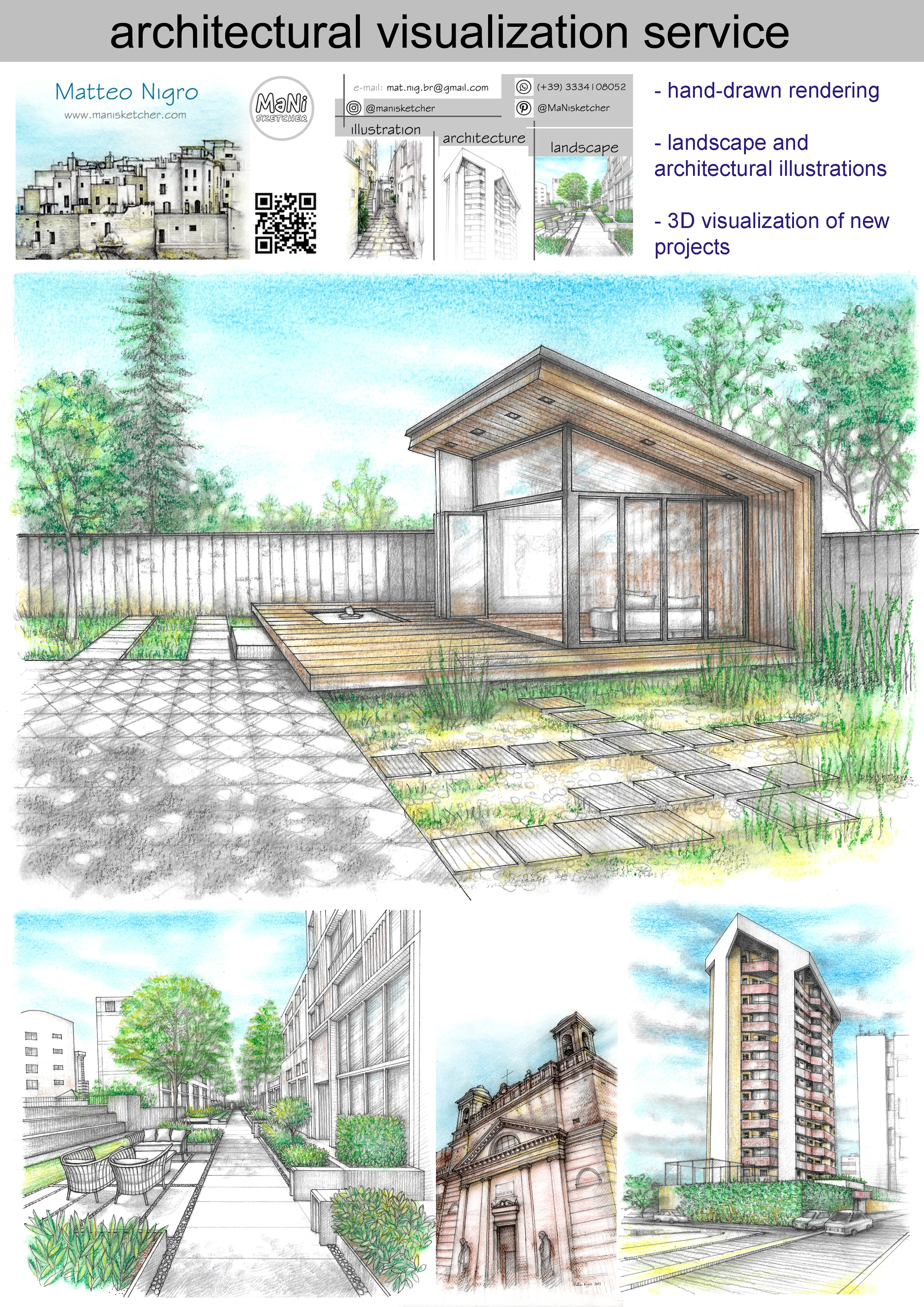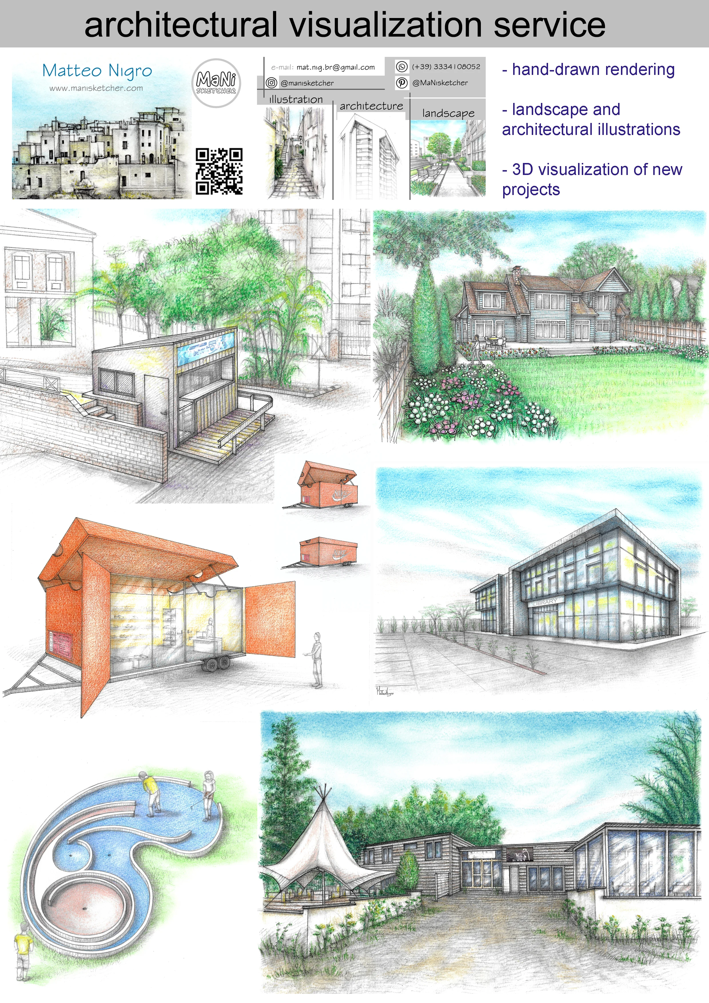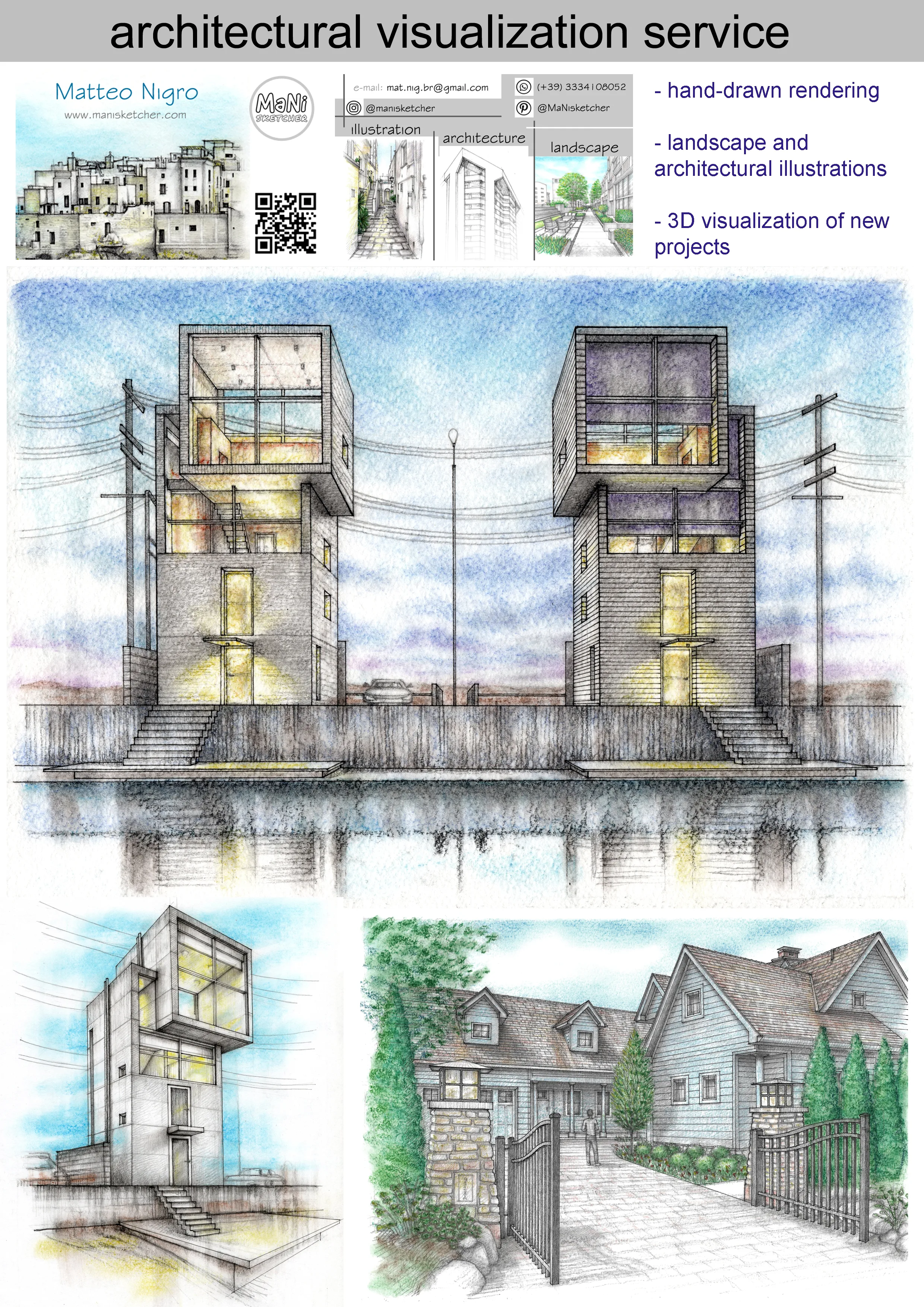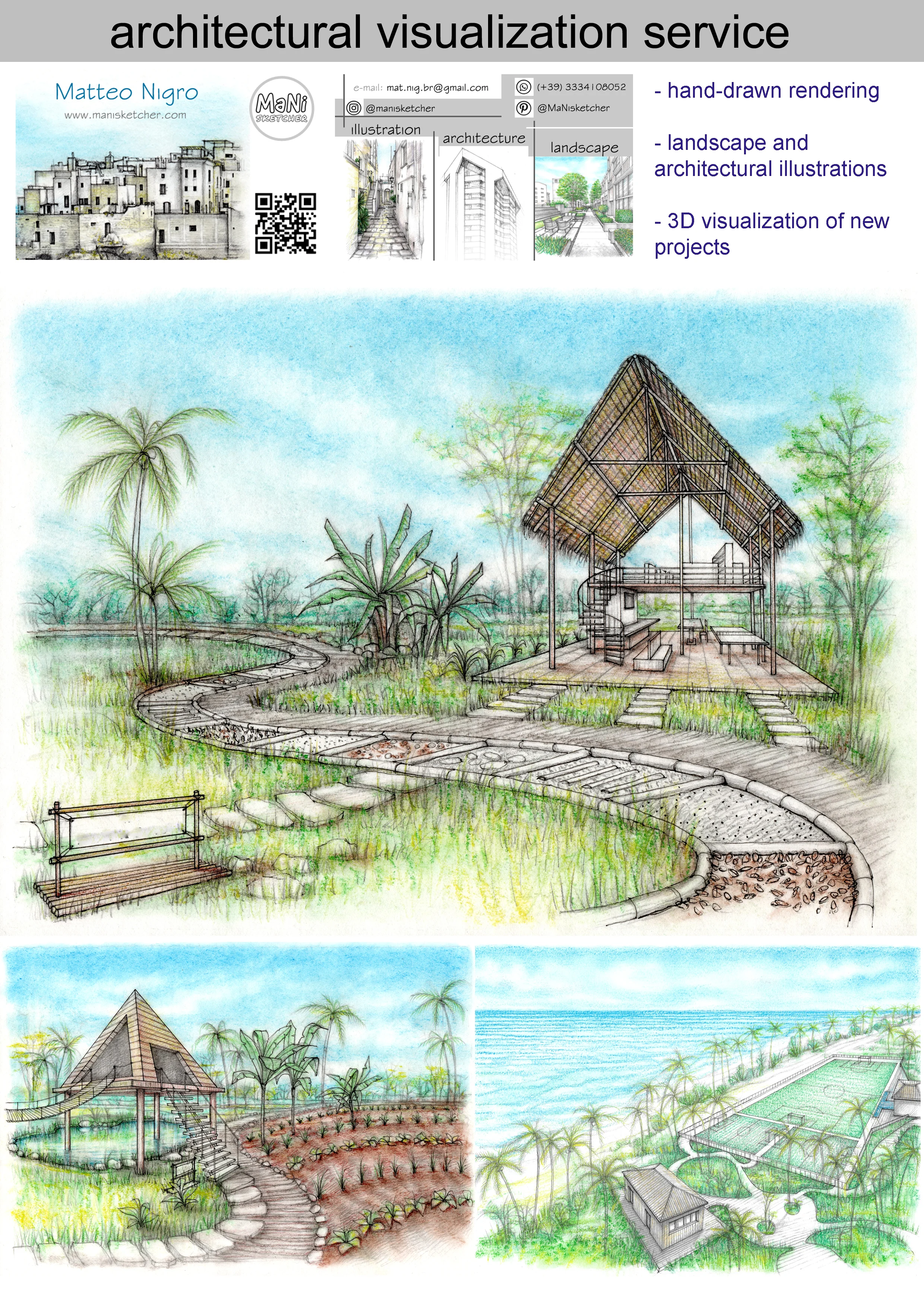 Hand renders - architecture and landscape