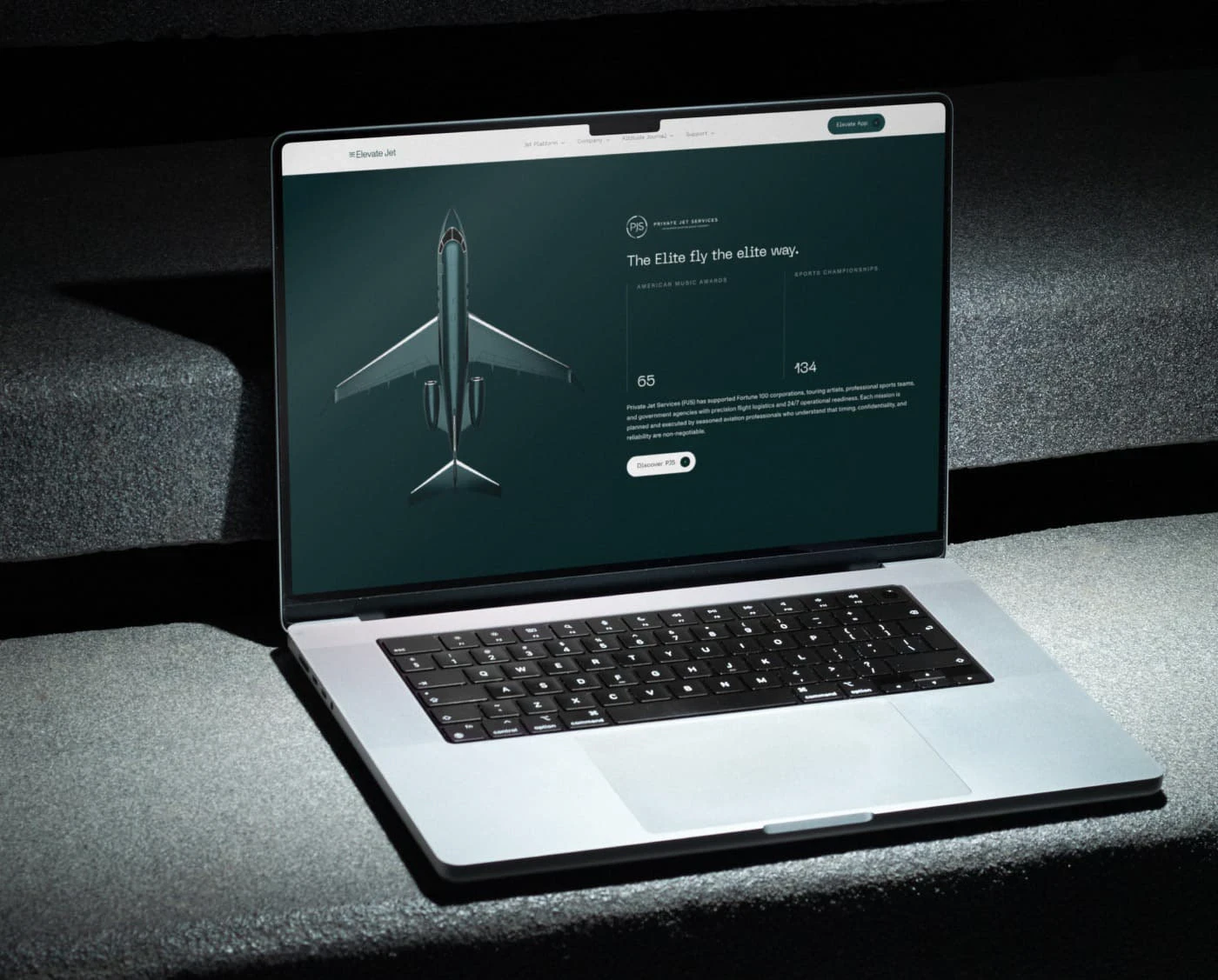 Created with Azai Studios NYC for Elevation Jet Group, this identity uses semi-realistic CGI to bridge aircraft technicality and minimalist UI for a luxury app.
