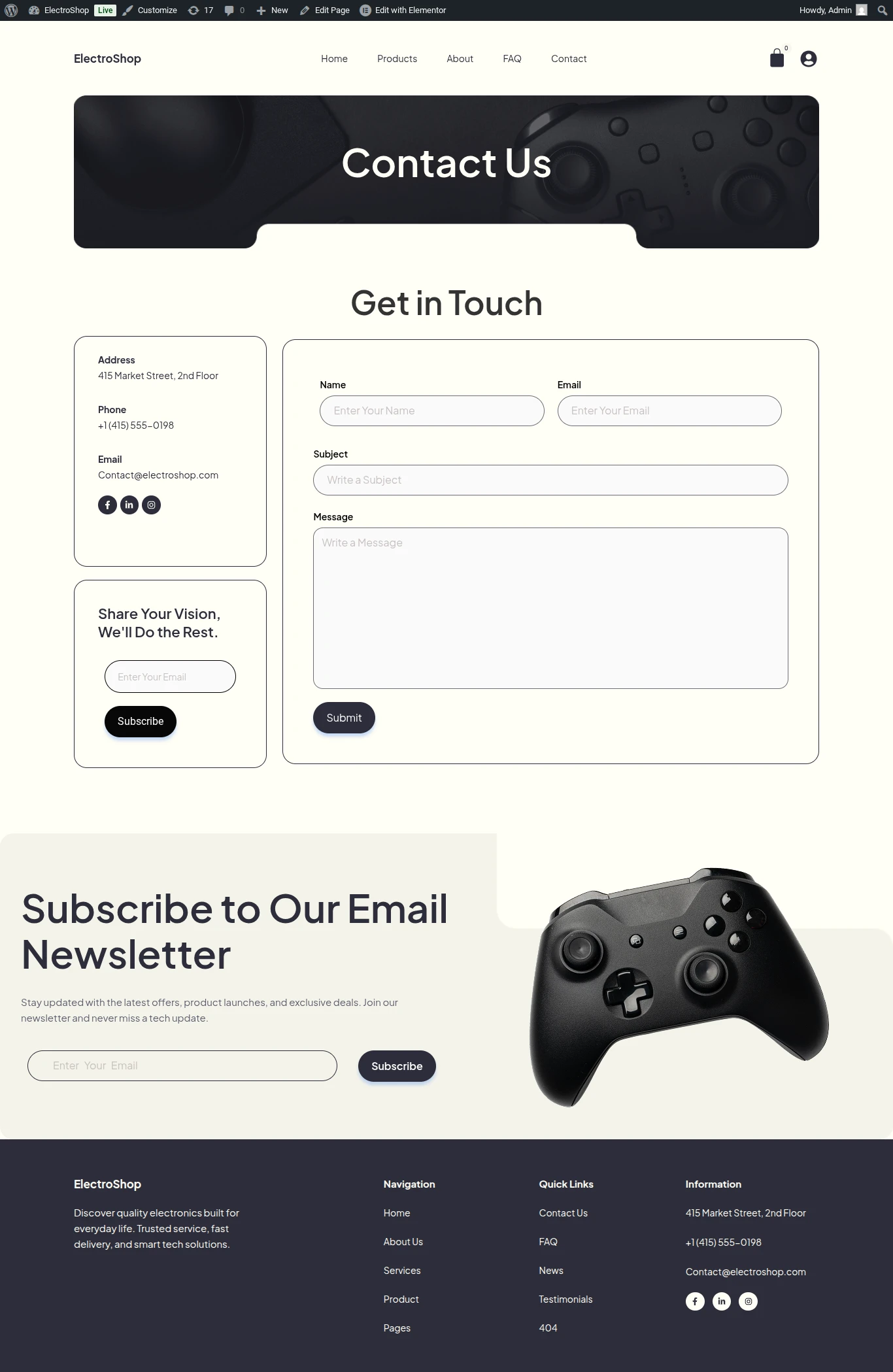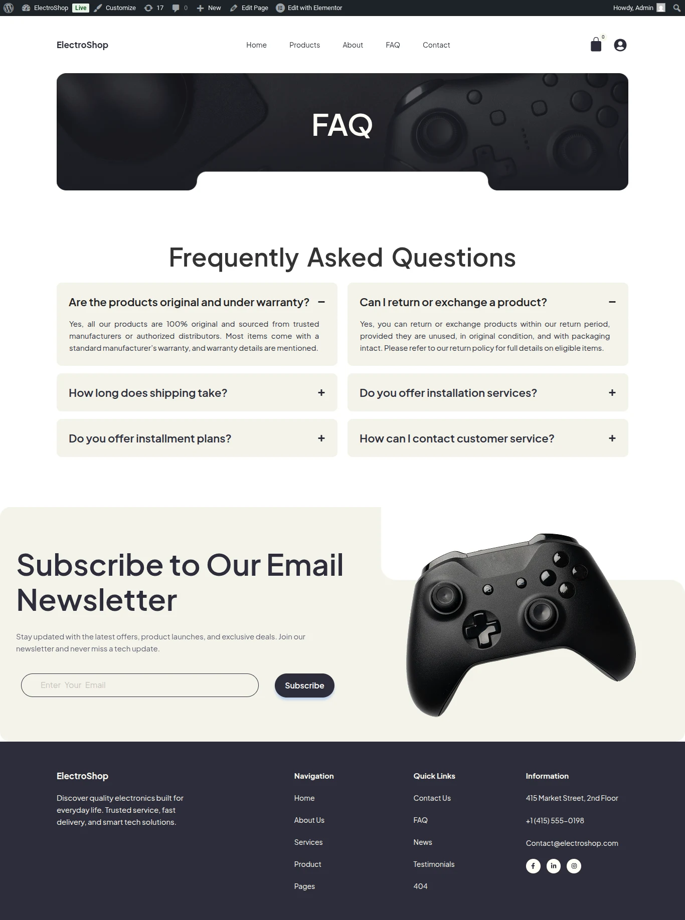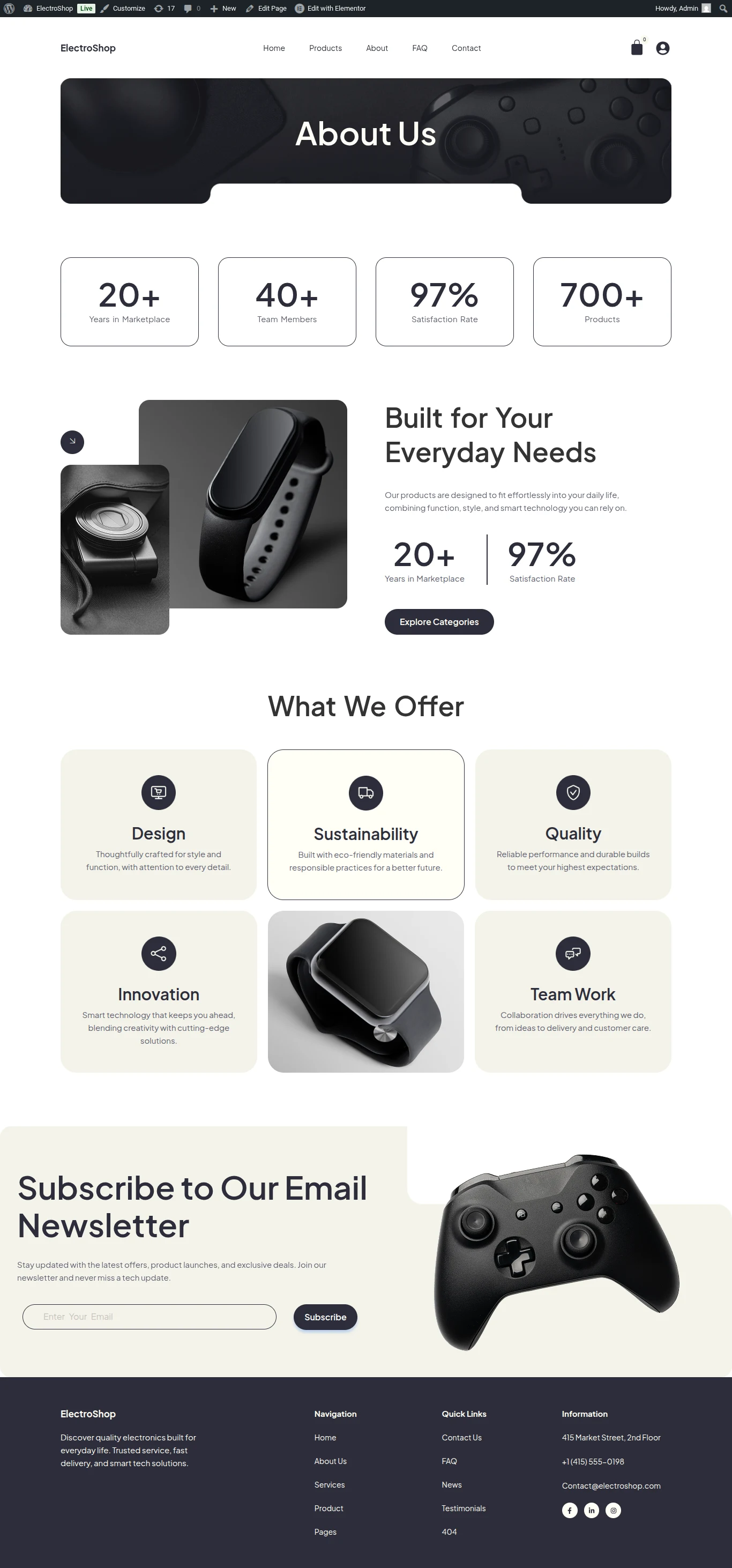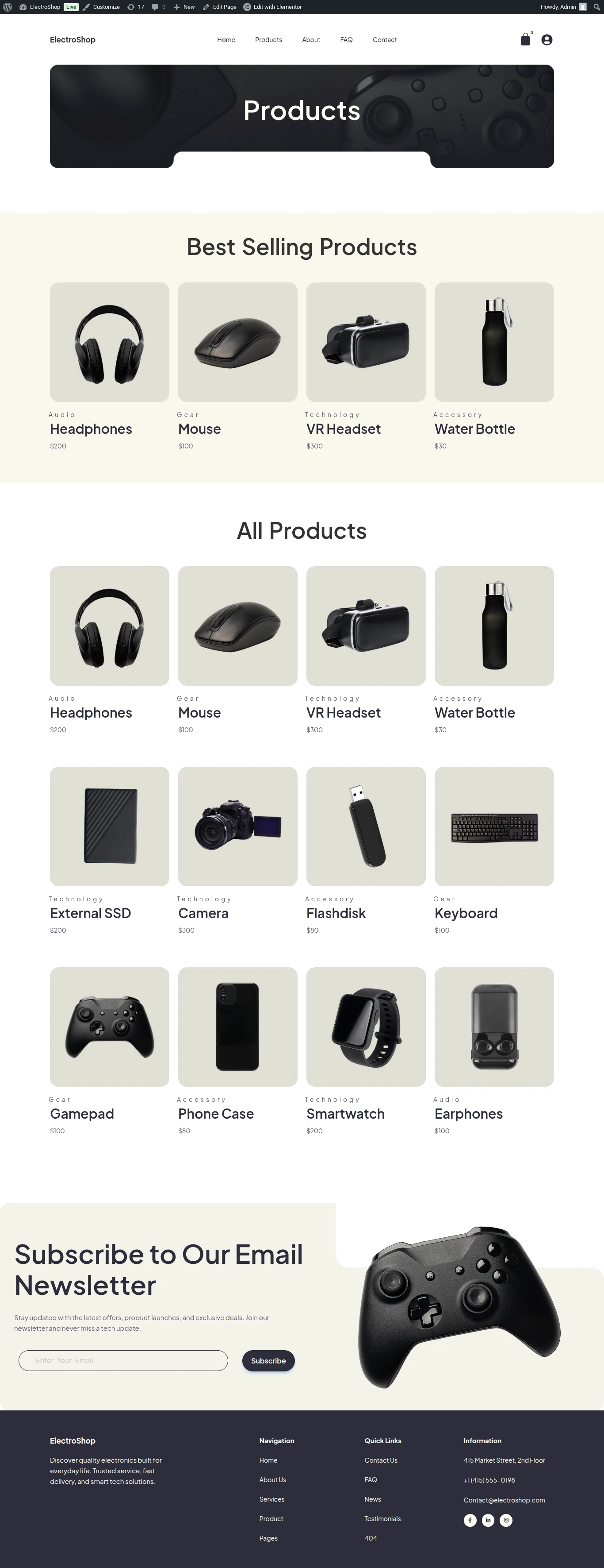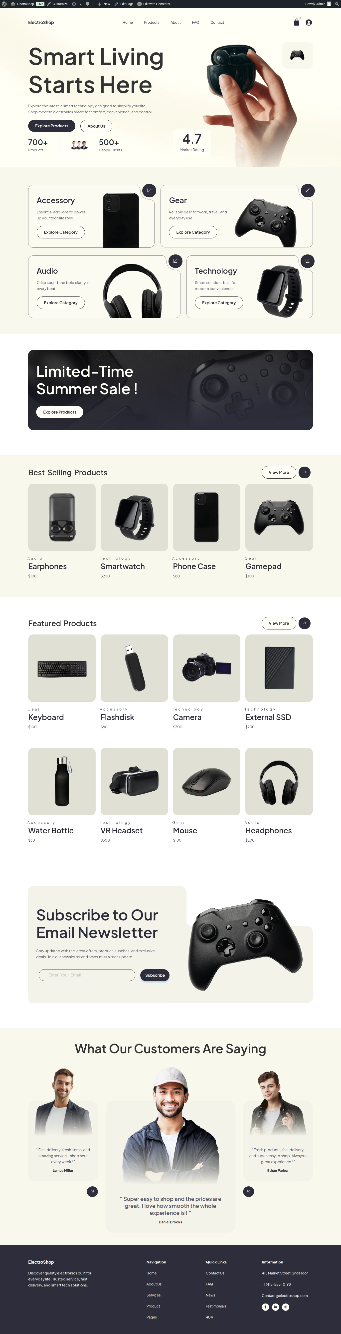 This website was built for ElectroShop, a modern online electronics retailer offering a wide range of gadgets, accessories and smart devices. The client wanted to showcase their product catalog with clear categorization, streamline the shopping and checkout experience and highlight special offers and bundle deals. The goal was to boost online sales, build customer trust and create an intuitive shopping journey for tech enthusiasts.