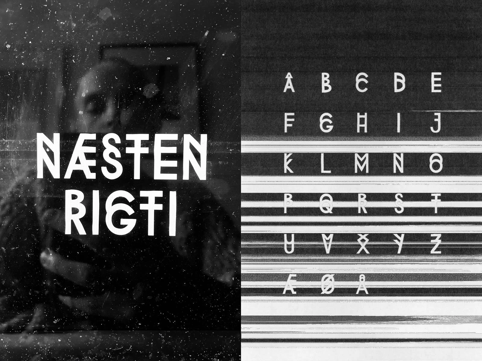 Næsten Rigti is a display-type. The name of the font can loosely be translated to “almost correc” (yes, without the t). Creating a jittering text image which some may consider an eye-sore, this font challenges the ruleset of type-design.